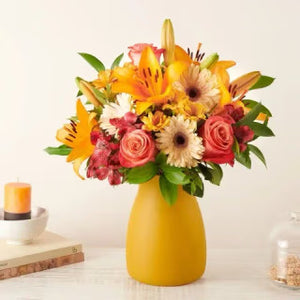 Les compositions florales automnales offrent un choix magique pour vos cadeaux grâce à leurs caractéristiques uniques et enchanteresses. Les teintes chaudes d'orange, de rouge et de jaune de ces créations florales évoquent l'atmosphère chaleureuse et nostalgique de la saison. Les couleurs et textures vibrantes des fleurs d'automne, comme les chrysanthèmes, les tournesols et les dahlias, créent une composition visuellement époustouflante qui captivera à coup sûr son destinataire. De plus, les compositions automnales intègrent souvent des éléments tels que des feuilles séchées, des branches et des baies, ajoutant un charme rustique et rehaussant l'esthétique générale. Qu'il s'agisse d'un anniversaire, d'une fête ou de toute autre occasion spéciale, offrir une composition florale automnale apportera chaleur et joie à vos proches.
