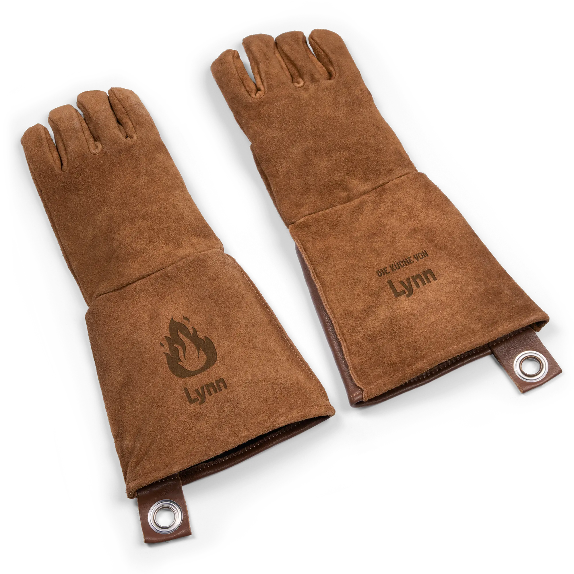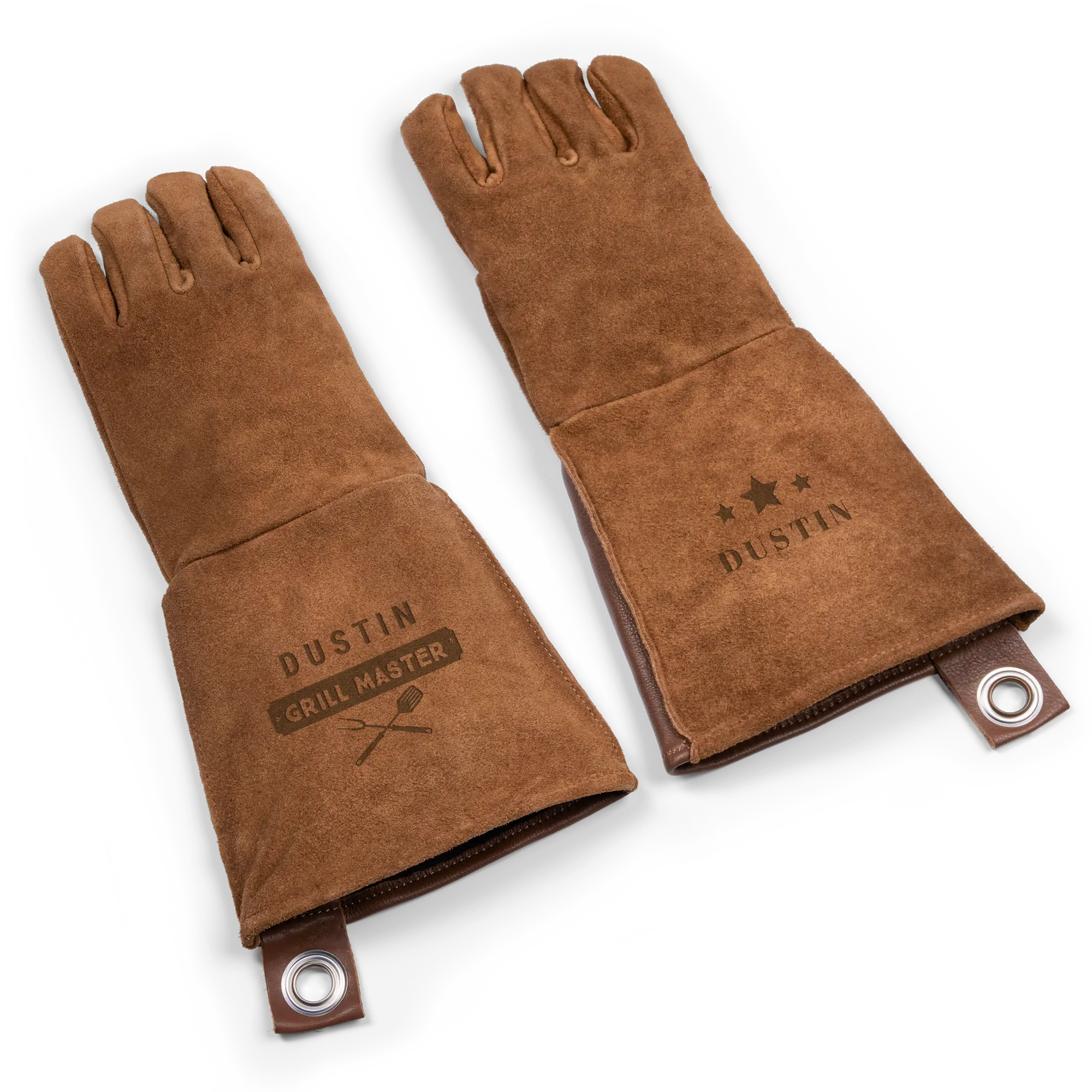 Faites graver un ensemble de gants de barbecue en cuir luxueux. Personnalisez-les avec un nom ou un texte et des motifs sympas. Qui surprendrez-vous ?