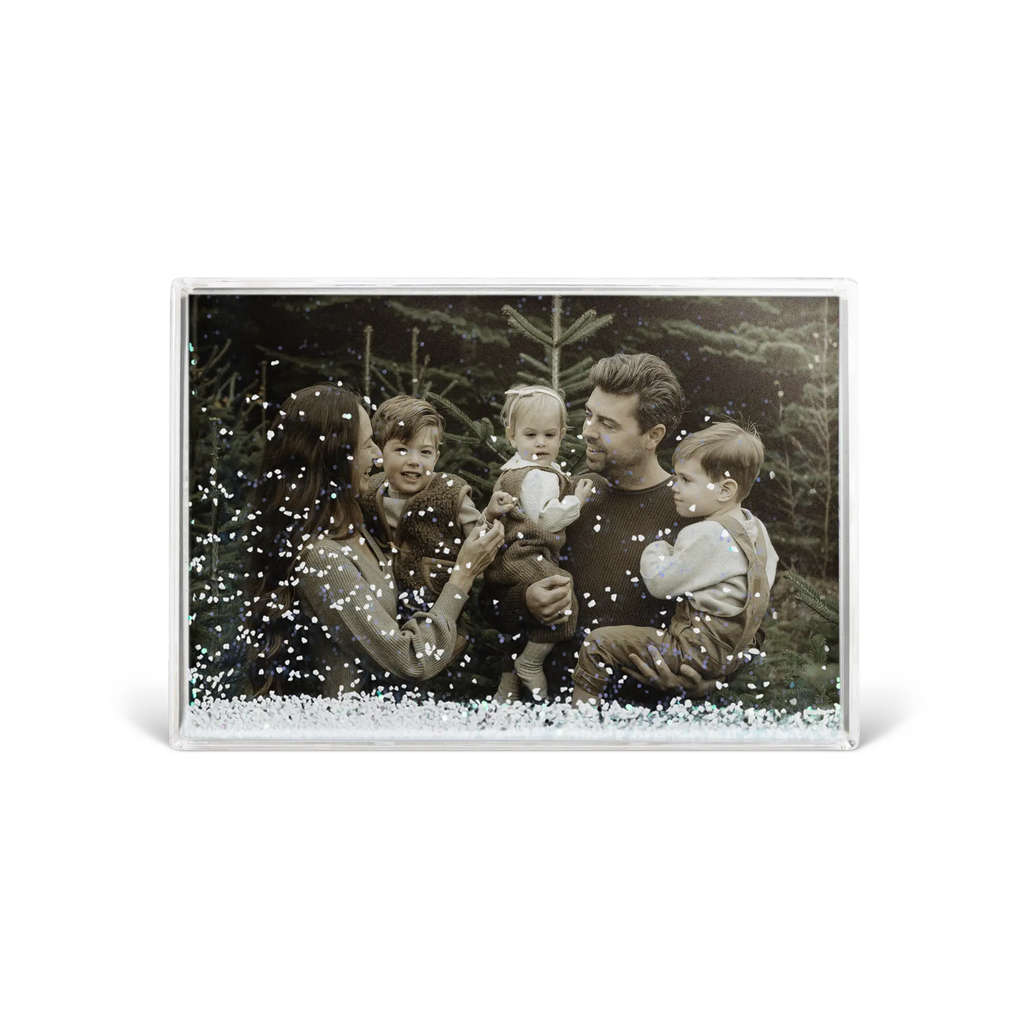 Plus d'infos sur le cadre photo boule à neige personnalisé : Matériau : plexiglas de haute qualité Dimensions : 16 x 10,5 cm Épaisseur : 2,5 cm Impression : impression photo couleur parfaite Personnalisation : avec photo et/ou texte Effet : neige avec de fines paillettes