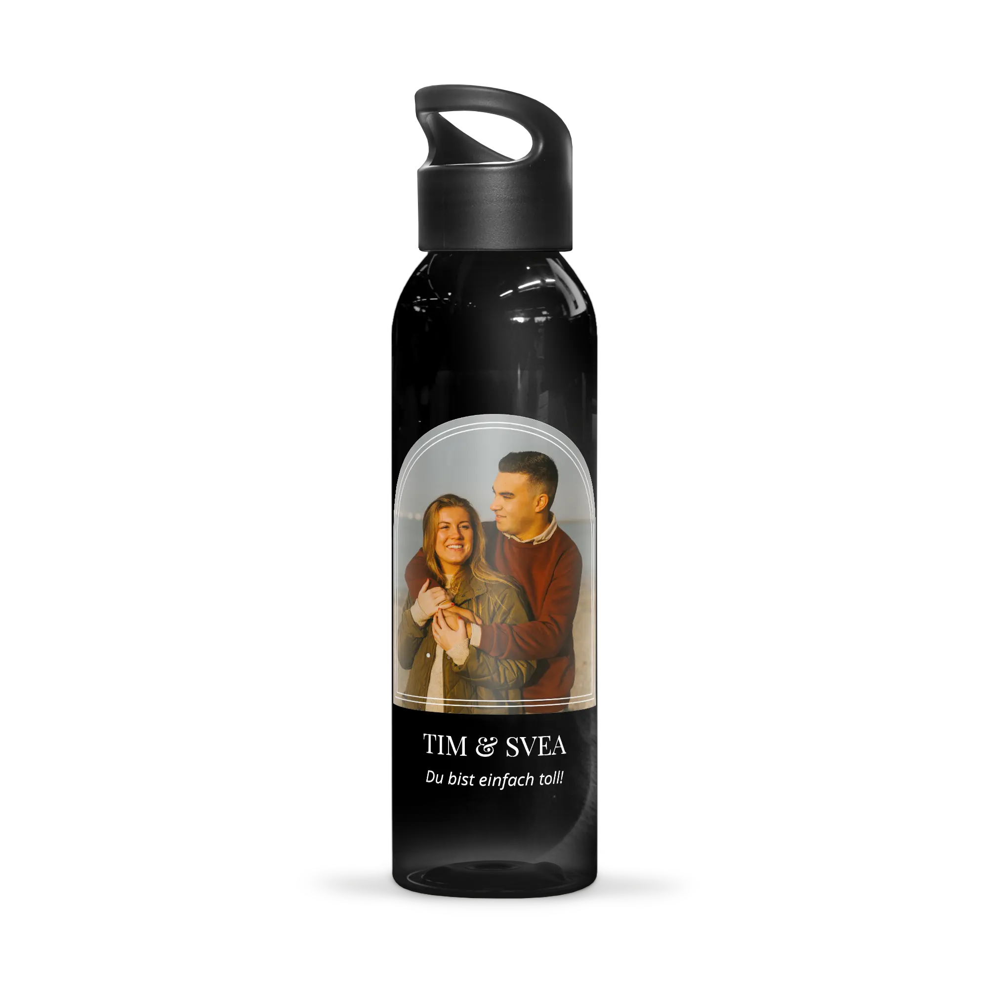 Qui ferez-vous plaisir avec une gourde photo ? Ou cherchez-vous une gourde avec un nom ? Créez votre propre gourde dès maintenant ! Plus d'informations sur la gourde : Matériau : Eastman Tritan (sans BPA) Couleur : noir transparent Dimensions : 25,7 x 6,7 cm Contenu : 650 ml Personnalisation : avec nom, texte, motif ou photo Traitement : impression UVE Extras : avec bouchon amovible, lavage à la main recommandé La gourde est sans BPA, elle est donc totalement sûre. Pour des raisons techniques, il n'est pas possible d'ajouter des photos avec un fond transparent.