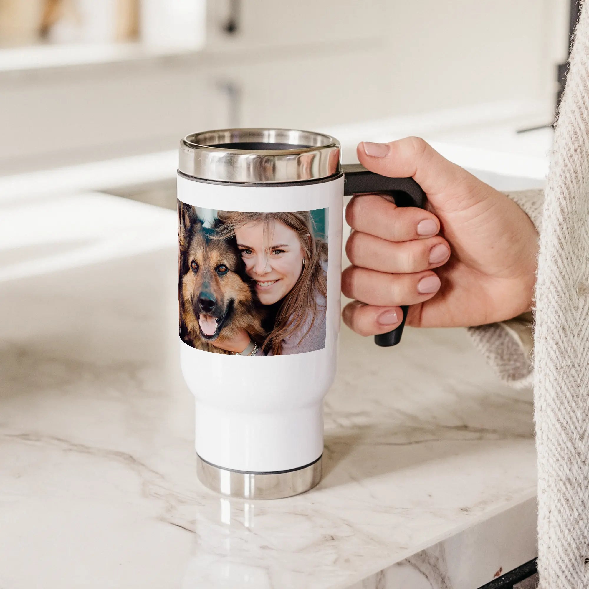 Un mug isotherme est un cadeau pratique. Imprimez votre photo et votre texte sur le mug isotherme et vous obtenez un cadeau super sympa !