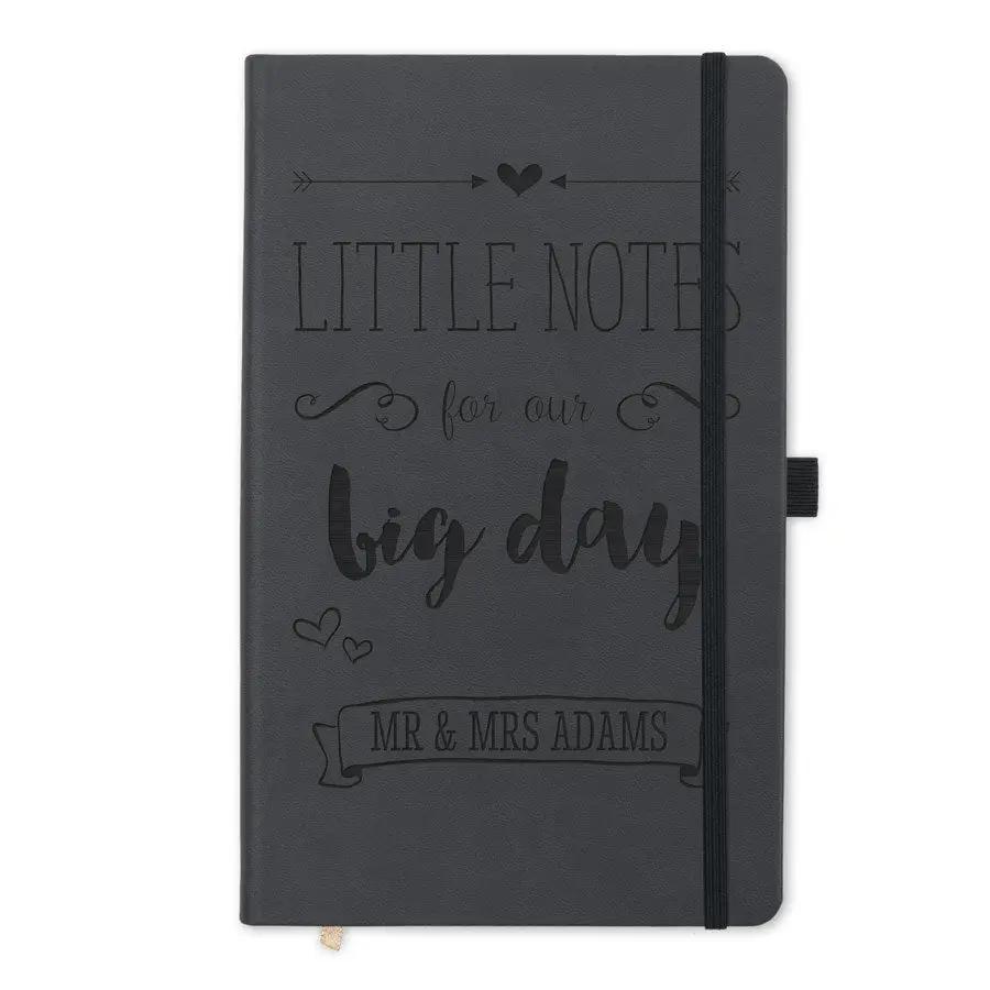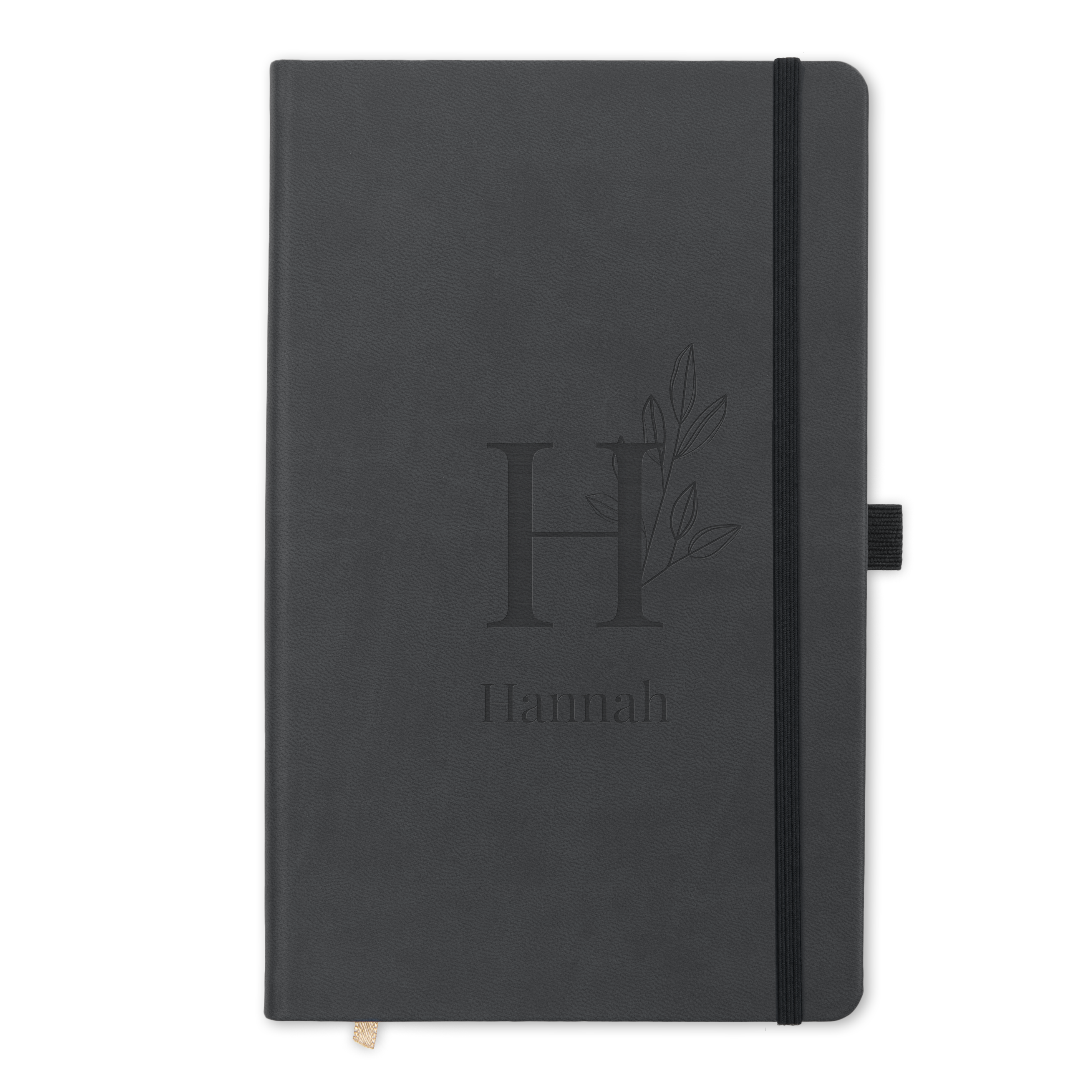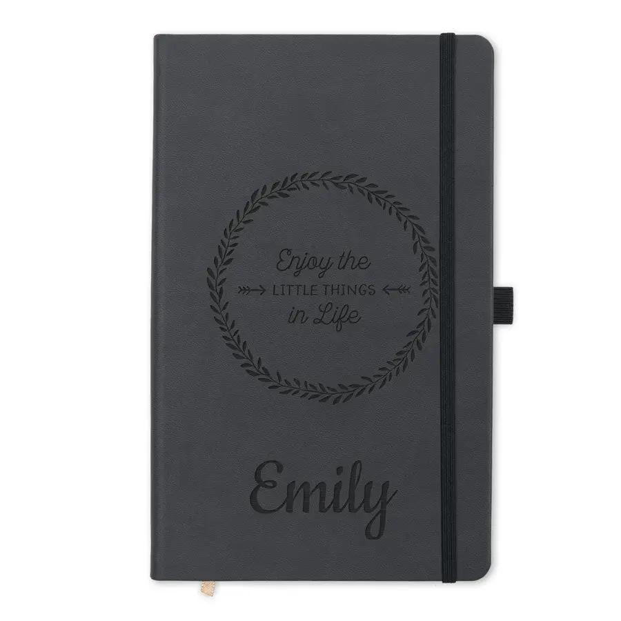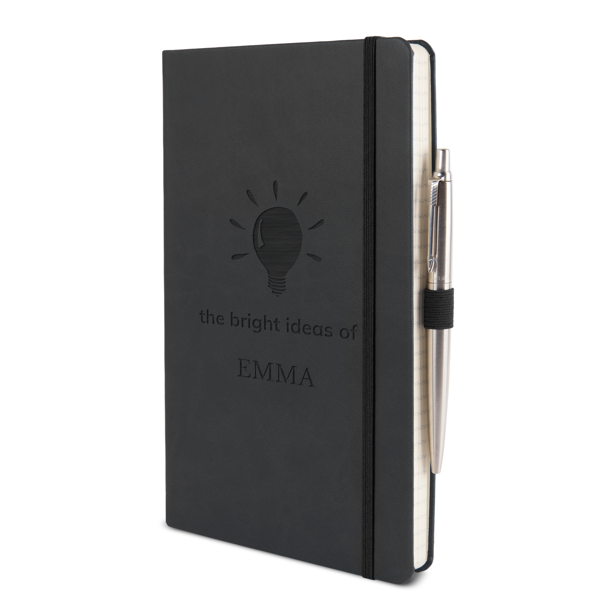 Carnet super original et personnel gravé avec votre nom. Avec de nombreux motifs joyeux. Disponible en noir et bleu !