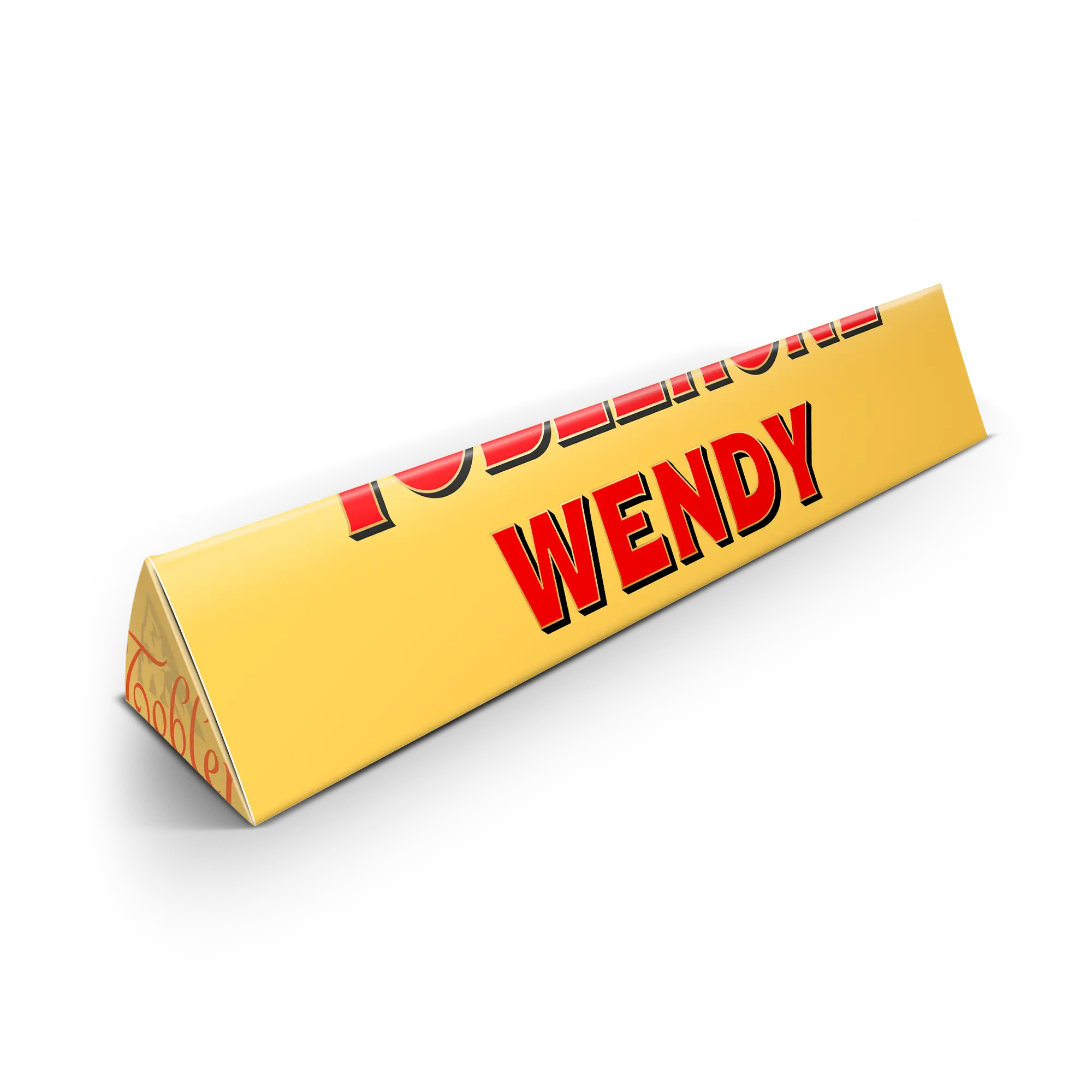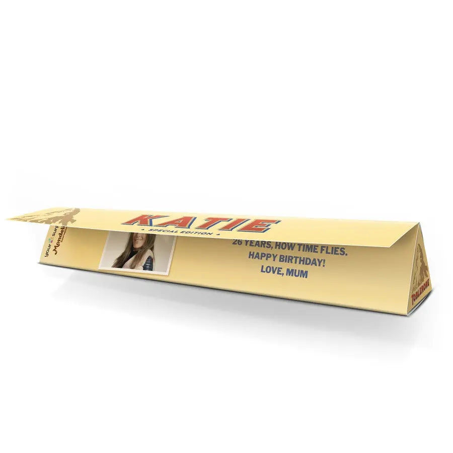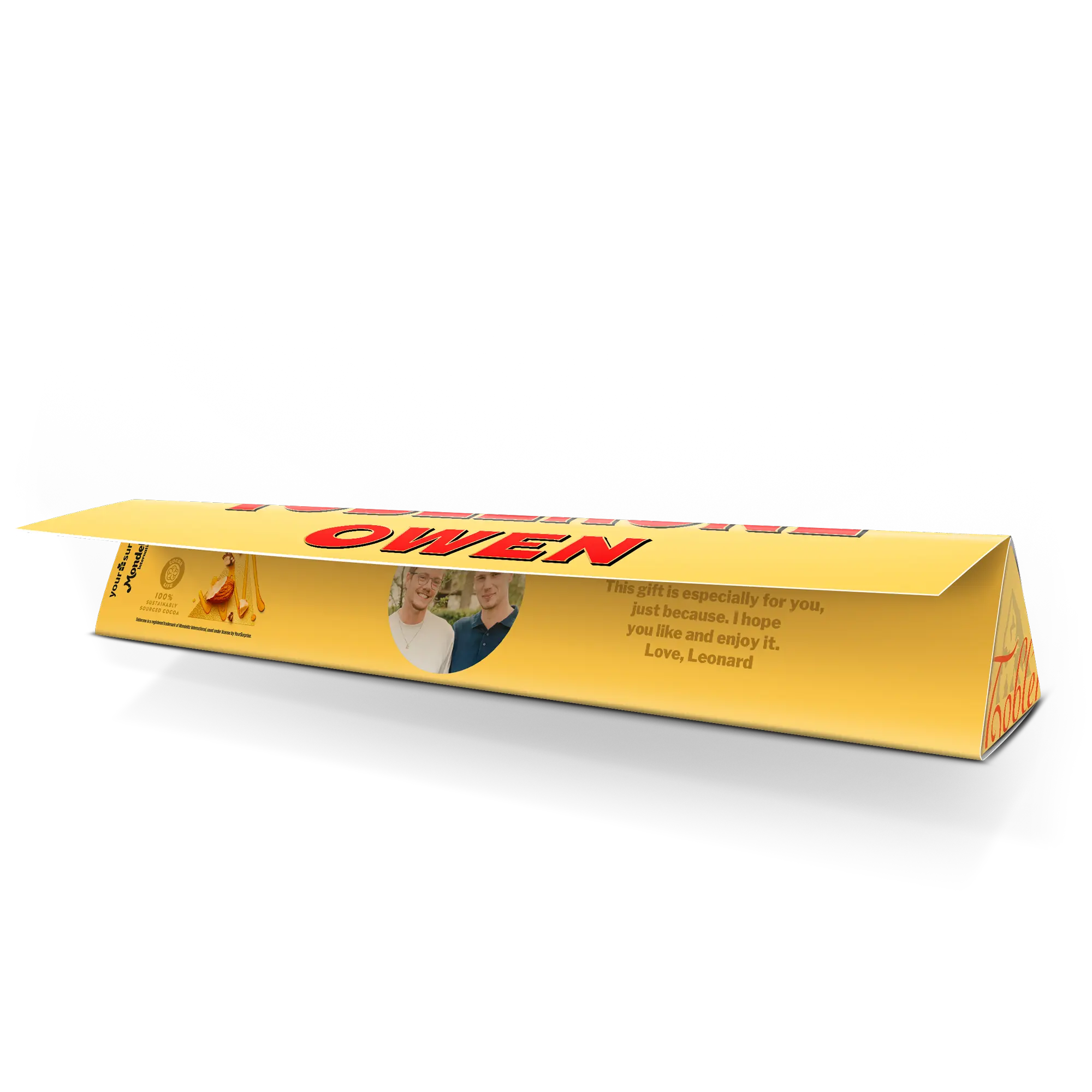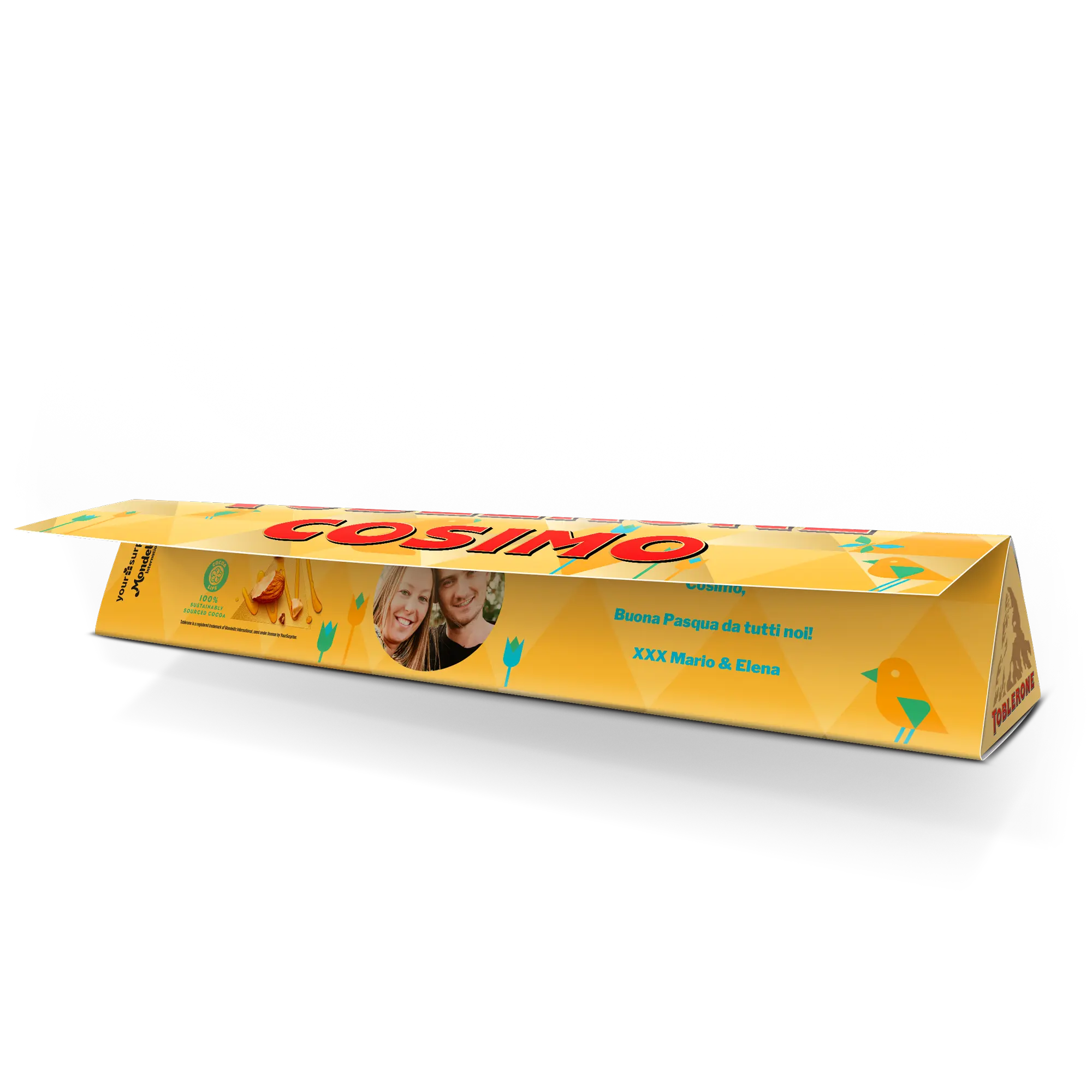 Surprenez un fan de Toblerone avec une barre chocolatée personnalisée. Design Toblerone classique avec nom et message !