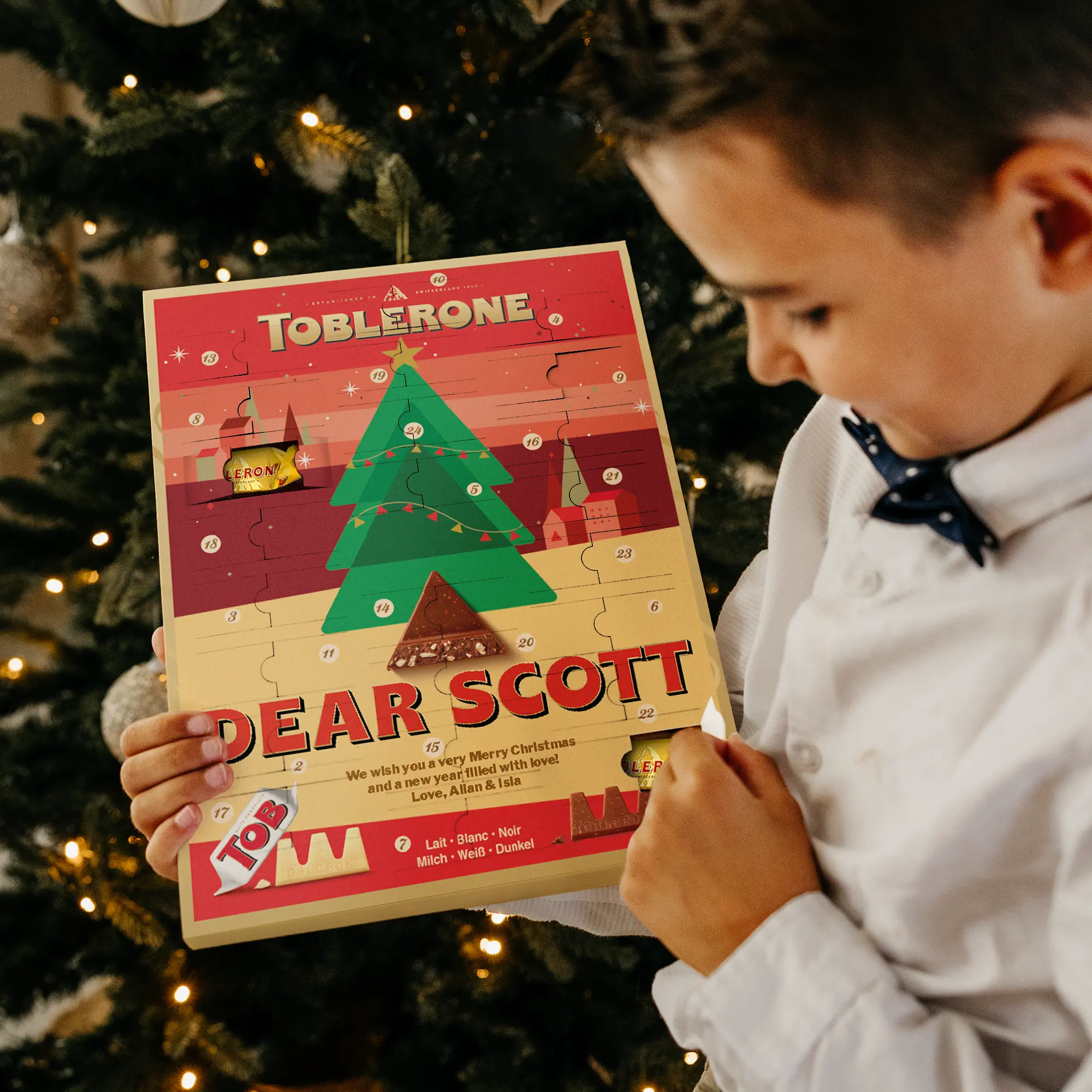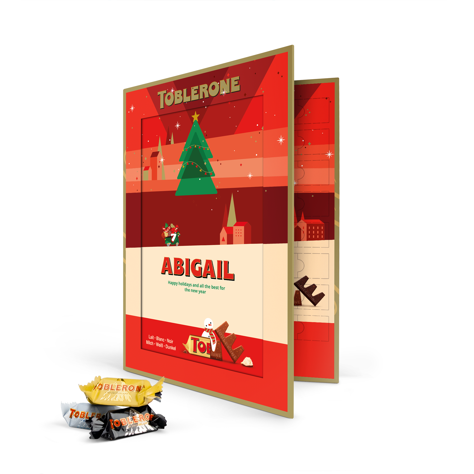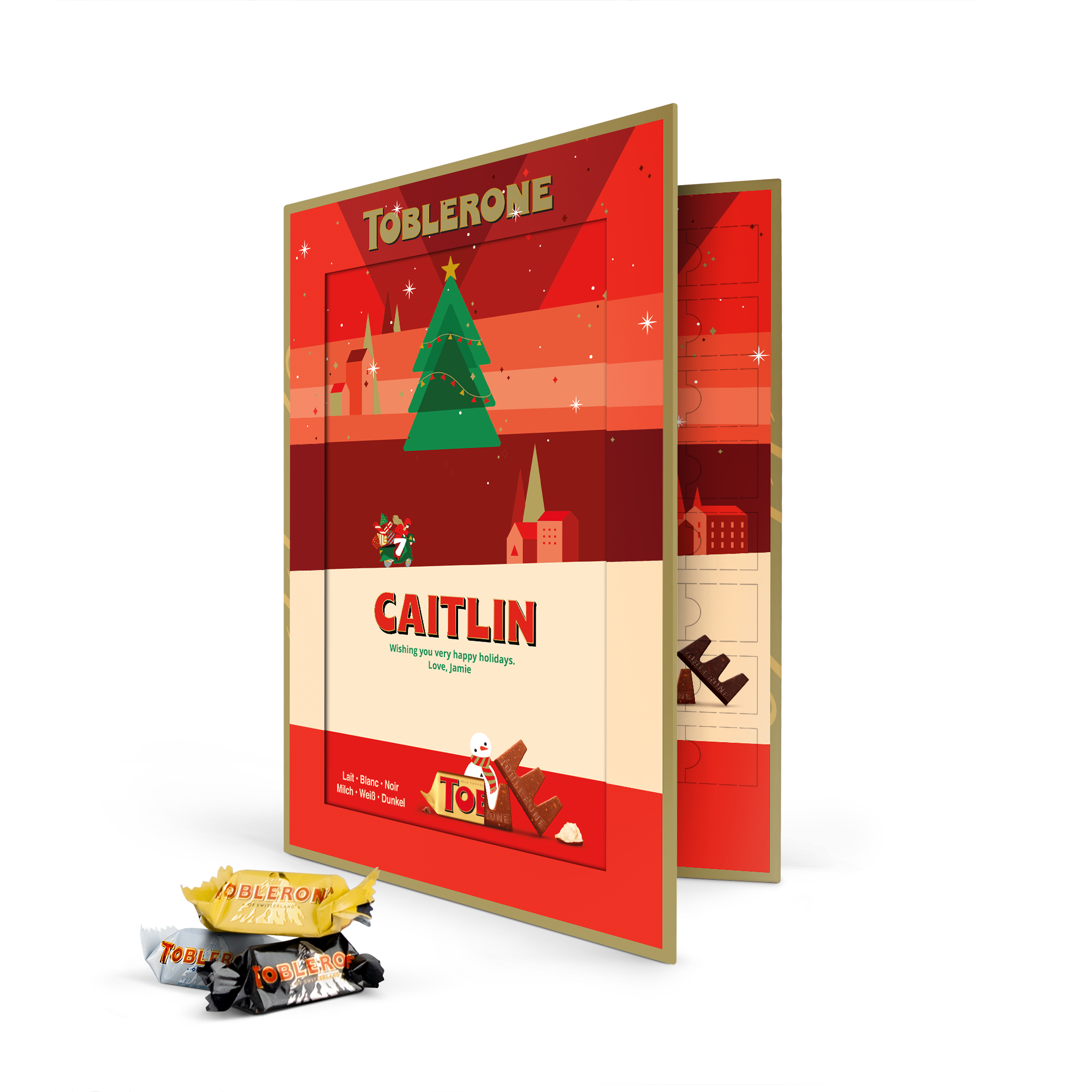 Pour ceux qui aiment les petites attentions, le Calendrier de l'Avent Toblerone vous permet de compter les jours jusqu'à Noël avec 24 délicieux chocolats. Ajoutez un nom, une photo ou un logo pour créer un cadeau vraiment unique.