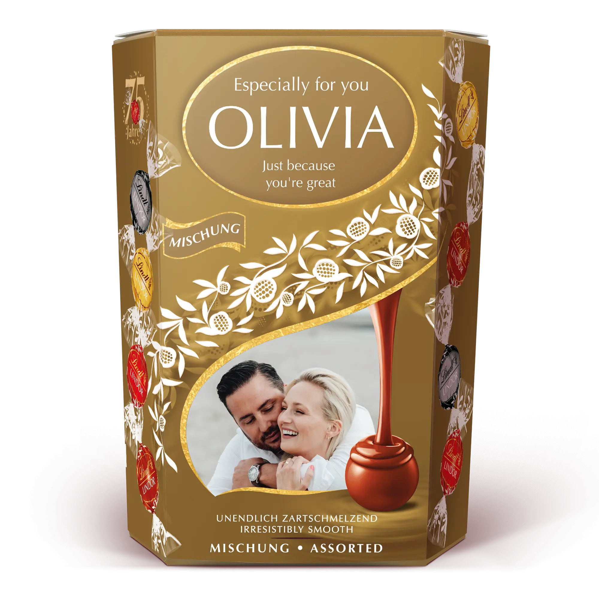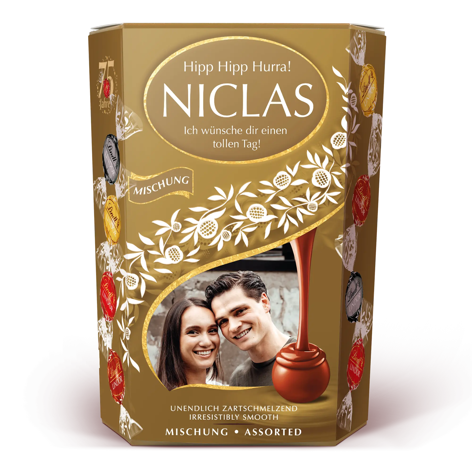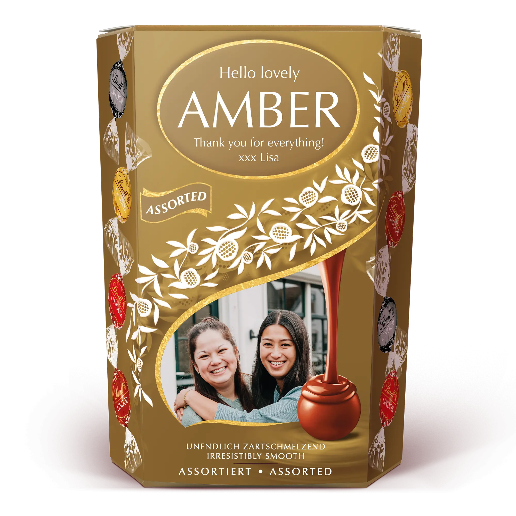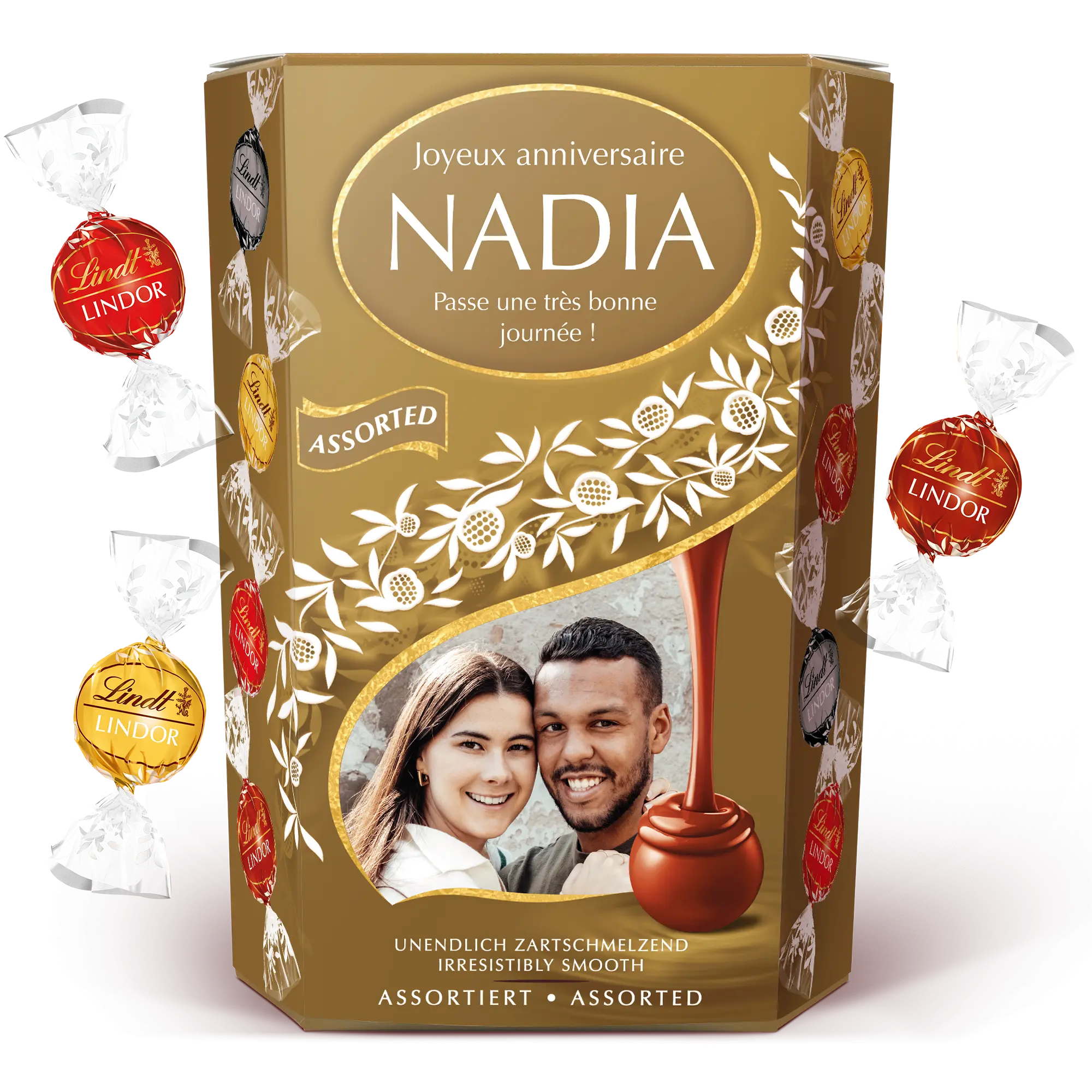 Coffret cadeau chocolat Lindt personnalisé avec photo, nom et message personnel de votre choix - parfait pour les accros au chocolat !