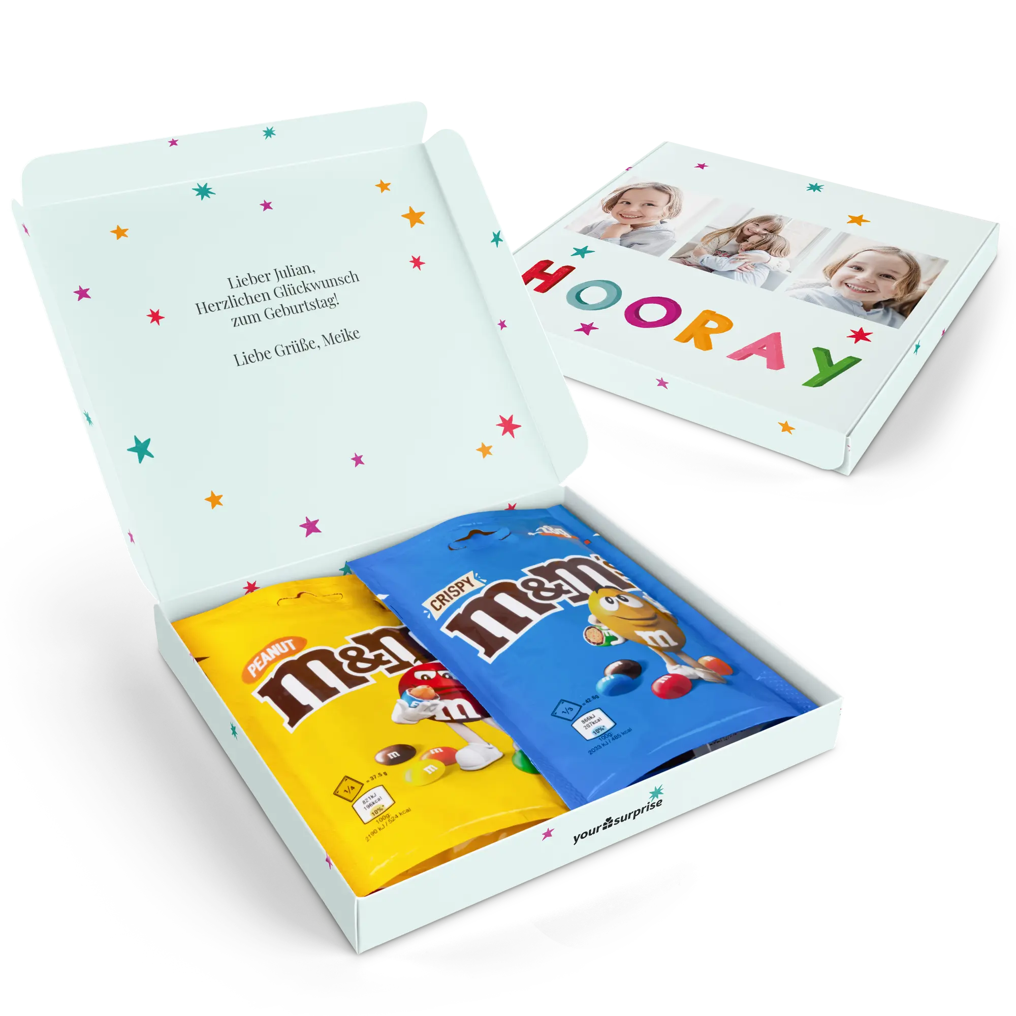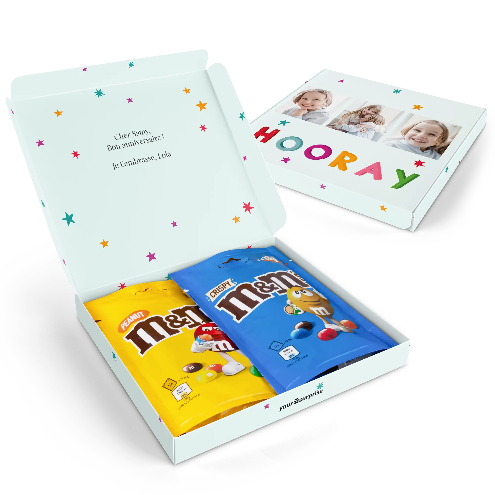 Délicieuse boîte de chocolats M&M's personnalisée avec l'image et le texte de votre choix. Surprenez avec ce cadeau savoureux !