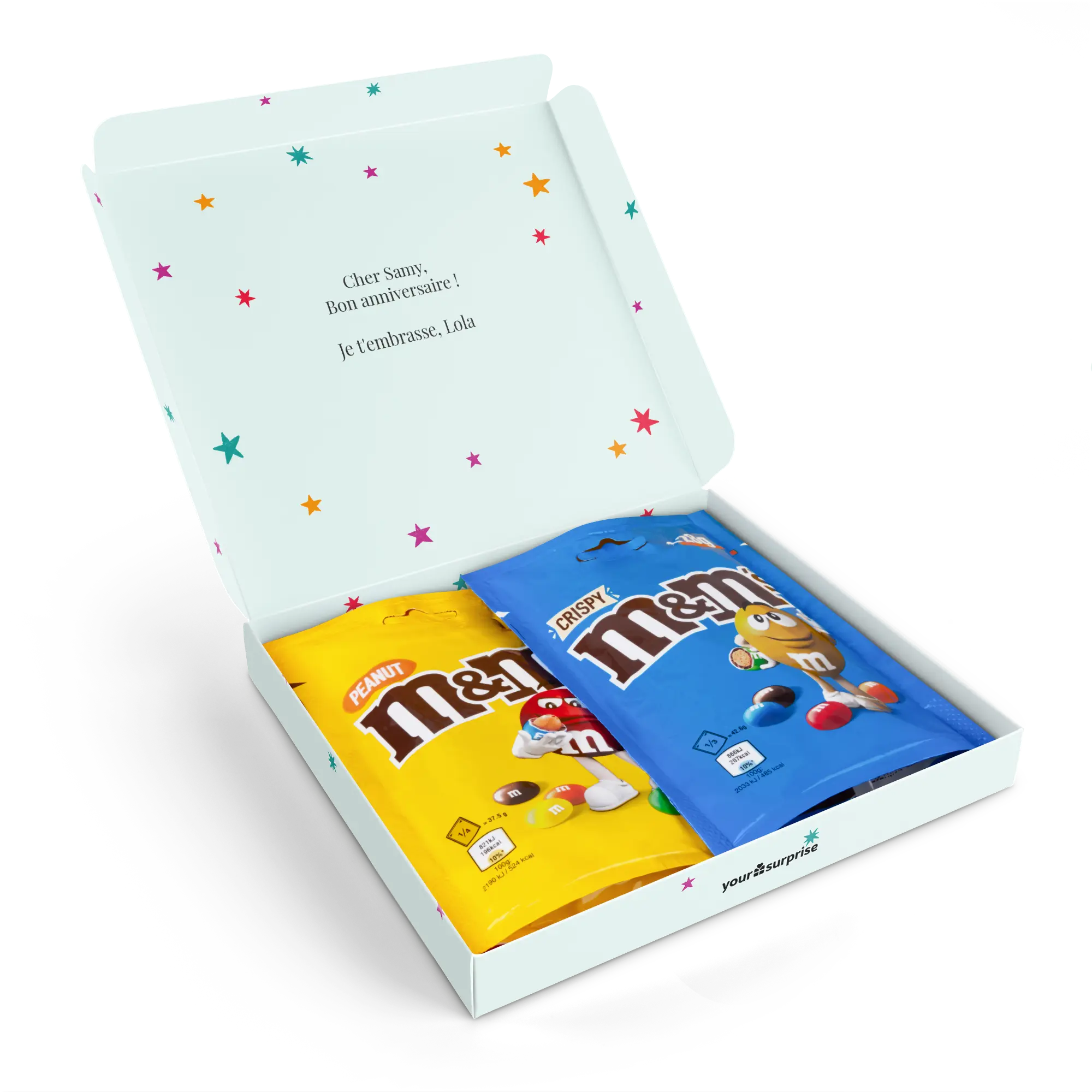 Conservation : Conservez la boîte dans un endroit frais et sec pour préserver la qualité des M&M's.