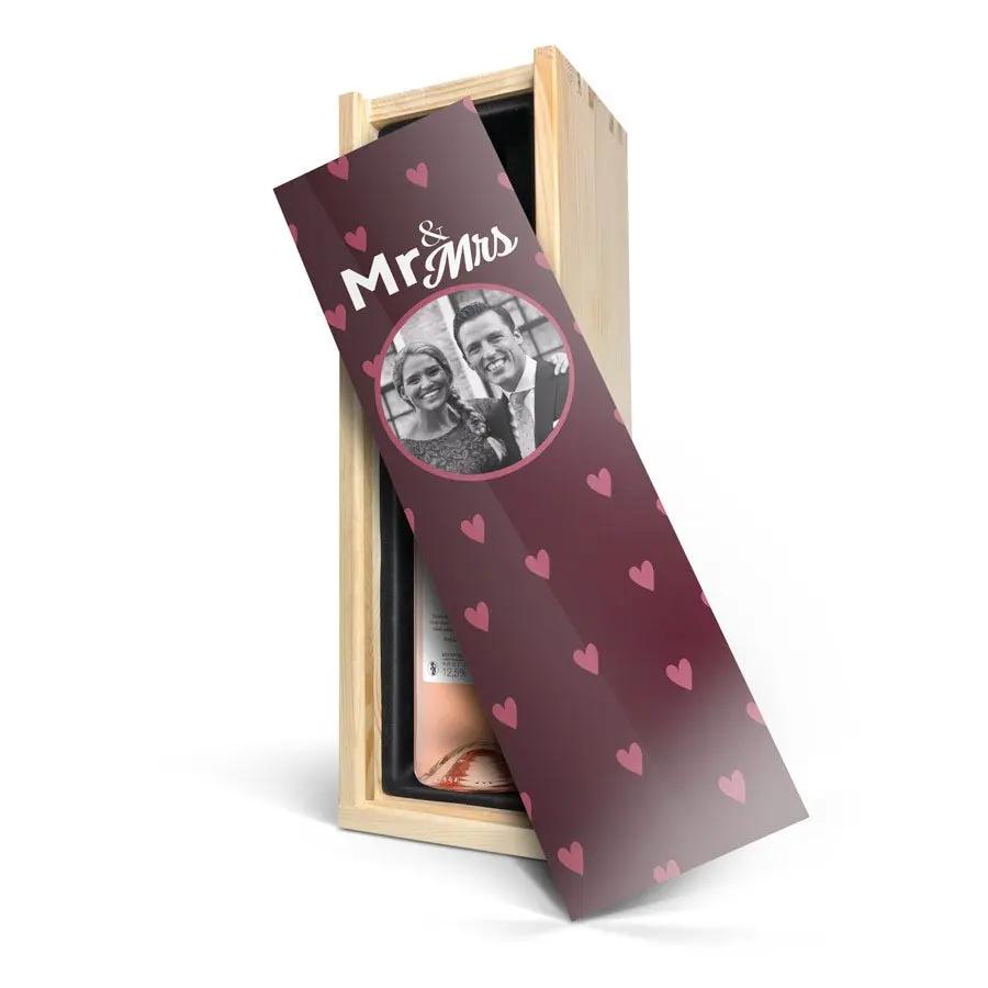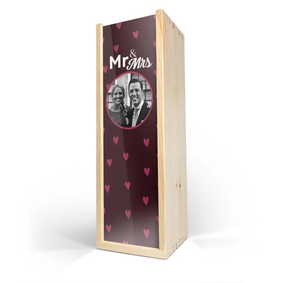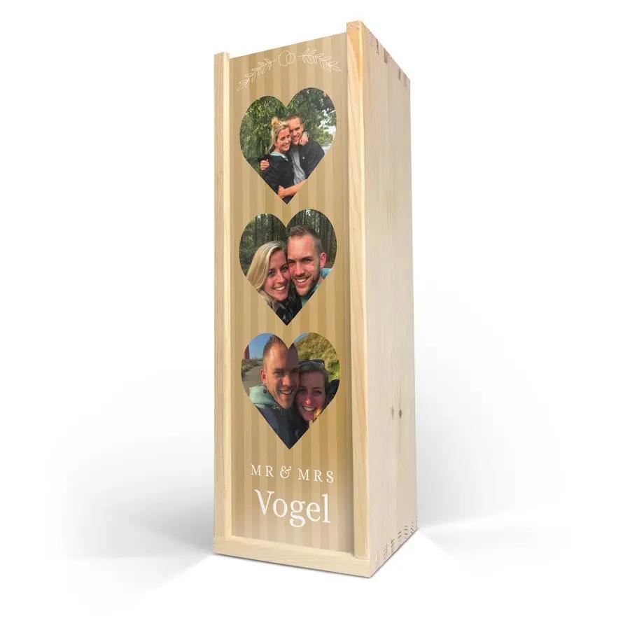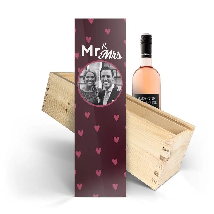 Délicieux vin Maison de la Surprise dans un coffret en bois de luxe orné de la photo, du logo et/ou du texte de votre choix. Créez le vôtre dès maintenant !