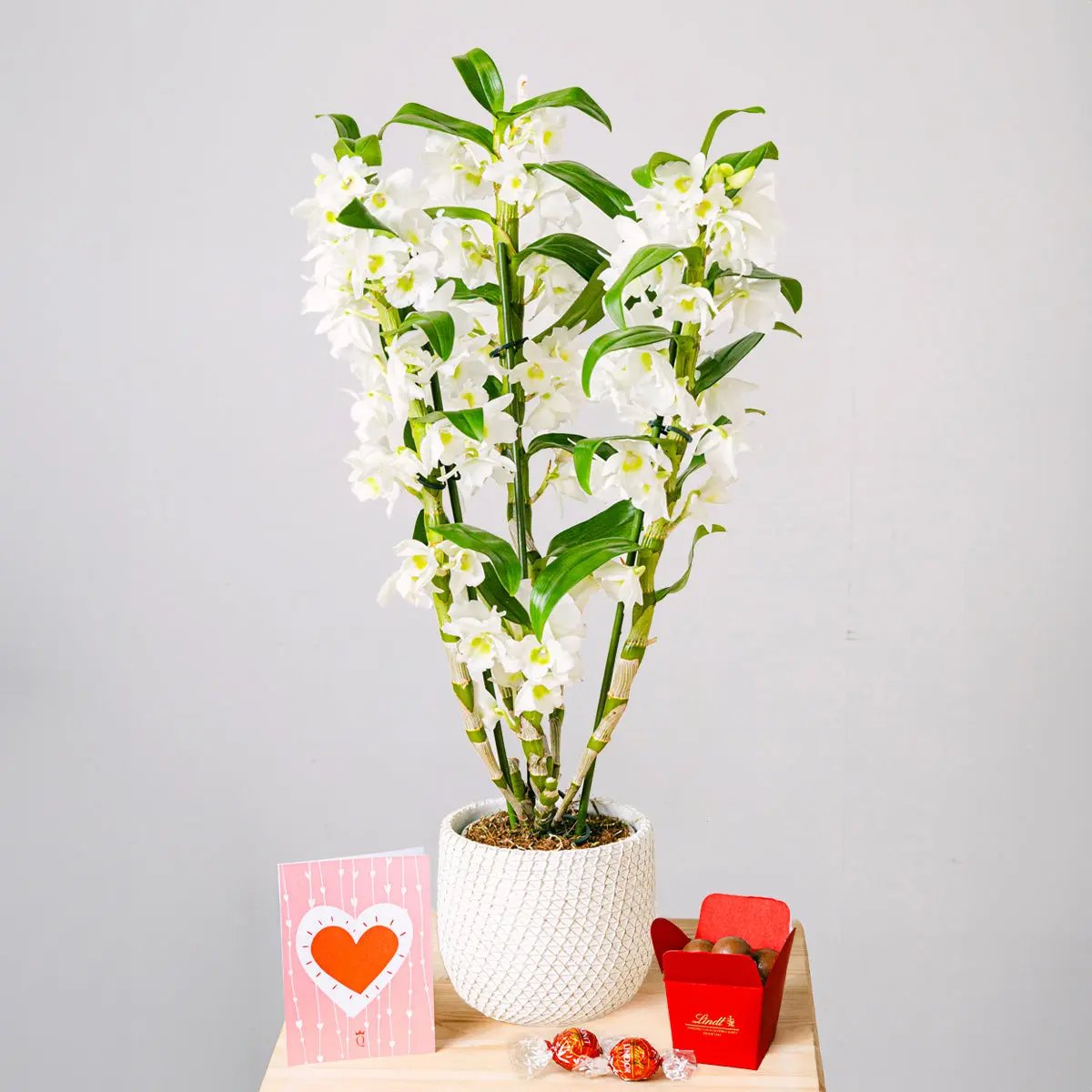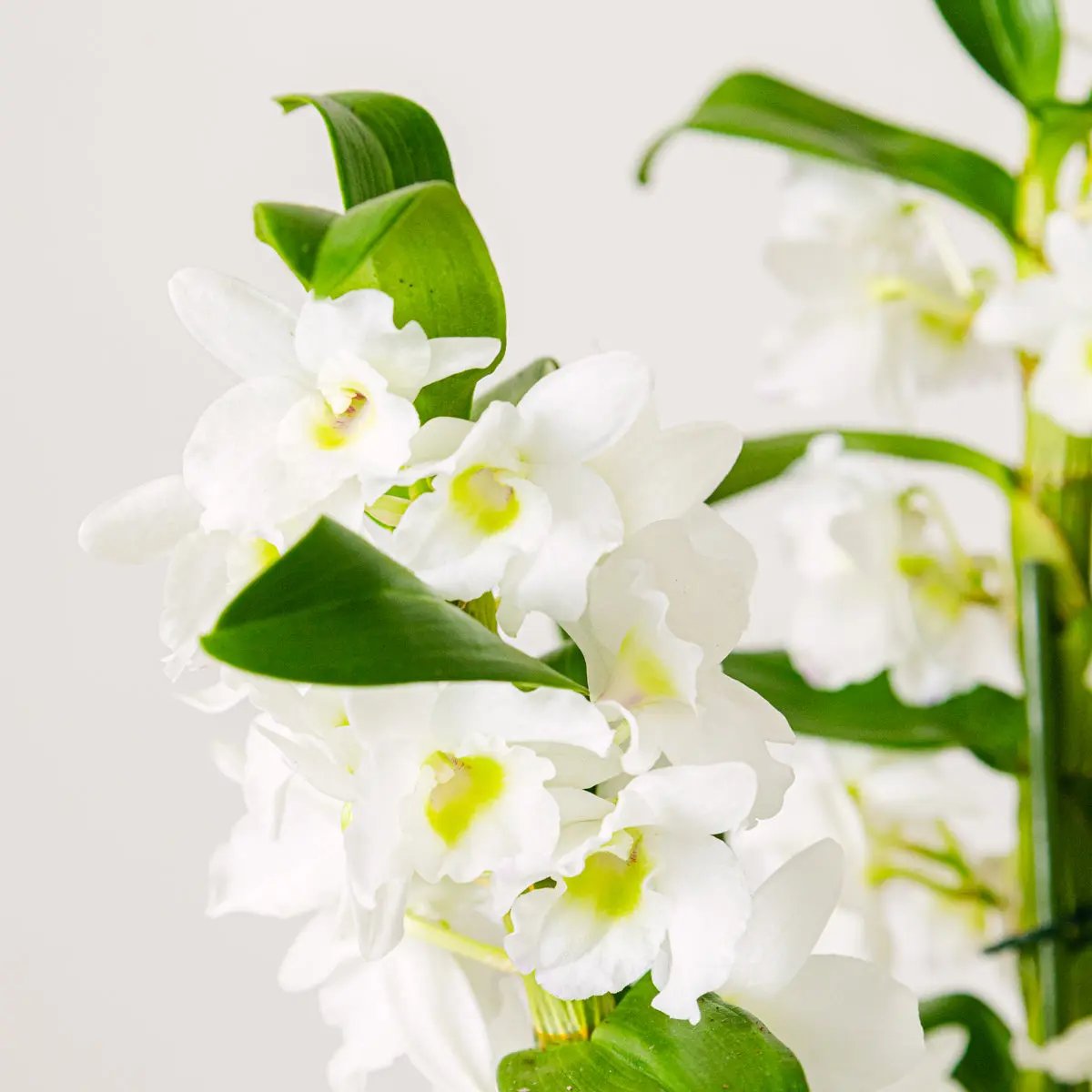 Également connue sous le nom d'orchidée bambou, la dendronium est une variété d'orchidée très appréciée grâce à ses magnifiques fleurs en forme de cloche et à son port érigé. Originaire des forêts tropicales humides, cette plante charpentée et élancée vous sera très reconnaissante si vous vaporisez ses feuilles de temps en temps.