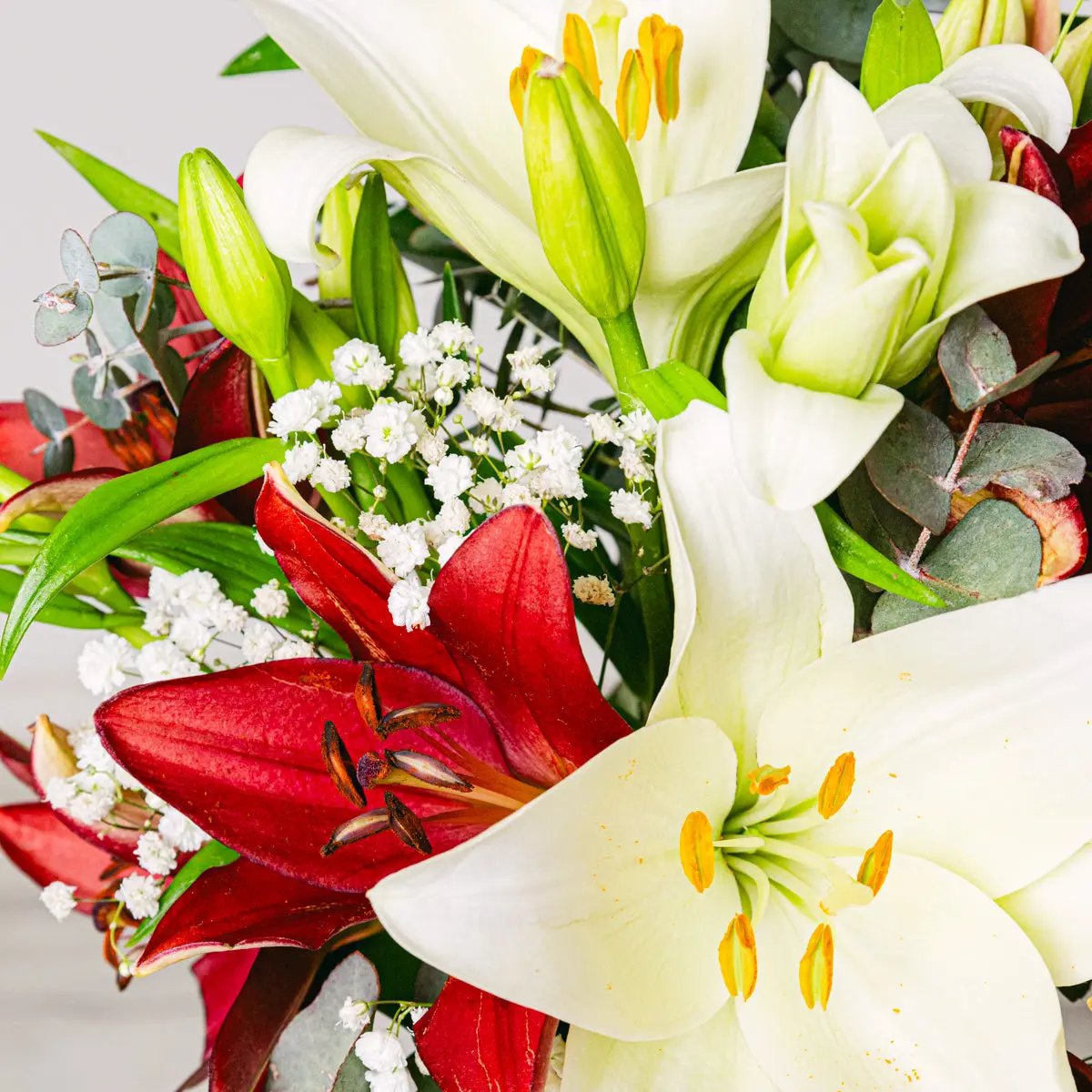 Un chef-d'œuvre de sophistication et de passion, encapsulé dans chaque délicat pétale de nos lys rouges haut de gamme. Ces lys, soigneusement sélectionnés pour leur fraîcheur et leur qualité incomparable, sont un symbole d'amour profond et d'admiration sincère, capables de transmettre les émotions les plus intenses grâce à leur teinte pourpre vibrante.