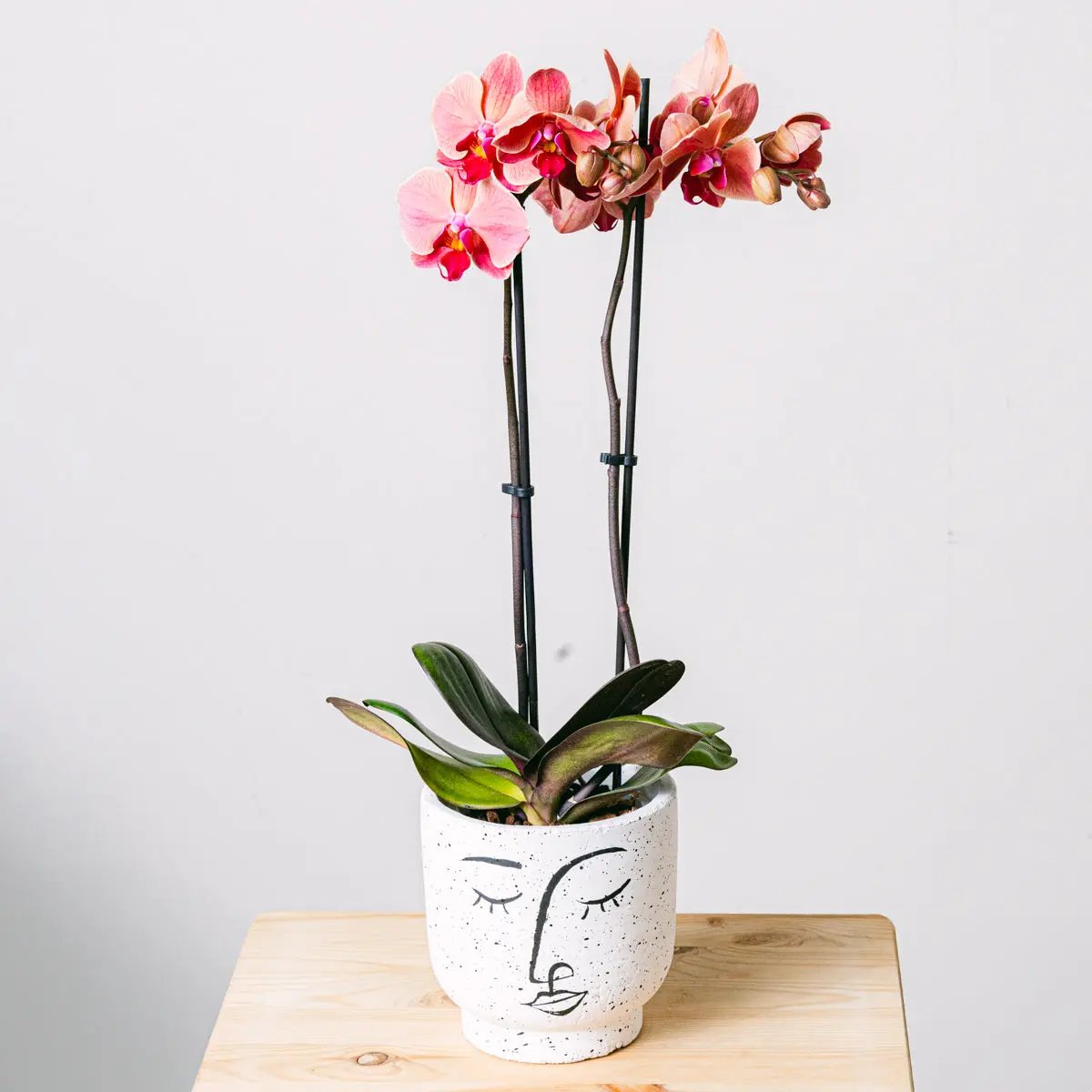L'une des variétés d'orchidées Phalaenopsis les plus originales. La teinte crème de ses pétales, parsemés de taches roses, rappelle la peau du tigre, ce qui lui confère un aspect unique. Elle est également très facile d'entretien.