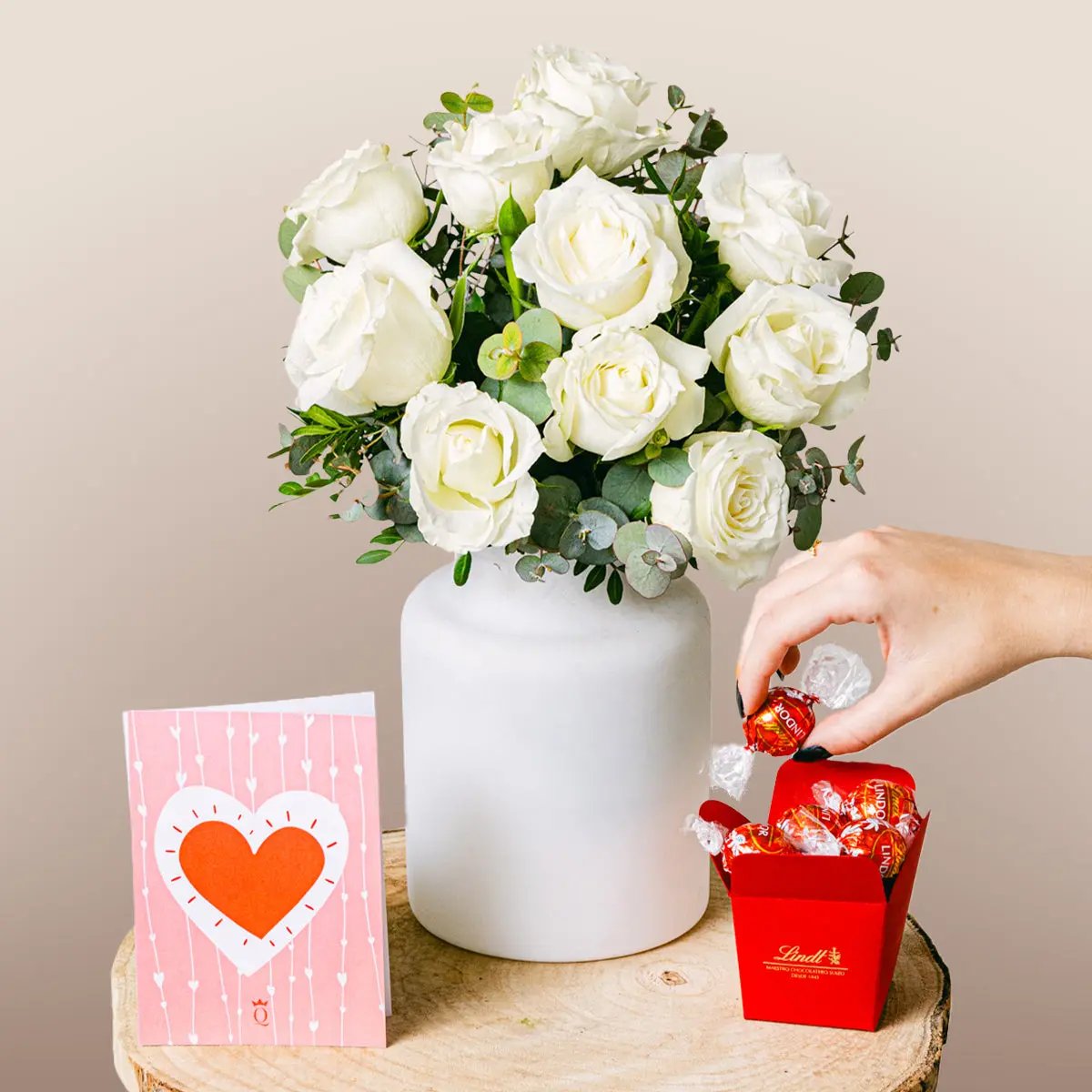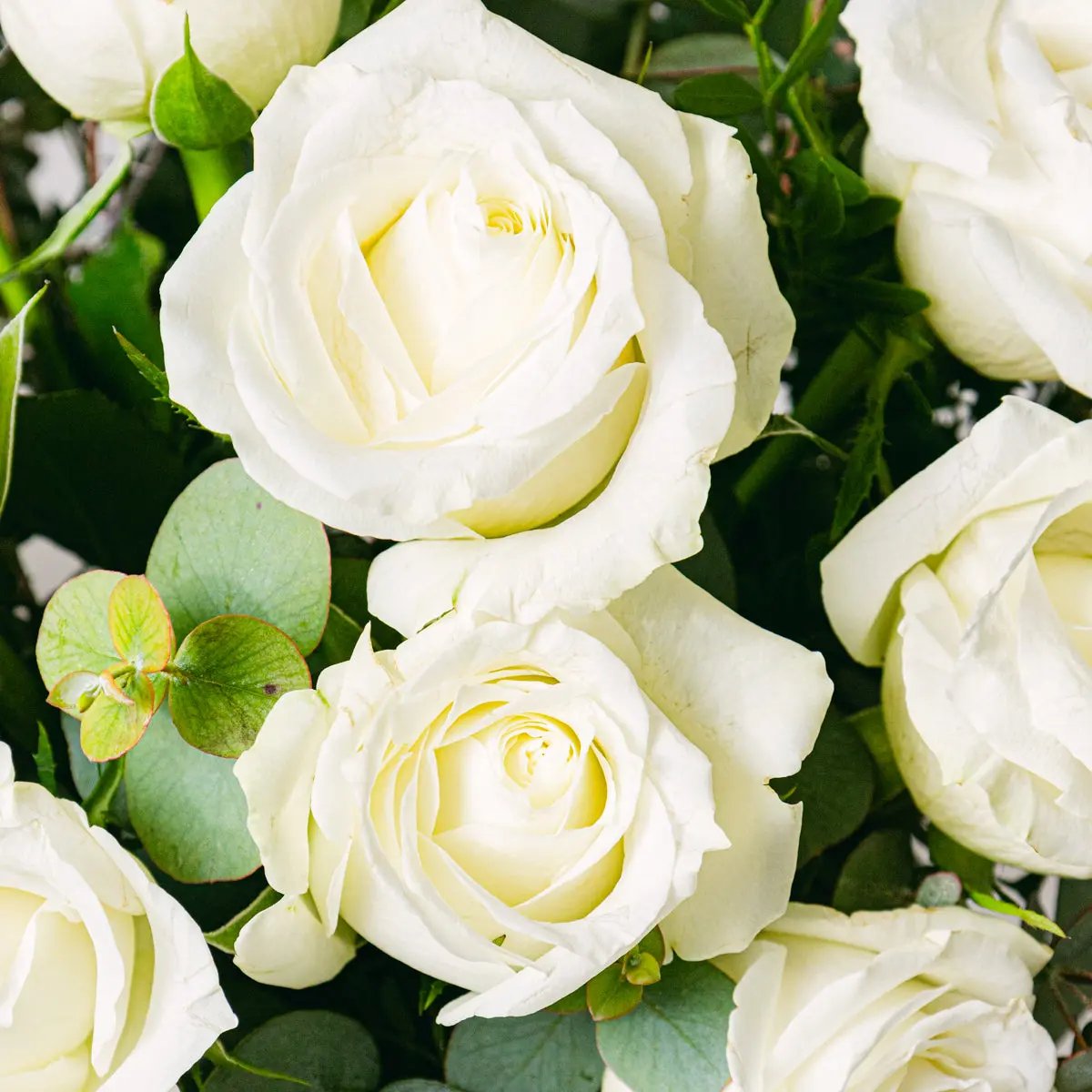 Découvrez l'élégance et la sérénité de notre bouquet, conçu pour apporter sérénité et grâce à n'importe quel décor. Les roses blanches, universellement reconnues comme symboles de pureté, d'innocence et de renouveau, constituent la pièce maîtresse de cette magnifique composition. Chaque rose est soigneusement sélectionnée pour sa forme impeccable et sa beauté éthérée, créant une aura de calme et de sophistication.