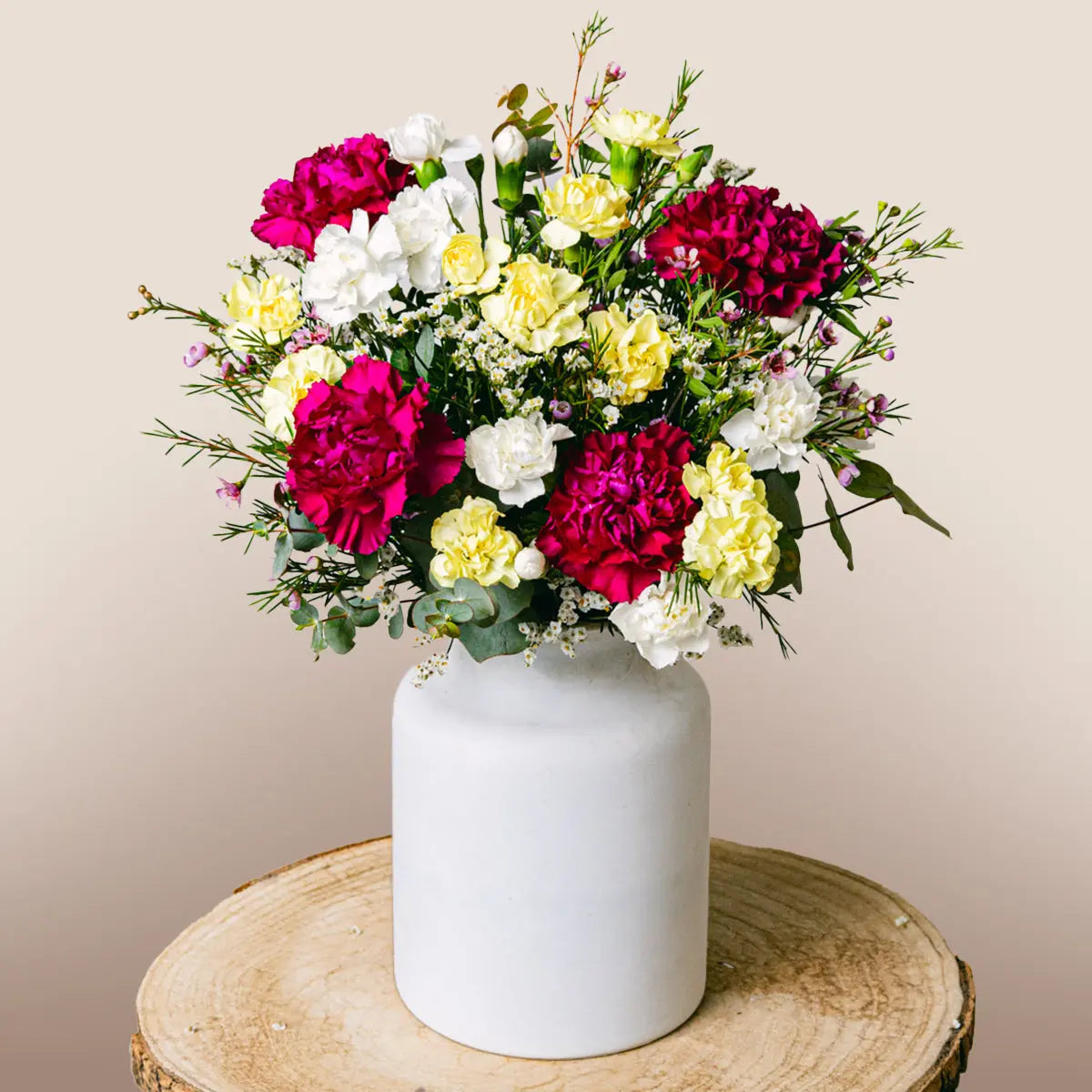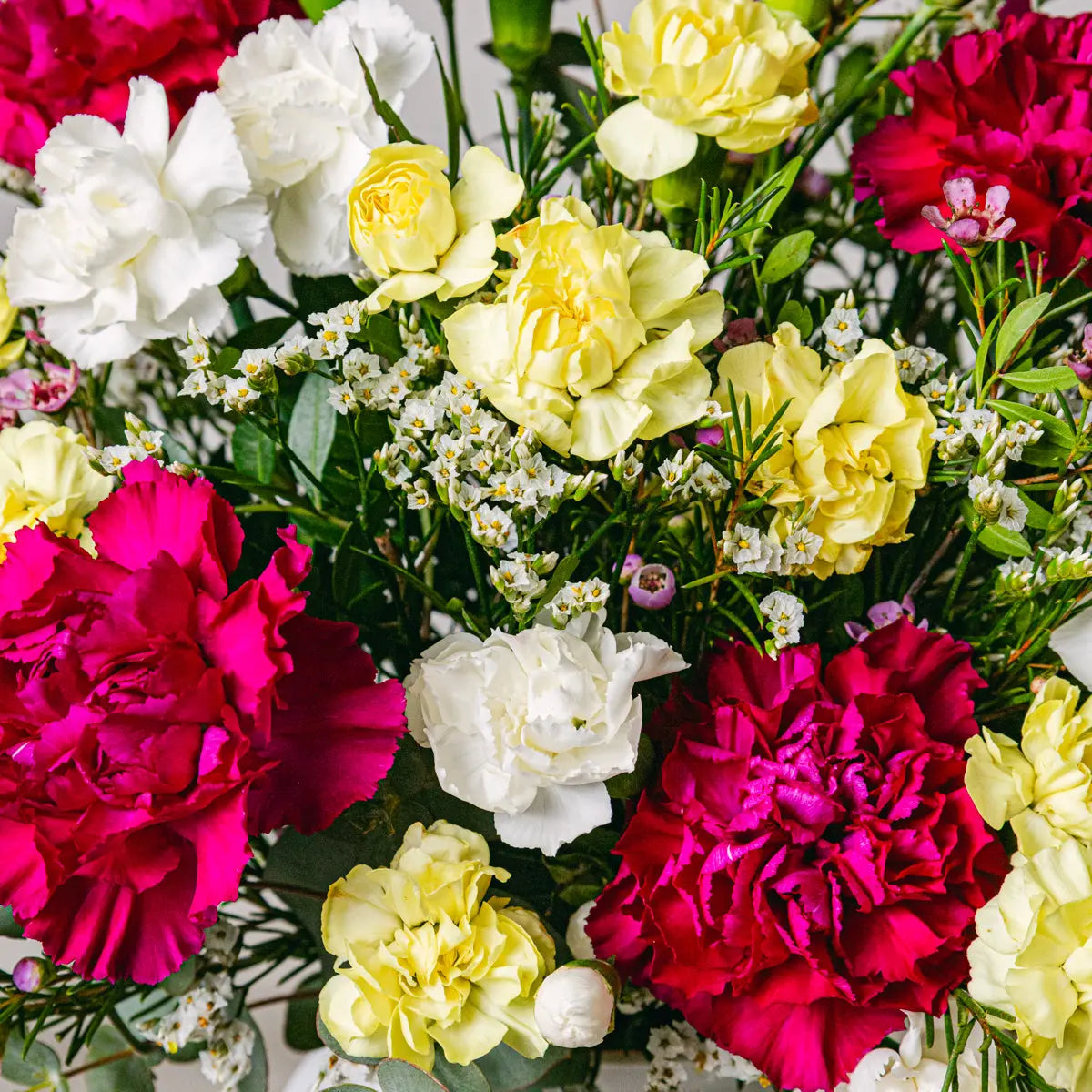 Ressentez la chaleur de l'affection avec notre bouquet « Harmonie du Cœur », un magnifique mélange d'œillets éclatants et de lisianthus délicats. Cette composition, soigneusement conçue, parle d'amour et d'admiration, ce qui en fait le cadeau idéal pour réunir les cœurs au-delà des distances. Les teintes riches et profondes des œillets rouges et roses symbolisent l'amour profond et l'affection, tandis que le lisianthus blanc représente la pureté et l'innocence, offrant un message aussi doux que les chocolats qui l'accompagnent.