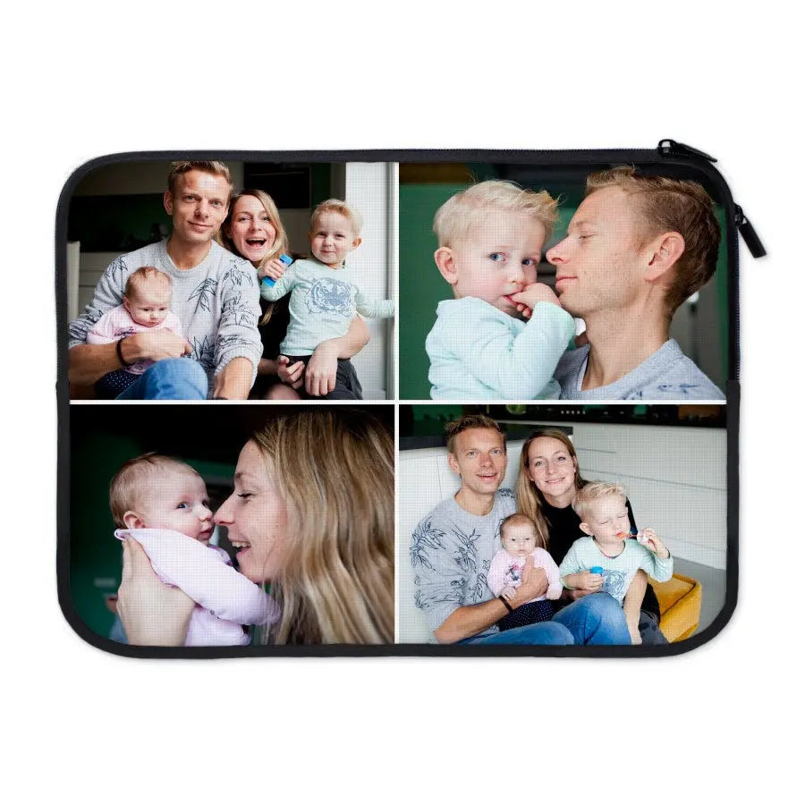 Plus d'informations sur la housse pour ordinateur portable moyenne :Matériau extérieur : néoprène ultra résistant et douxMatériau intérieur : peluche ultra douceDimensions extérieures de la housse : 36,5 x 28 cmDimensions maximales de l'ordinateur portable : 33,5 x 26 cmPersonnalisation : avec photo, texte et/ou logoImpression : sur une face, parfaite en couleurCouleur du côté non imprimé : noirSi vous voulez être sûr que votre ordinateur portable s'adaptera, nous vous conseillons de vérifier les dimensions de votre ordinateur portable.