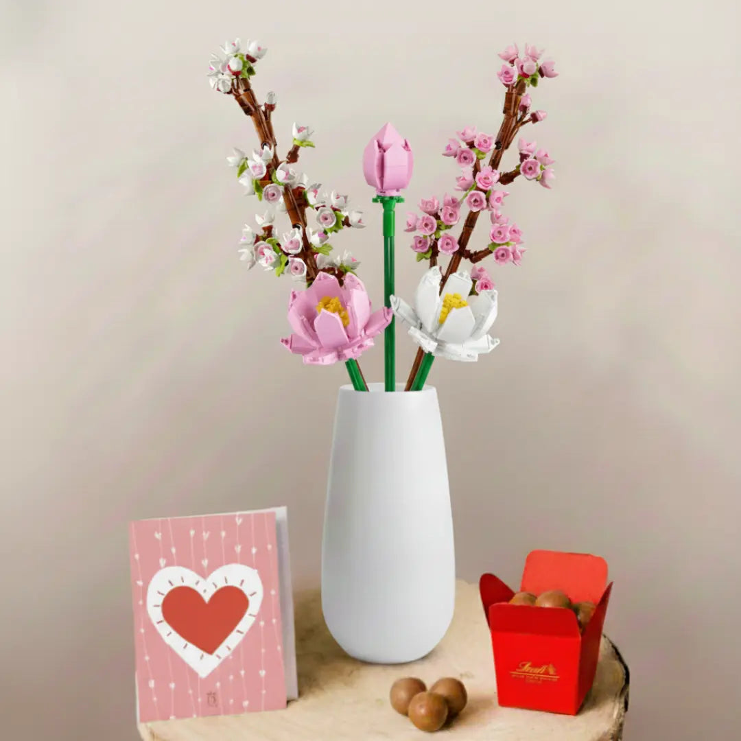 LEGO bouquet inspiré par la botanique, une combinaison parfaite de deux ensembles botaniques : les fleurs de cerisier et les fleurs de lotus, symbolisant une beauté éternelle.