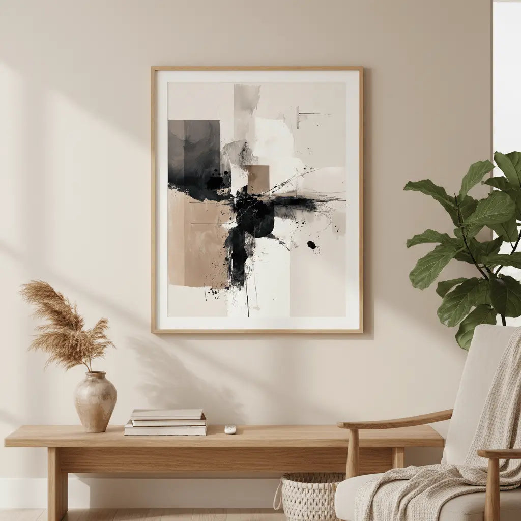 Une composition abstraite de tons neutres doux et de mouvement expressif. Une œuvre d'art raffinée qui apporte une énergie tranquille.