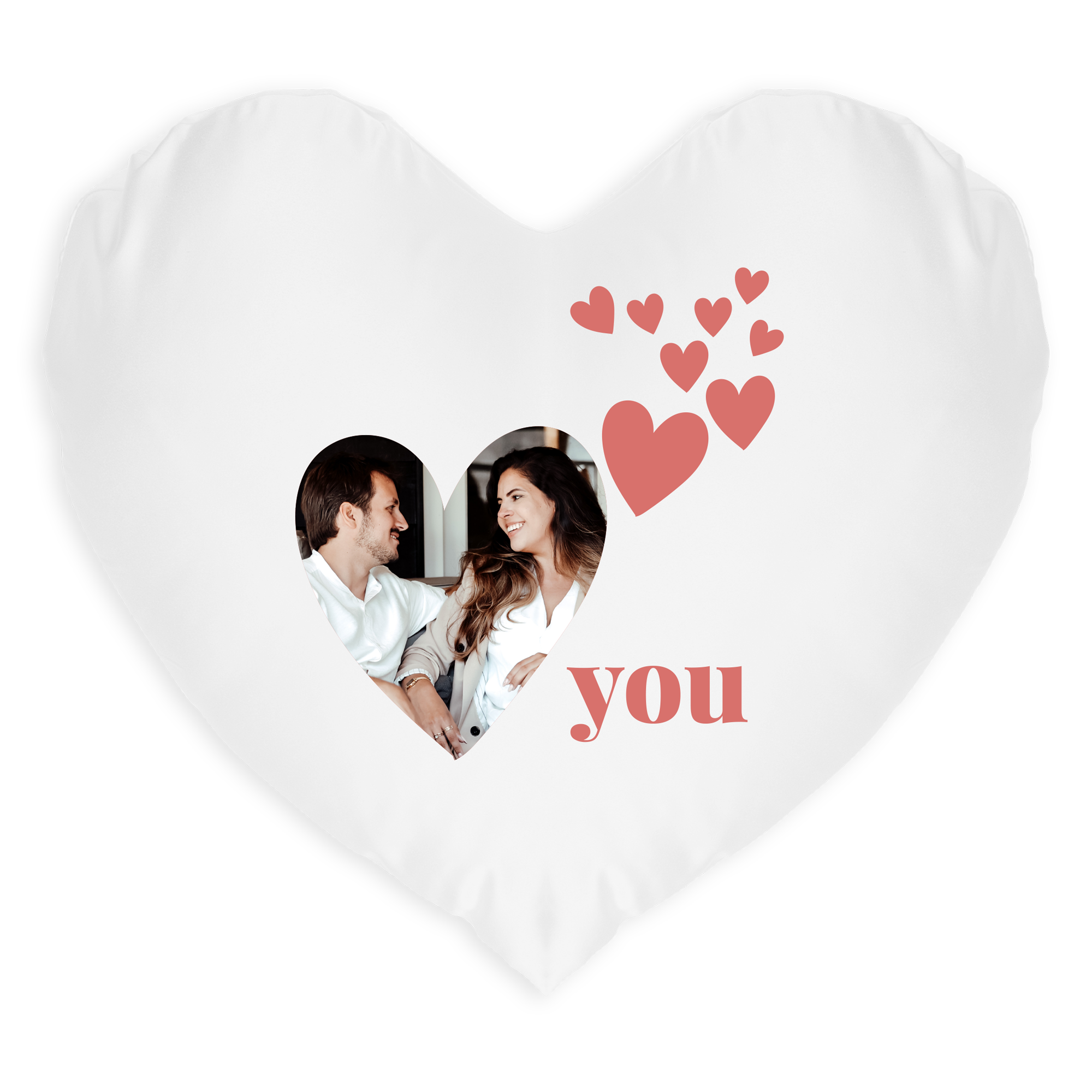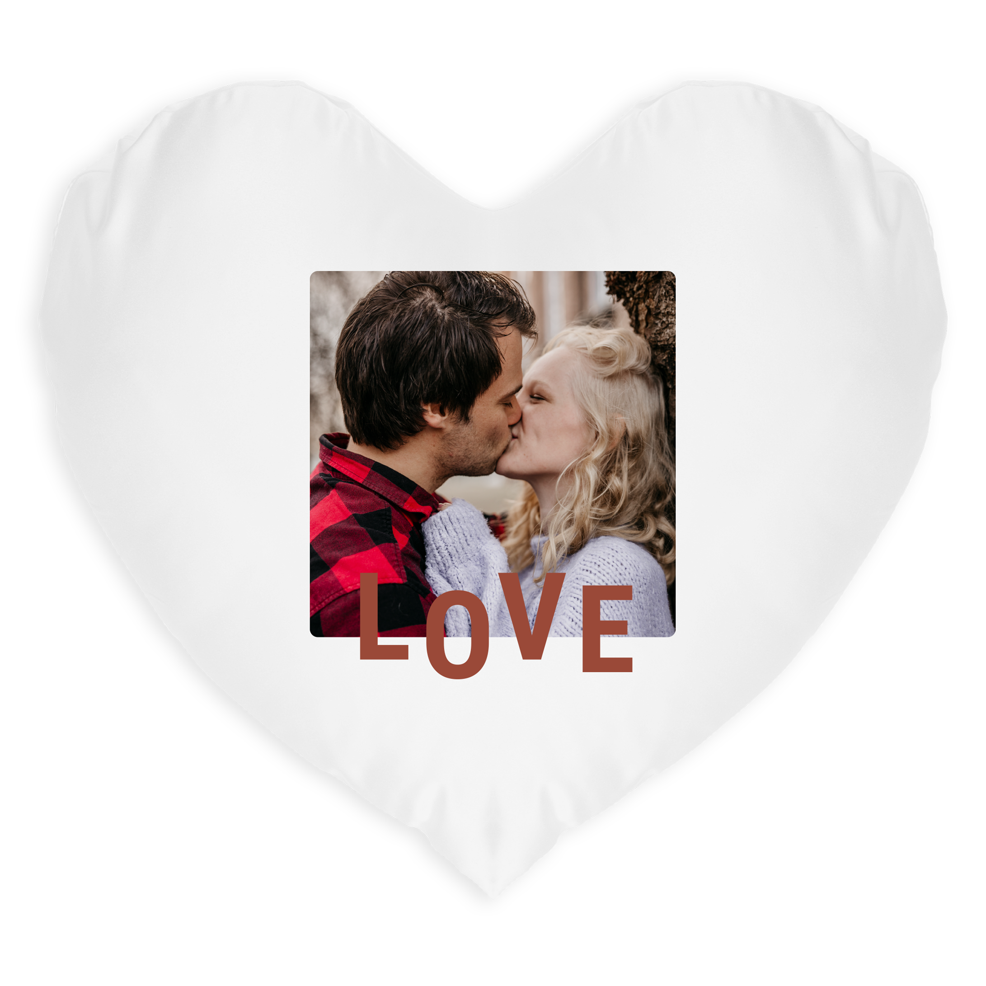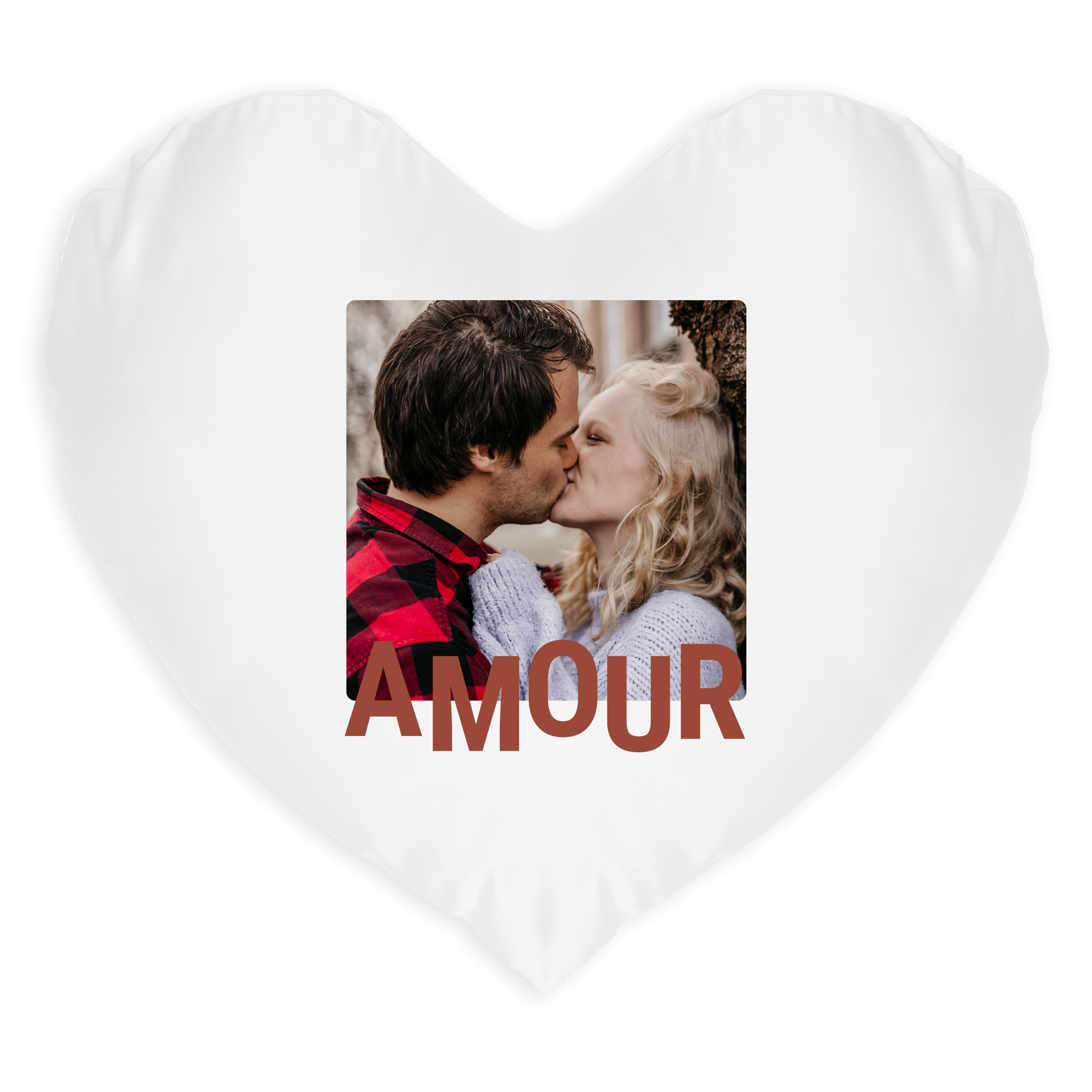 Un magnifique coussin en forme de cœur avec votre plus belle photo et votre plus beau texte !