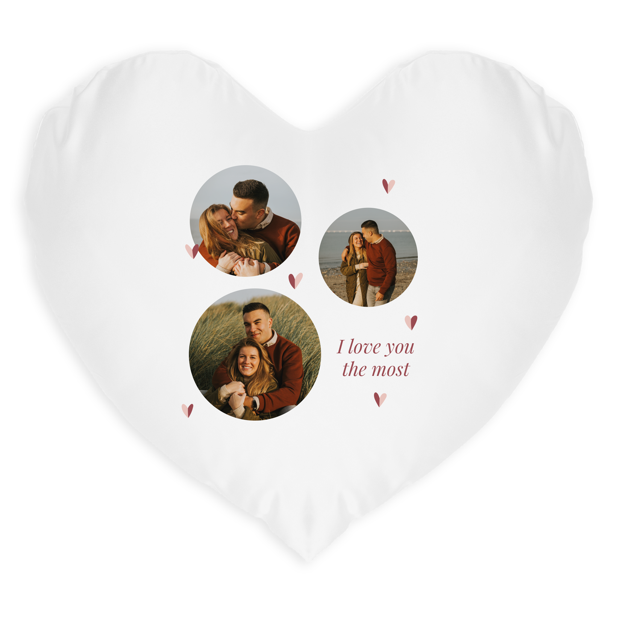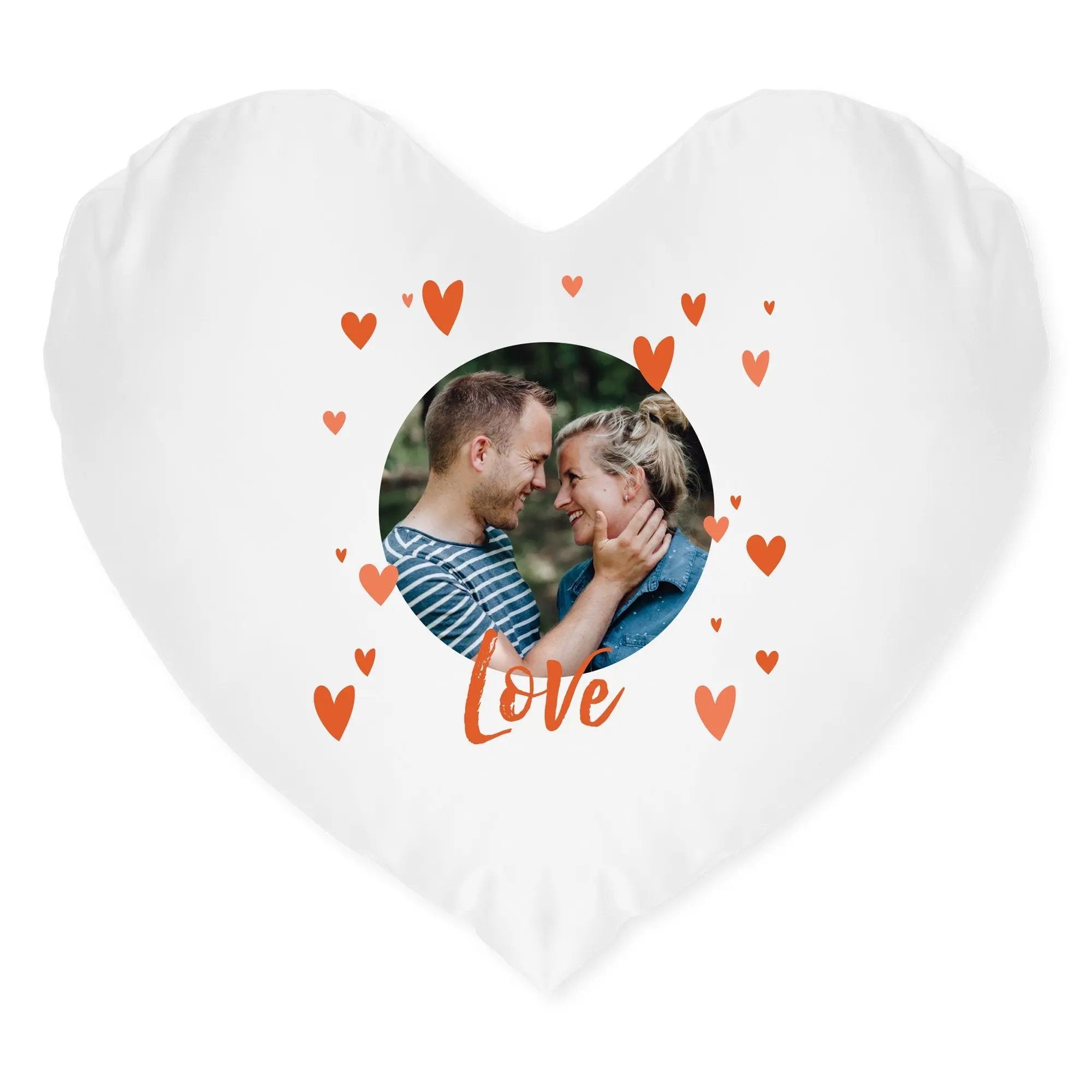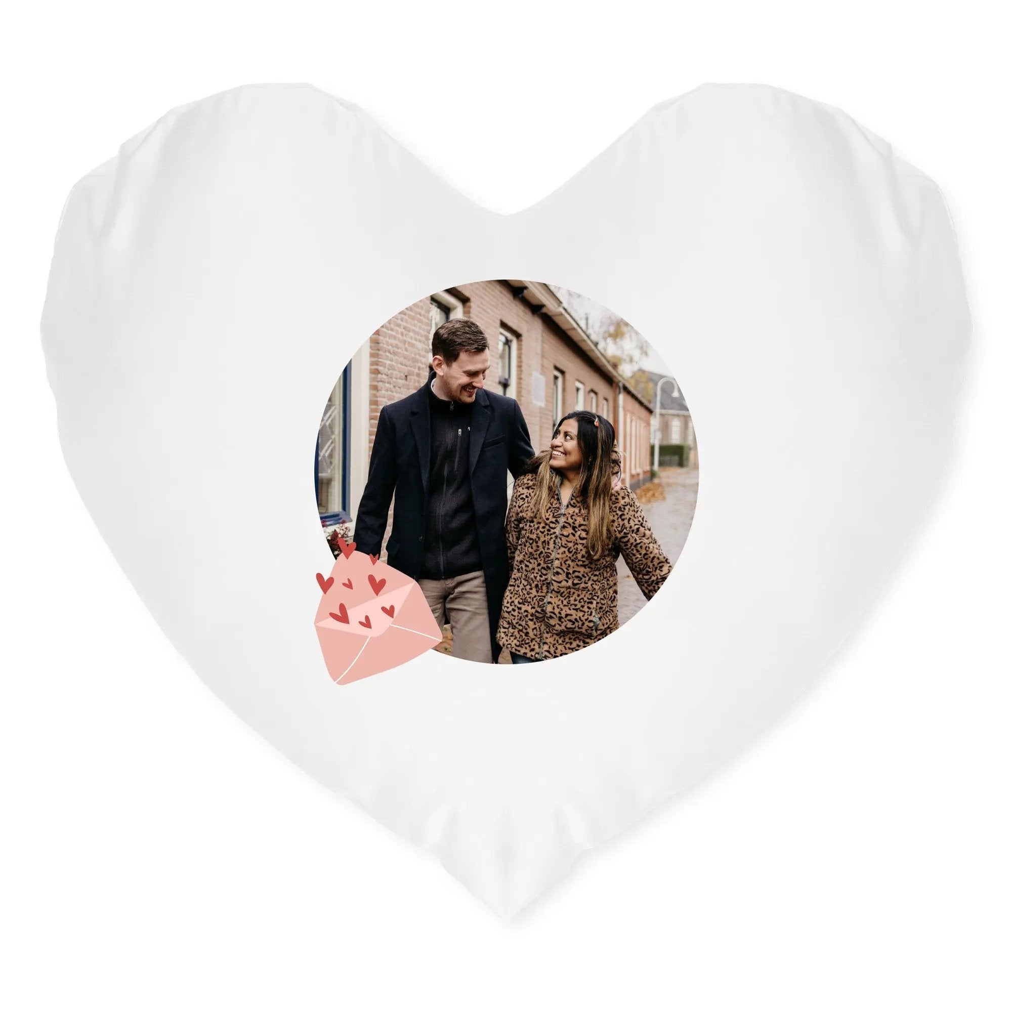 Un magnifique coussin en forme de cœur avec votre plus belle photo et votre plus beau texte !