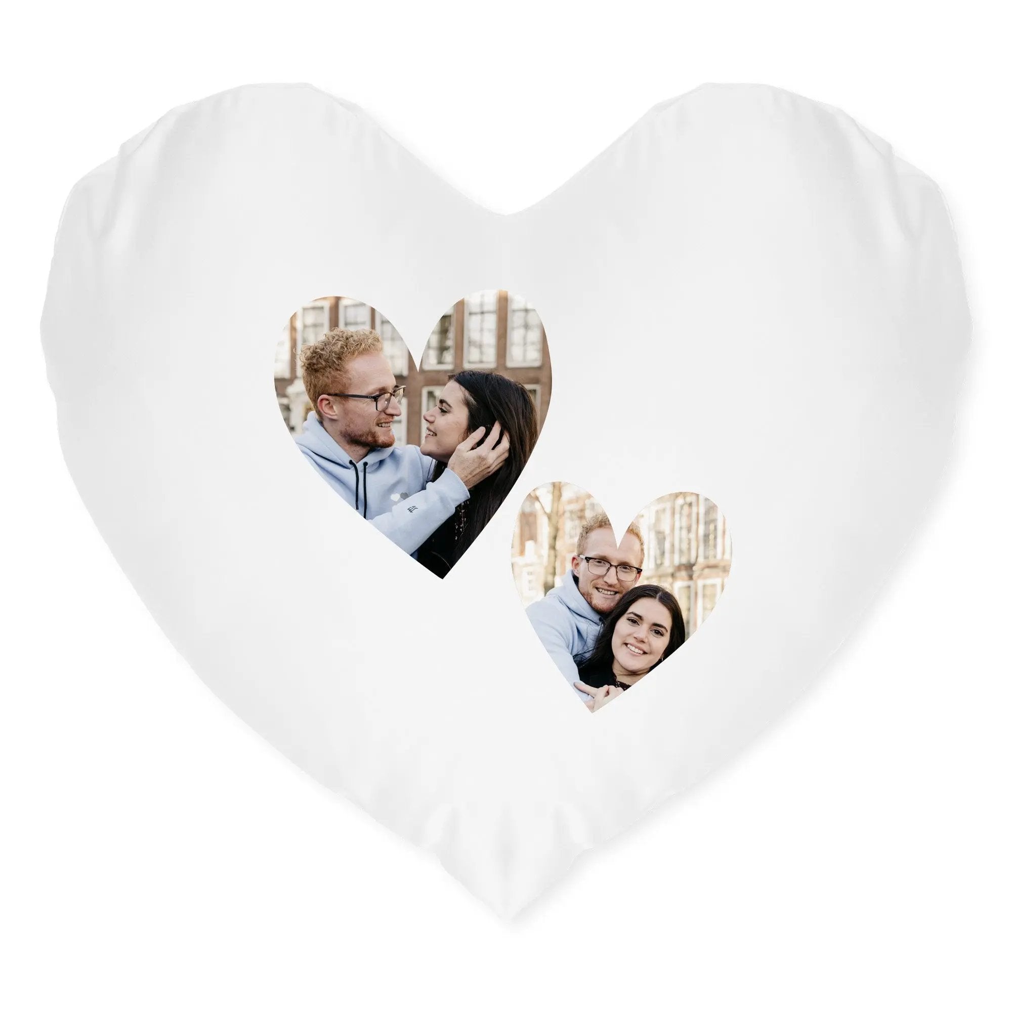 Plus d'informations sur le coussin en forme de cœur :Forme : cœurCouleur : blancMatière : aspect satiné brillant (100 % polyester)Taille : 40 x 40 cm / 15,7" x 15,7"Personnalisation : avec photo et/ou texteImpression : image parfaite et en couleurTaille de l'impression : 21 x 21 cm / 8,3" x 8,3"Emplacement de l'impression : sur le devant de l'oreillerExtra : ce cadeau comprend un rembourrage de coussinInstructions de lavage : Laver à 40°C (programme délicat / lavage laine).Ne pas sécher en machine et ne pas nettoyer à sec la taie d'oreiller.