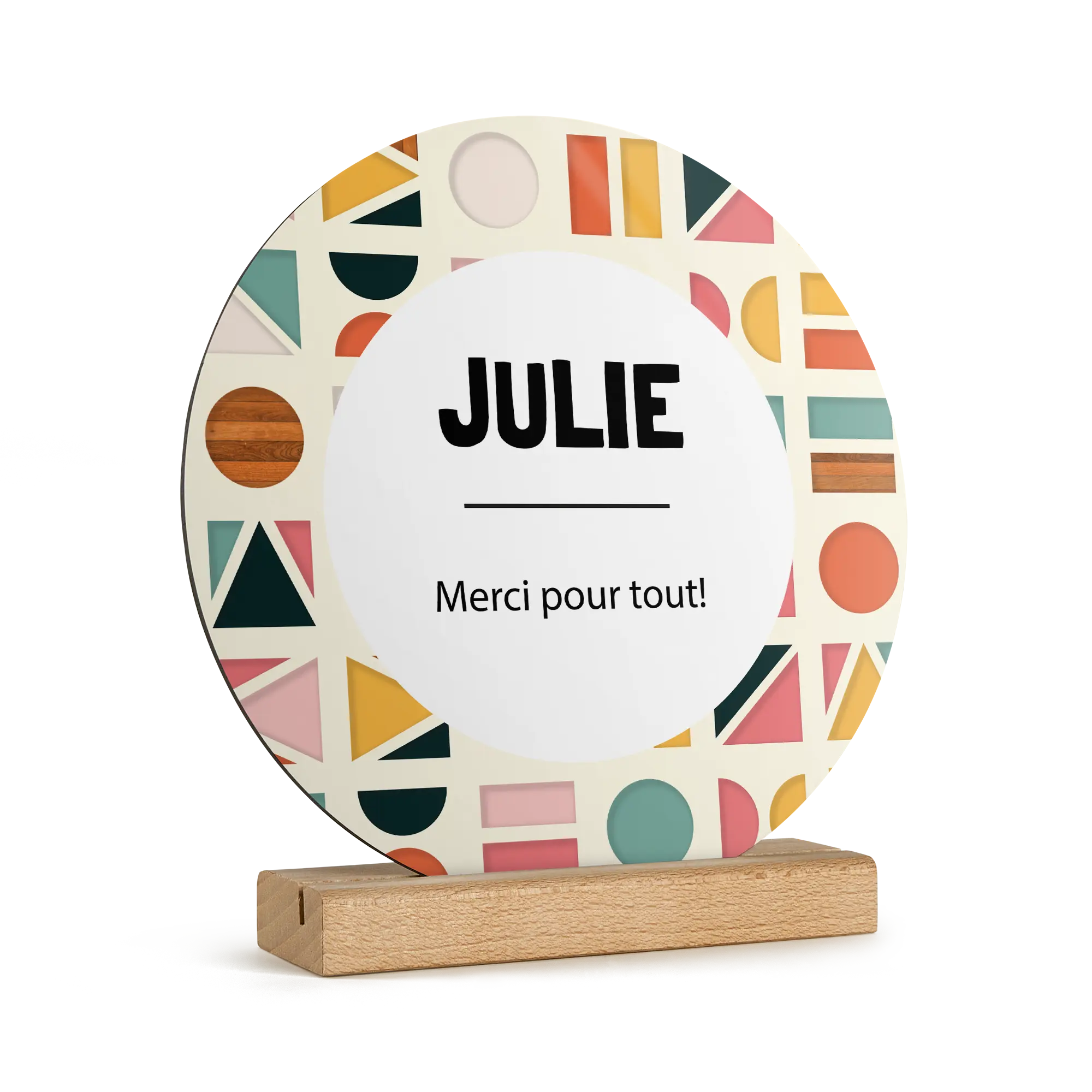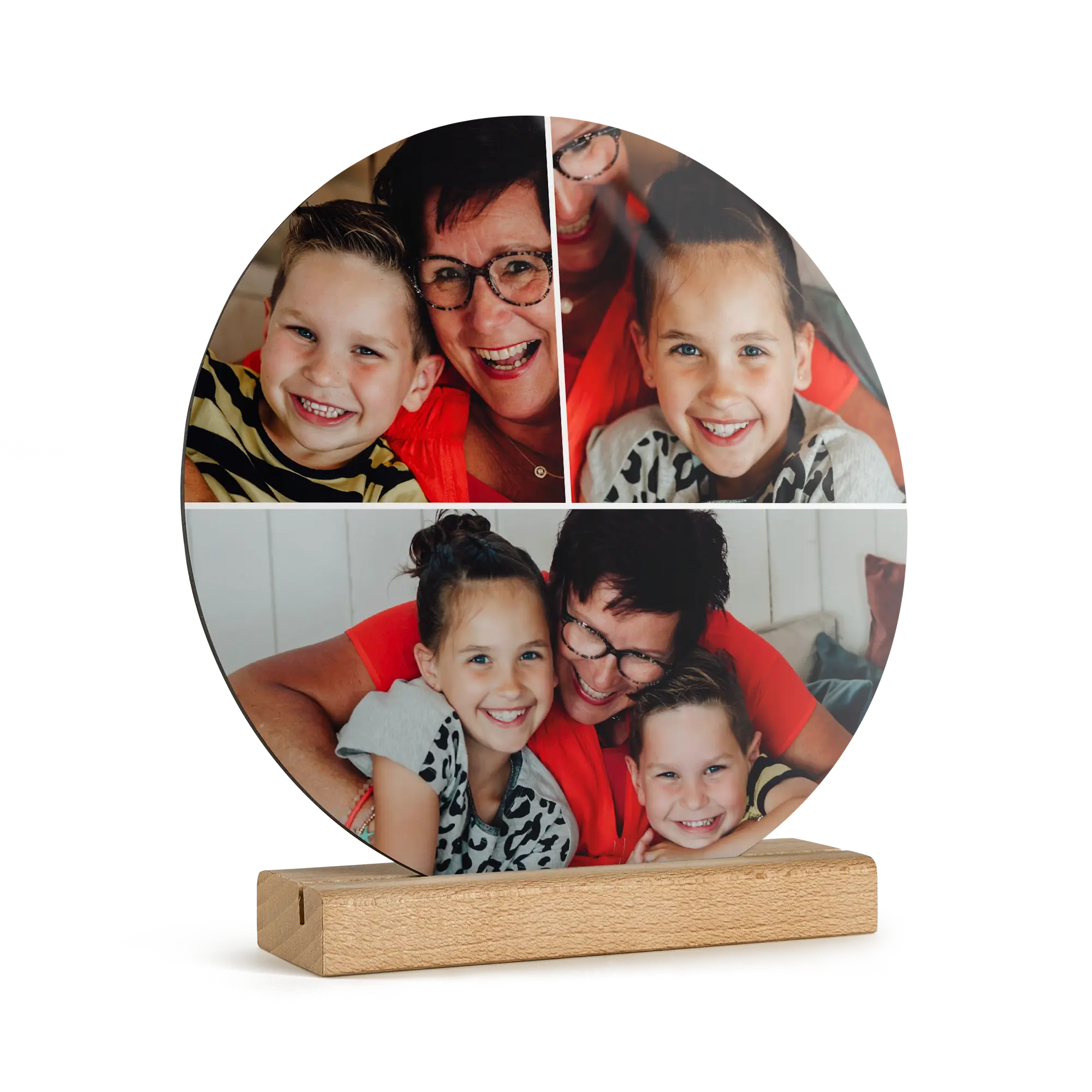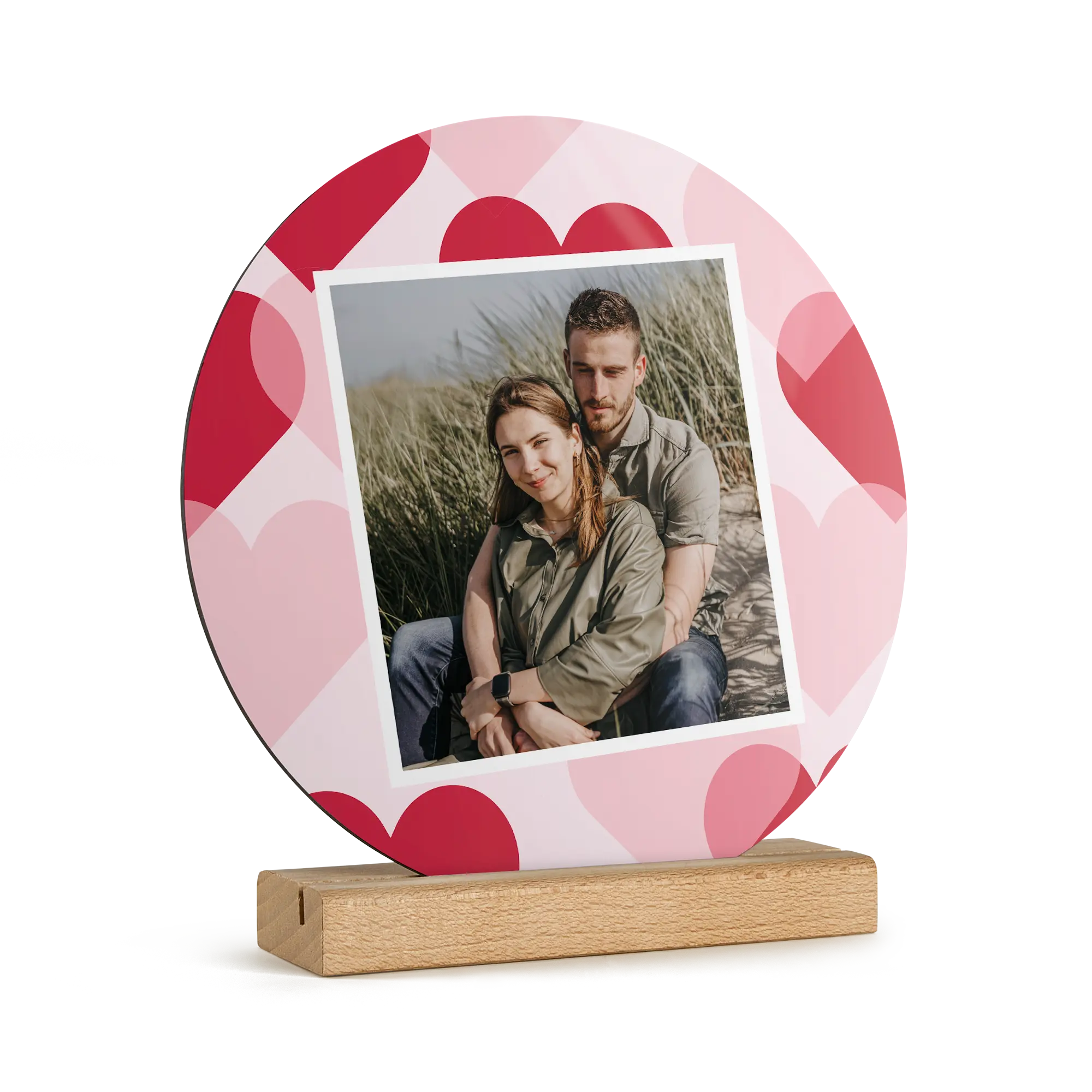 Plus d'informations sur le panneau en bois :Forme : carréMatériau : contreplaqué de haute qualitéFinition : revêtement brillantDimensions du panneau : 23 x 20 x 20 x 0,3 cmDimensions du support : 15 x 5 x 2 x 2 cmPersonnalisation : avec photo, texte et/ou logoImpression : en couleurs claires et nettes