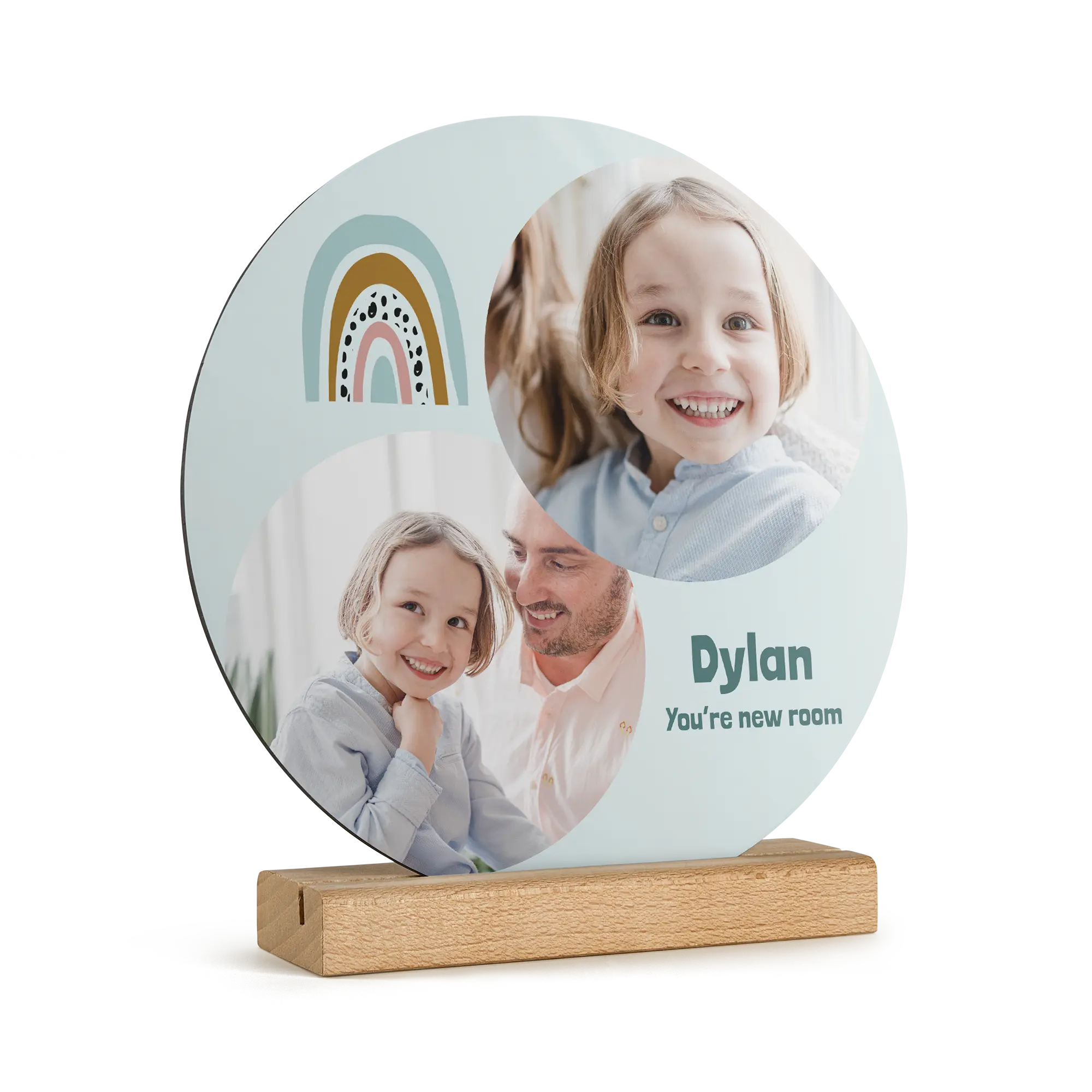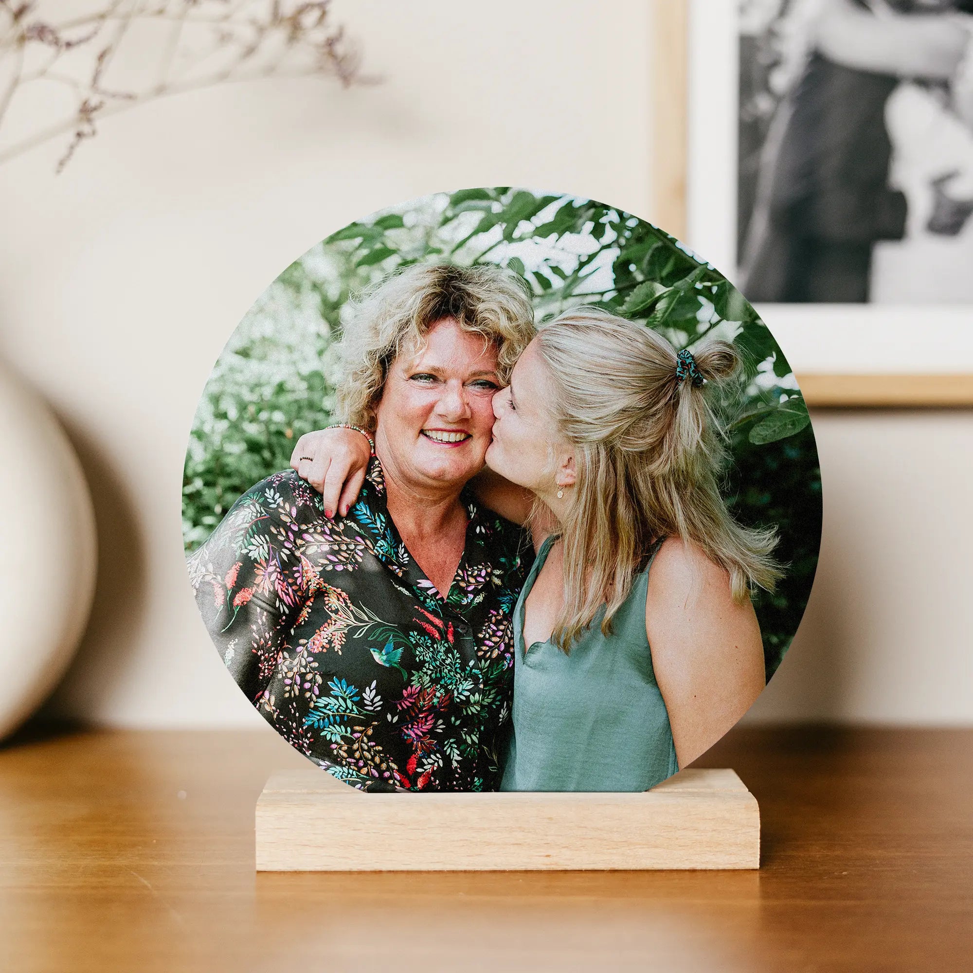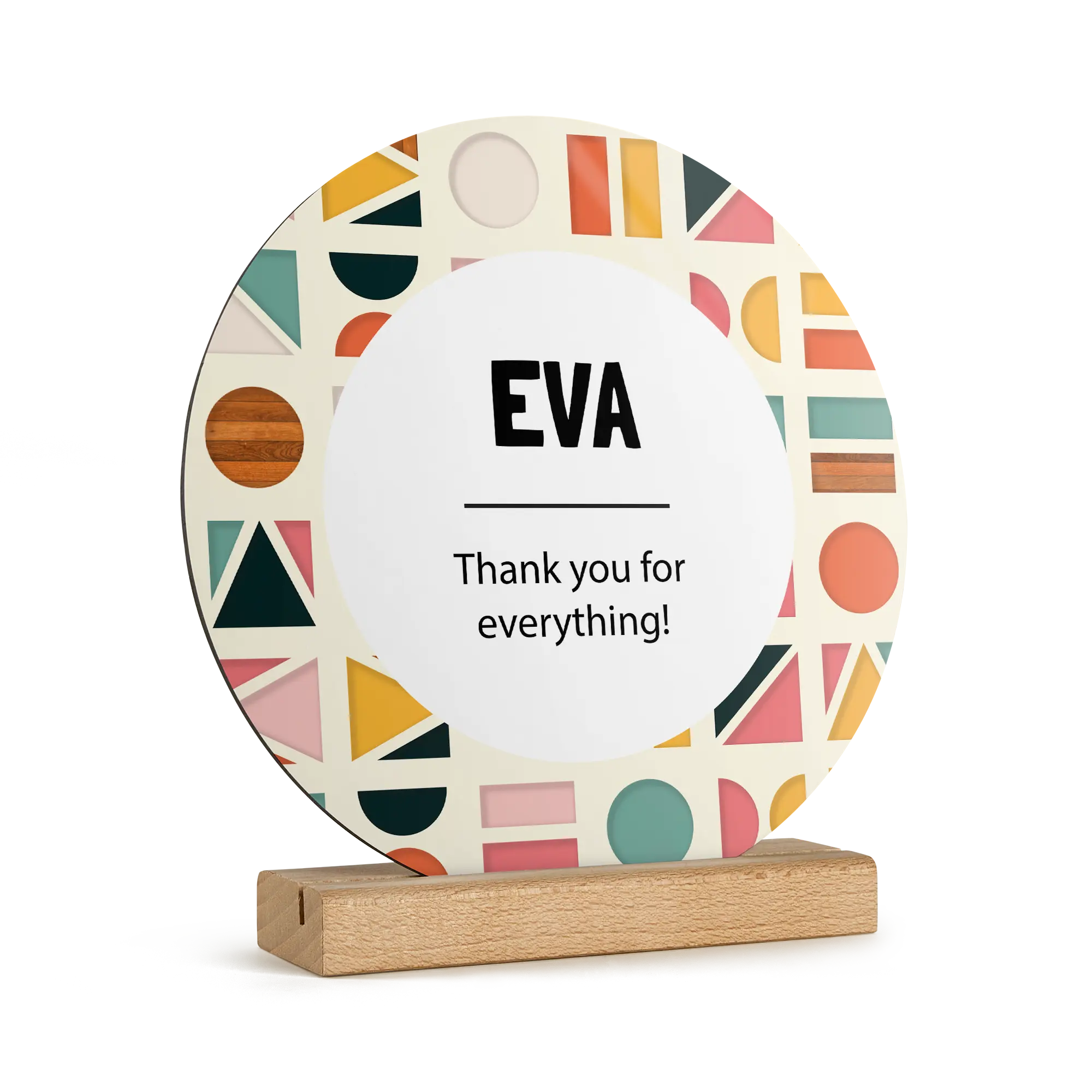 Plus d'informations sur le panneau en bois :Forme : carréMatériau : contreplaqué de haute qualitéFinition : revêtement brillantDimensions du panneau : 23 x 20 x 20 x 0,3 cmDimensions du support : 15 x 5 x 2 x 2 cmPersonnalisation : avec photo, texte et/ou logoImpression : en couleurs claires et nettes