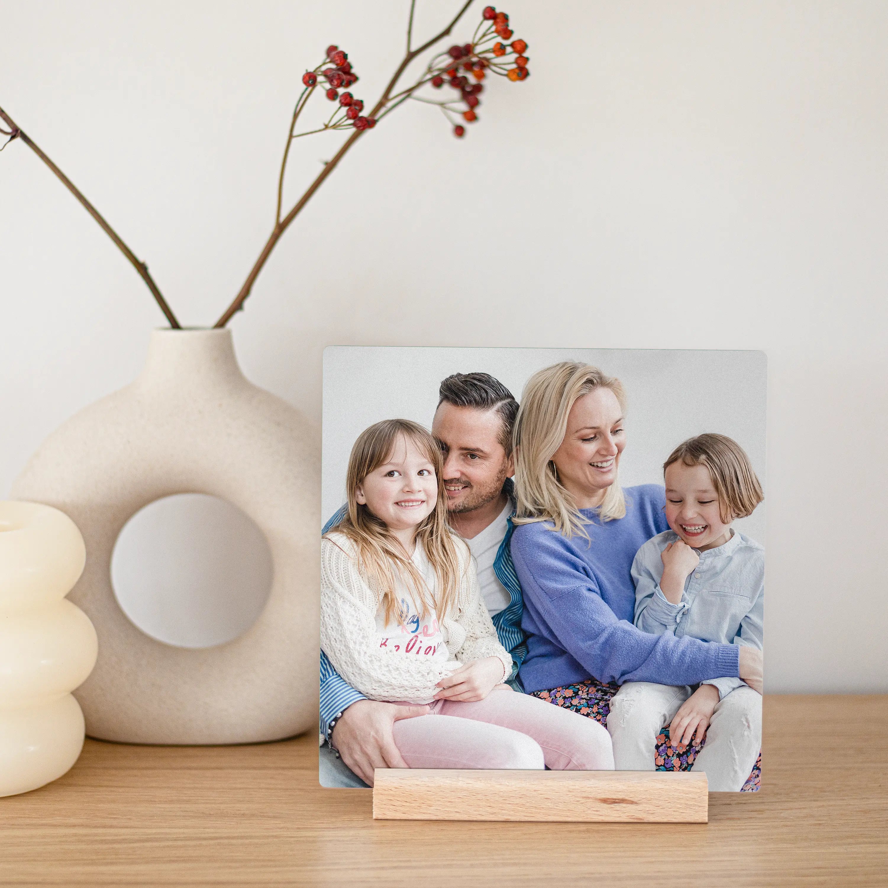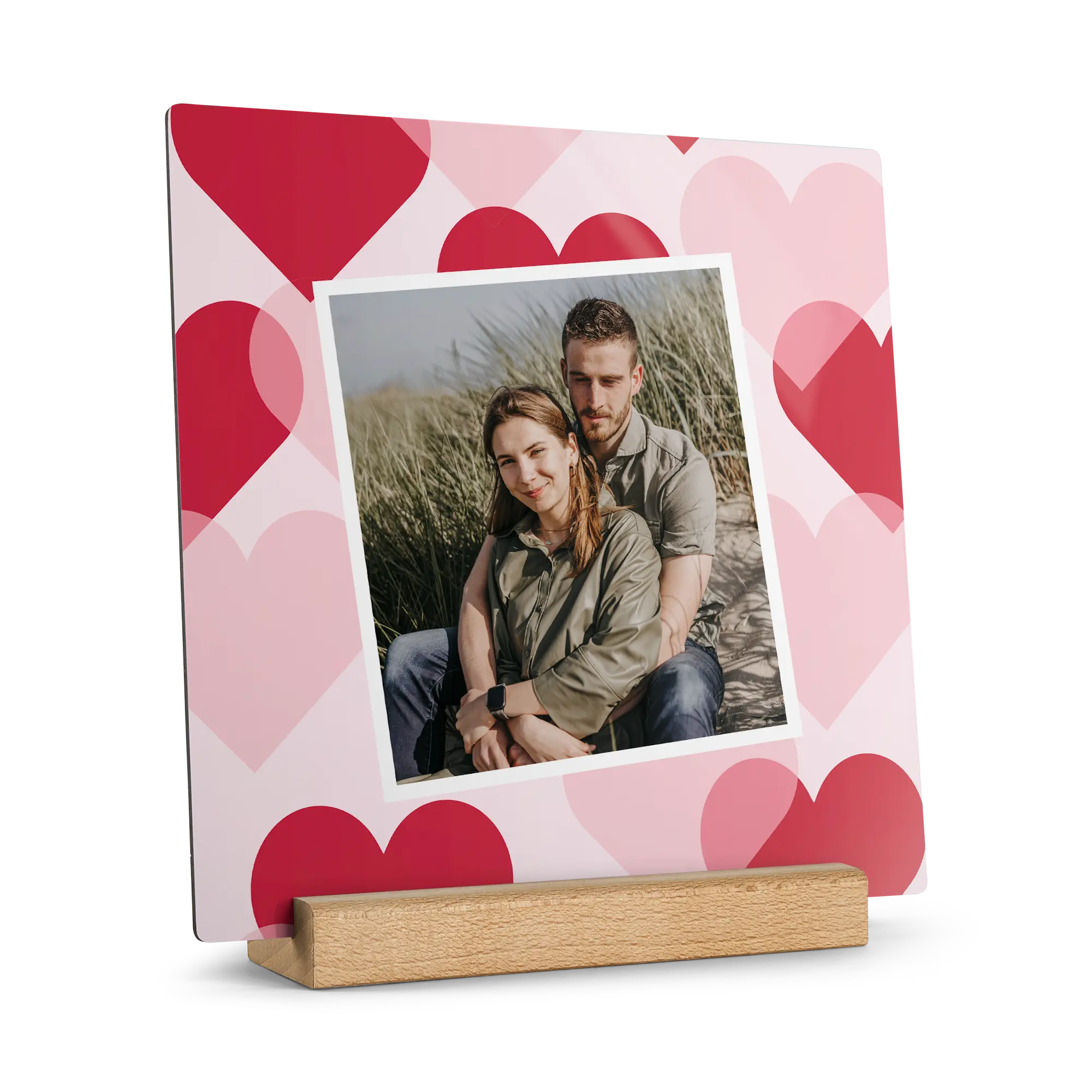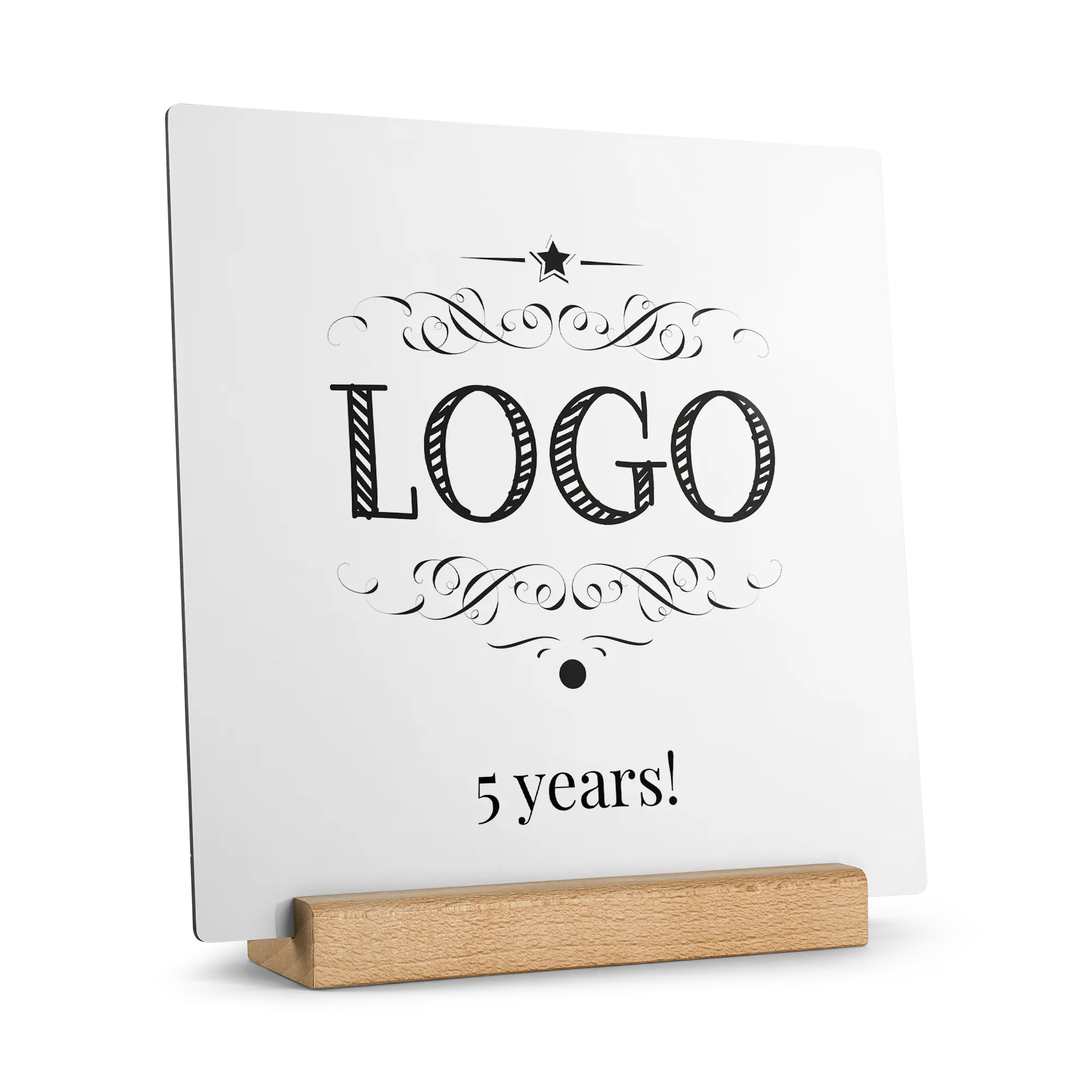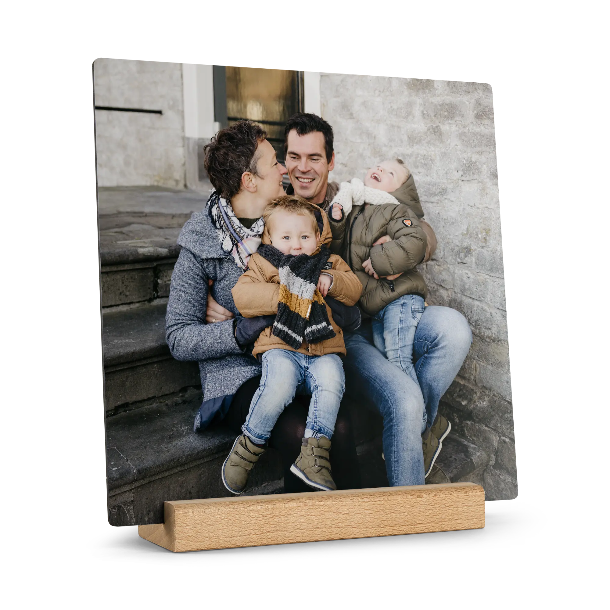 Plus d'informations sur le panneau en bois :Forme : carréMatériau : contreplaqué de haute qualitéFinition : revêtement brillantDimensions du panneau : 23 x 20 x 20 x 0,3 cmDimensions du support : 15 x 5 x 2 x 2 cmPersonnalisation : avec photo, texte et/ou logoImpression : en couleurs claires et nettes