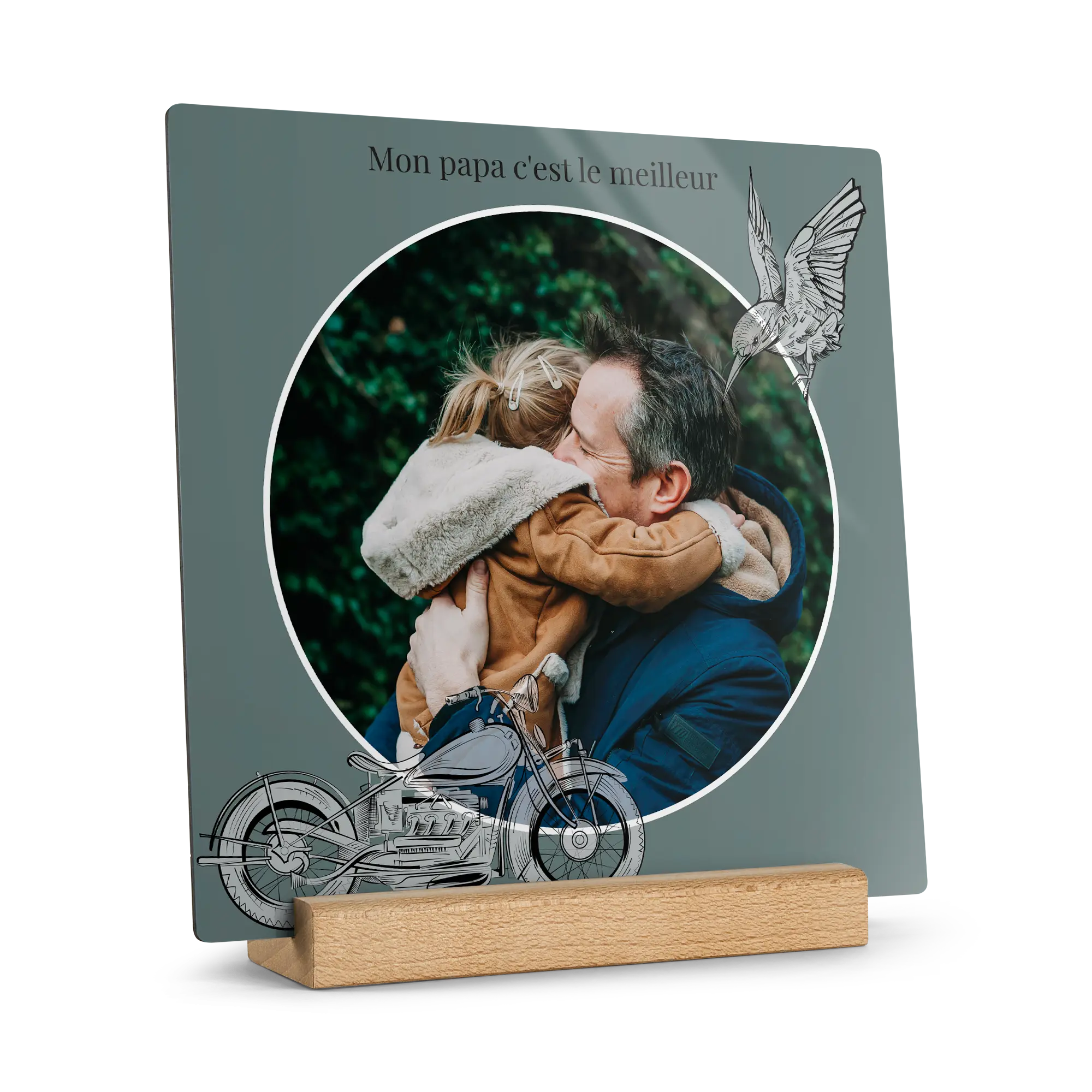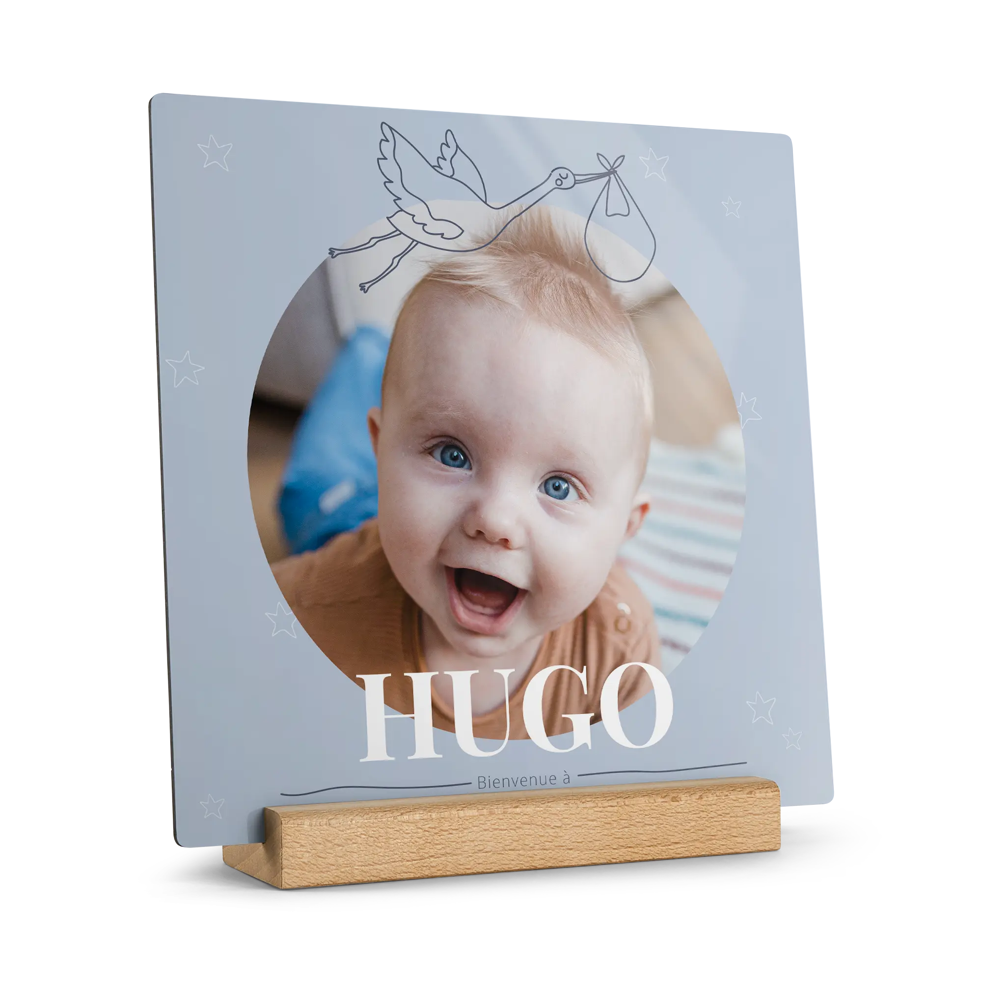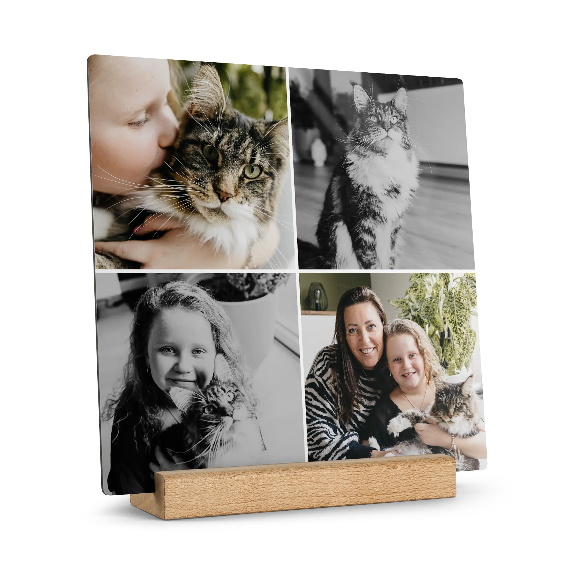 Plus d'informations sur le panneau en bois :Forme : carréMatériau : contreplaqué de haute qualitéFinition : revêtement brillantDimensions du panneau : 23 x 20 x 20 x 0,3 cmDimensions du support : 15 x 5 x 2 x 2 cmPersonnalisation : avec photo, texte et/ou logoImpression : en couleurs claires et nettes