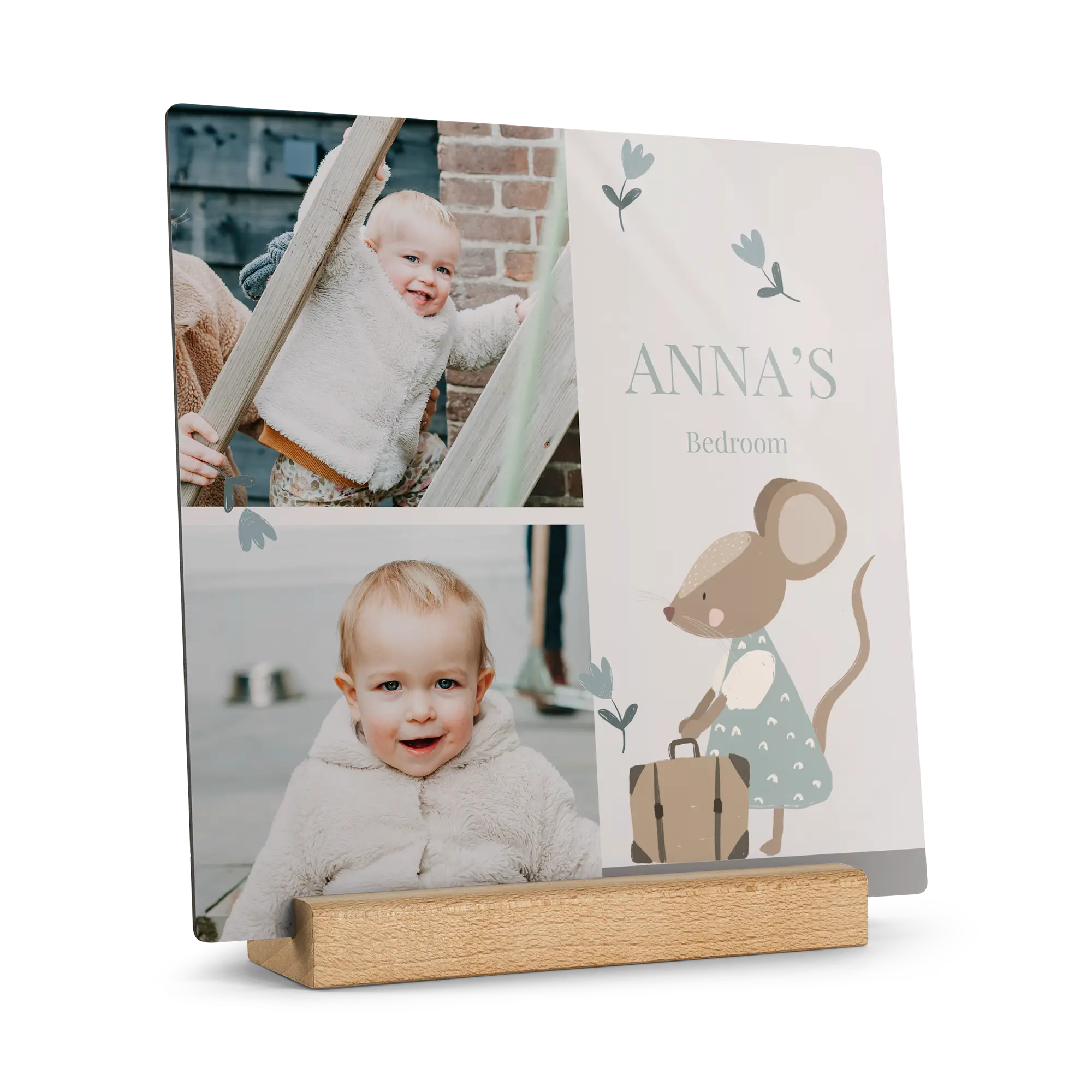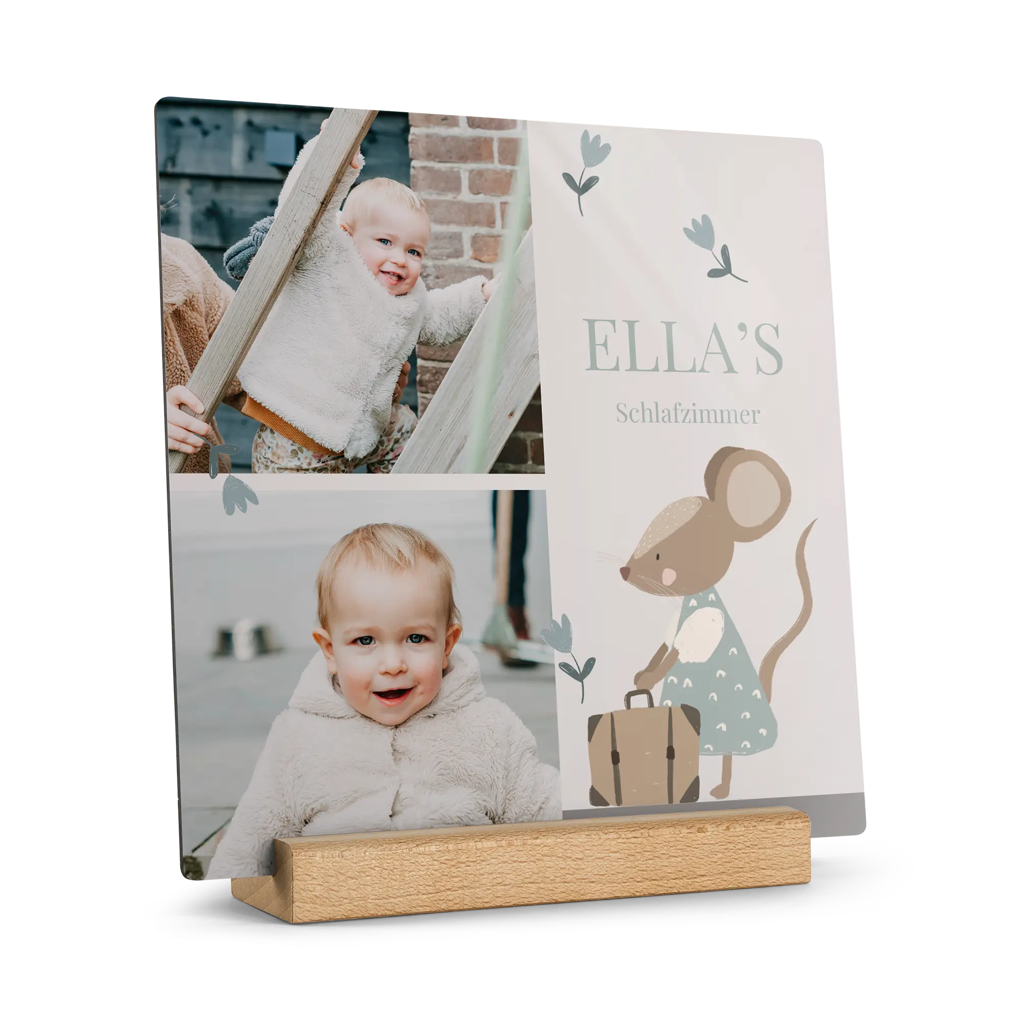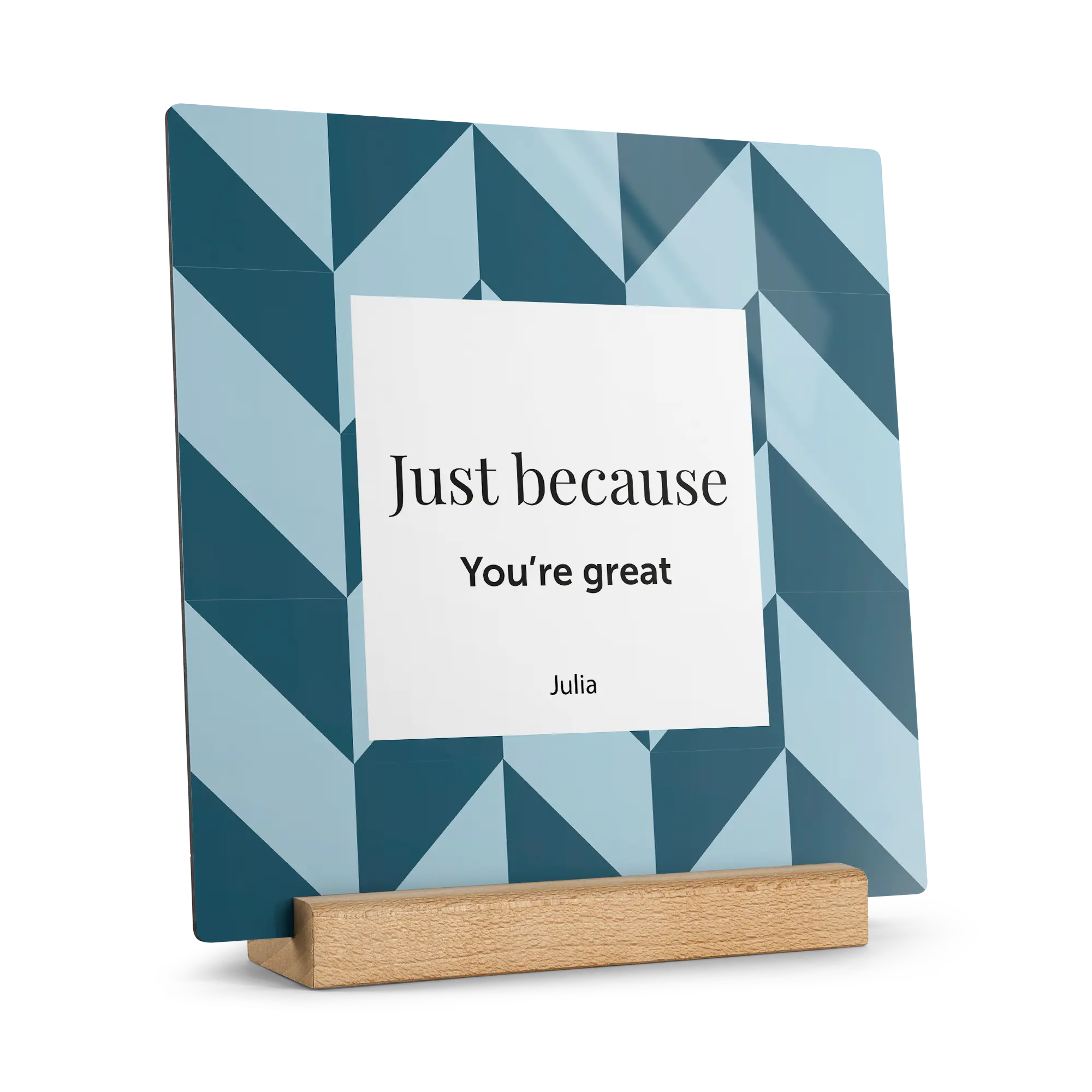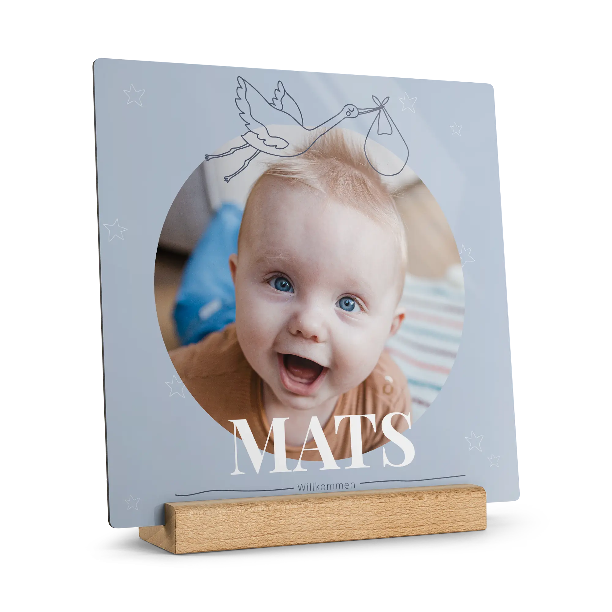 Plus d'informations sur le panneau en bois :Forme : carréMatériau : contreplaqué de haute qualitéFinition : revêtement brillantDimensions du panneau : 23 x 20 x 20 x 0,3 cmDimensions du support : 15 x 5 x 2 x 2 cmPersonnalisation : avec photo, texte et/ou logoImpression : en couleurs claires et nettes