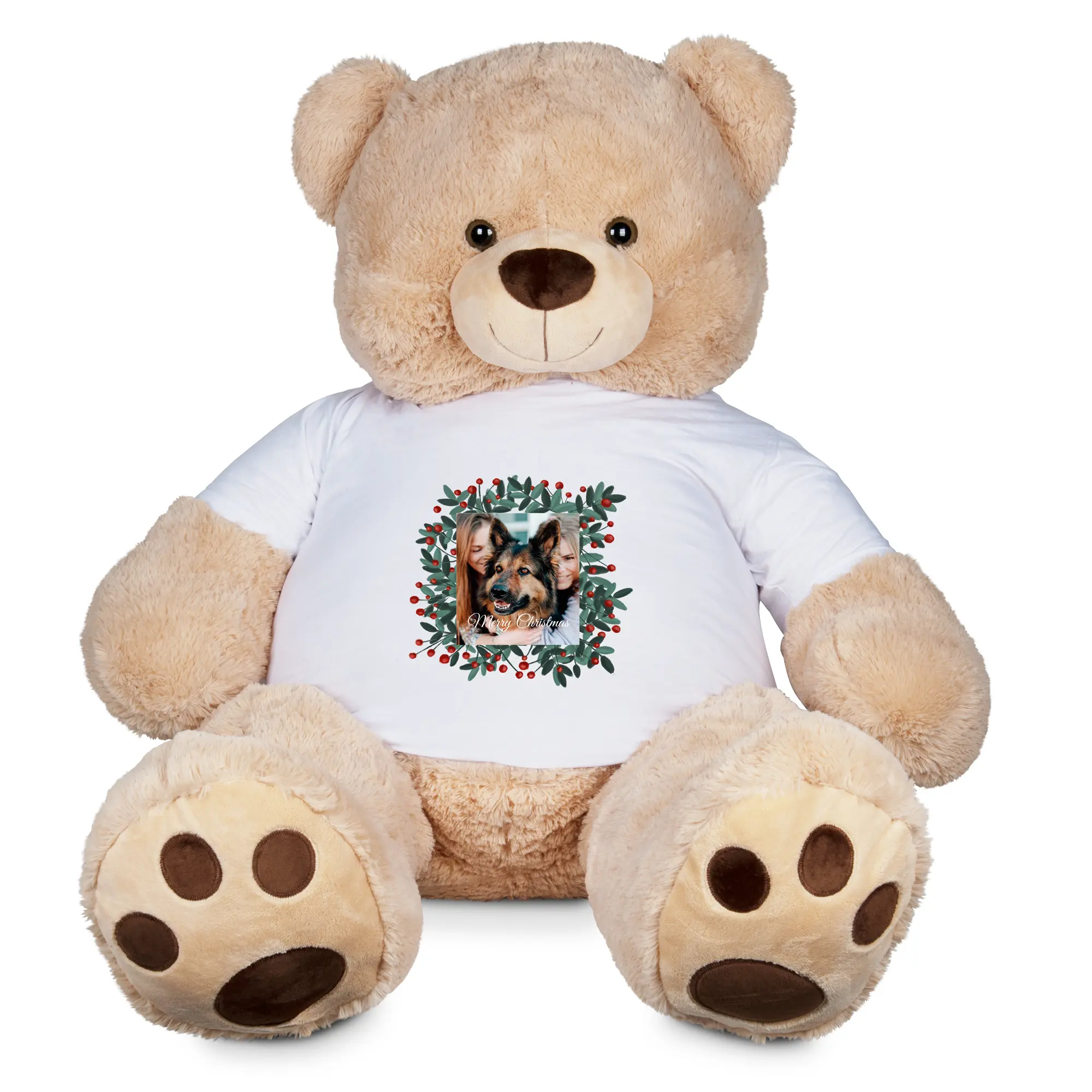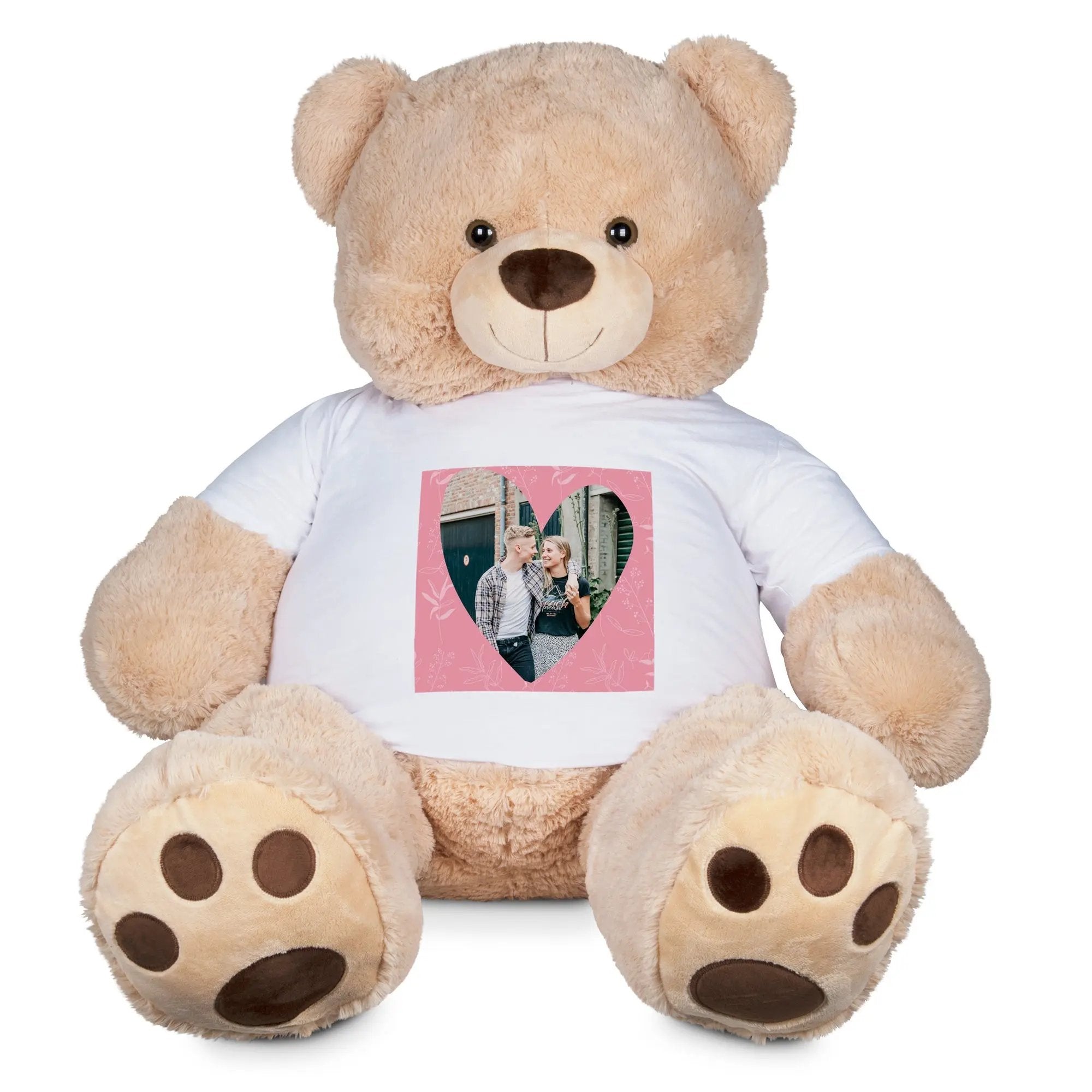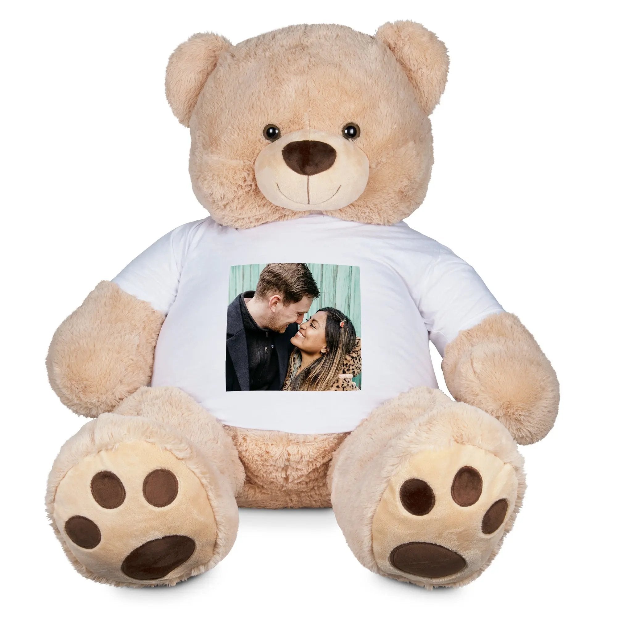 Commandez un ours géant et câlin avec un t-shirt imprimé ! Un cadeau doux et personnalisé !