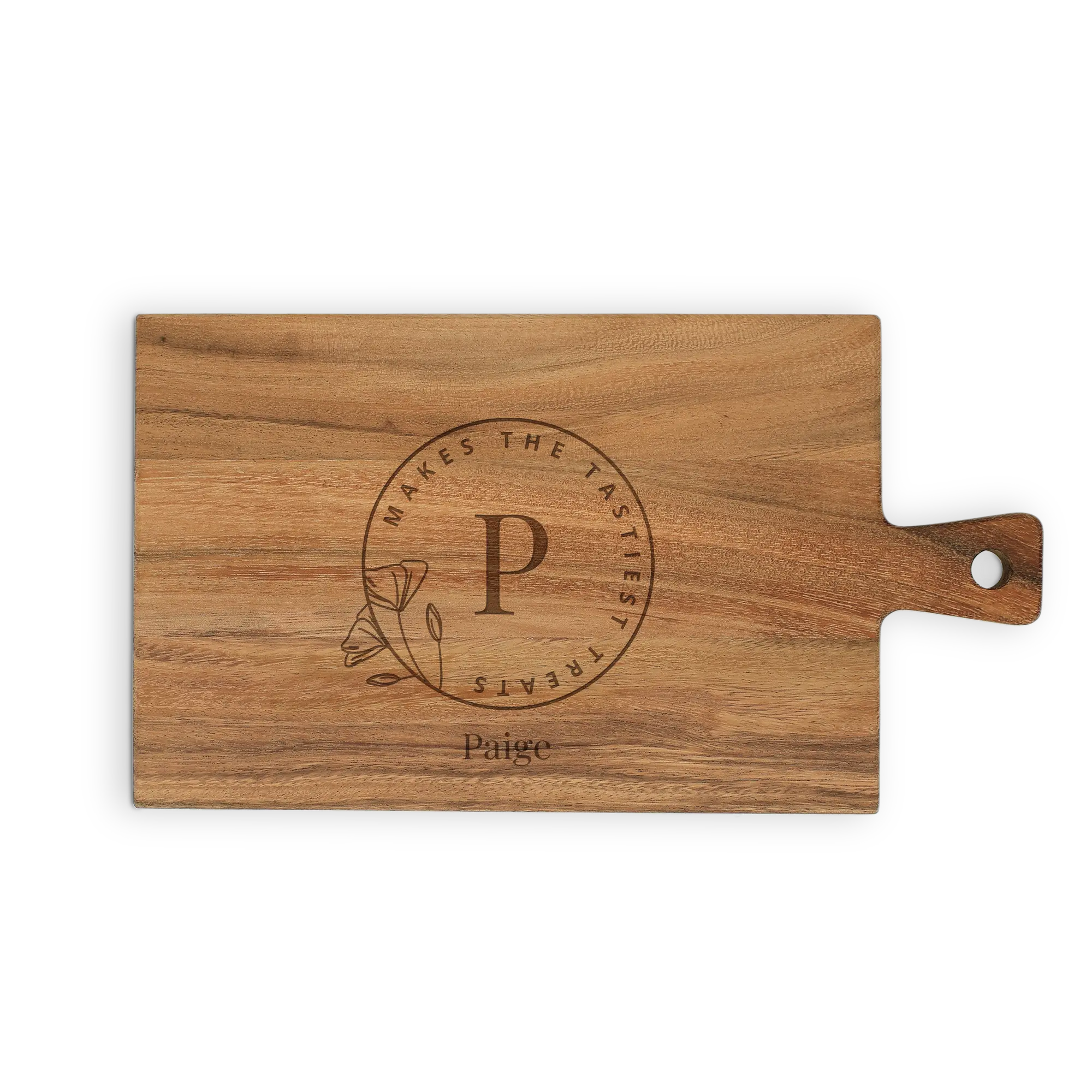 Créez un plateau de service en teck unique. Un cadeau personnel avec nom, texte et motifs. Dans différents formats !