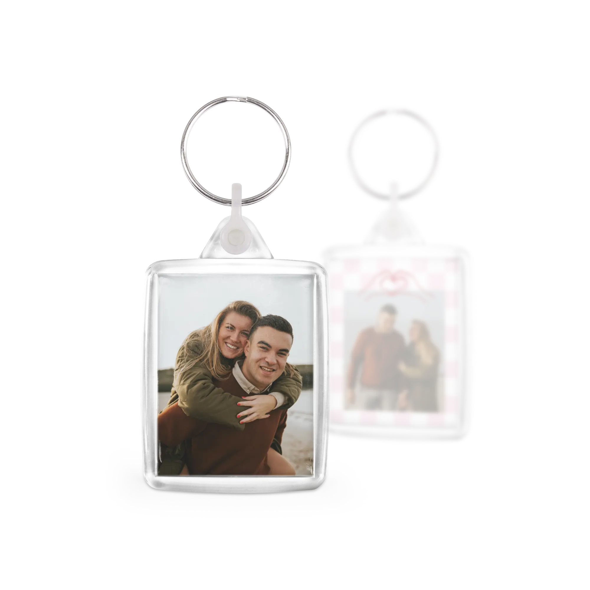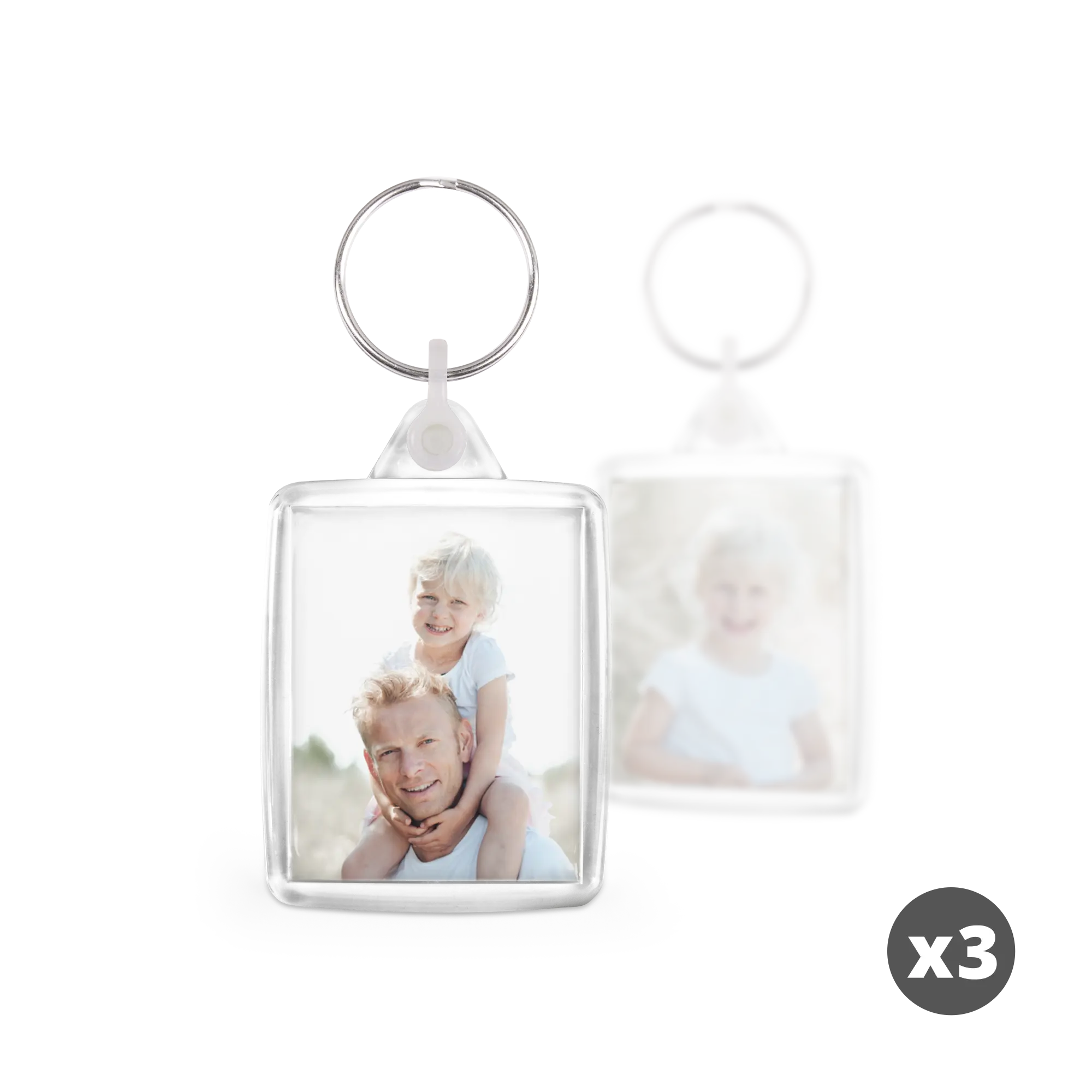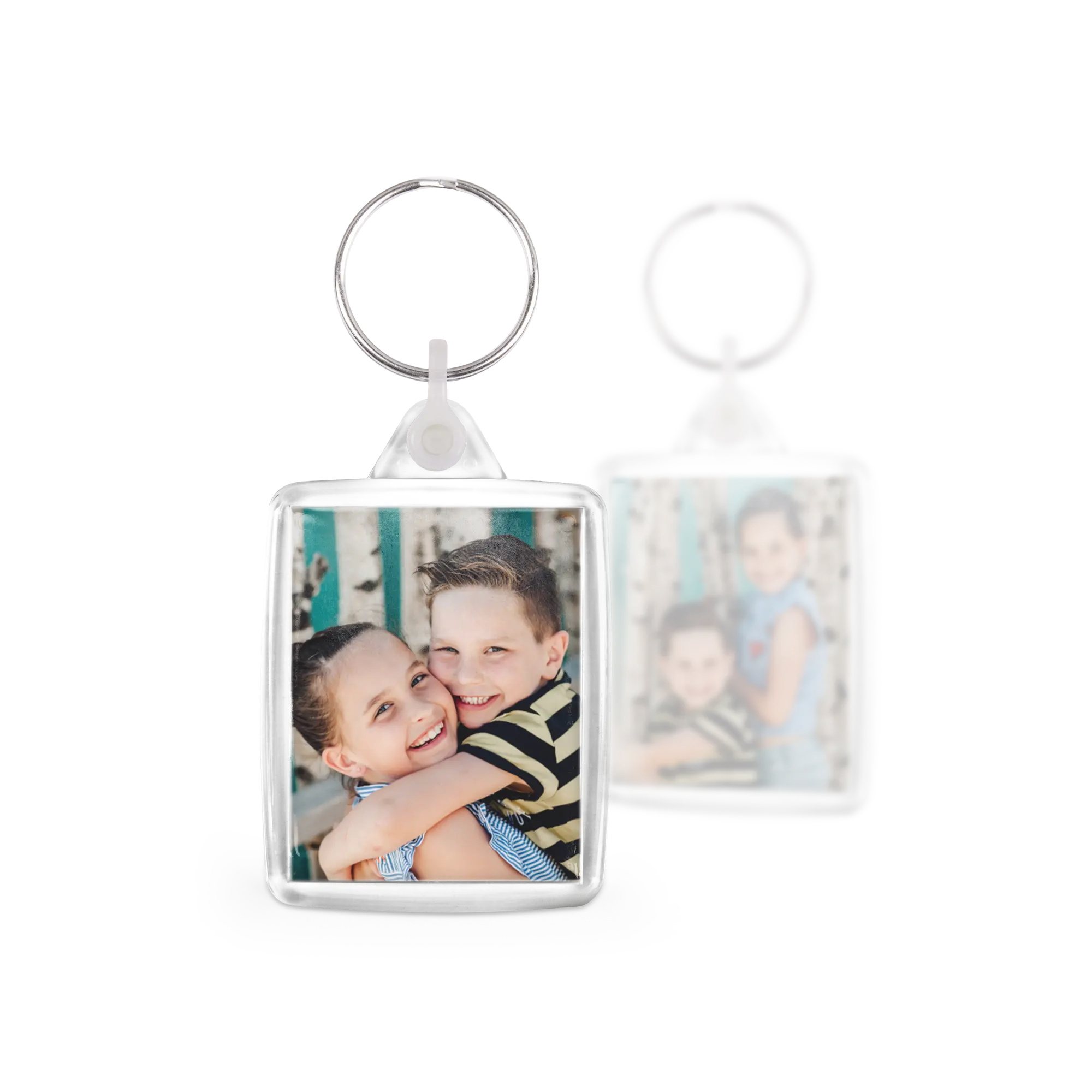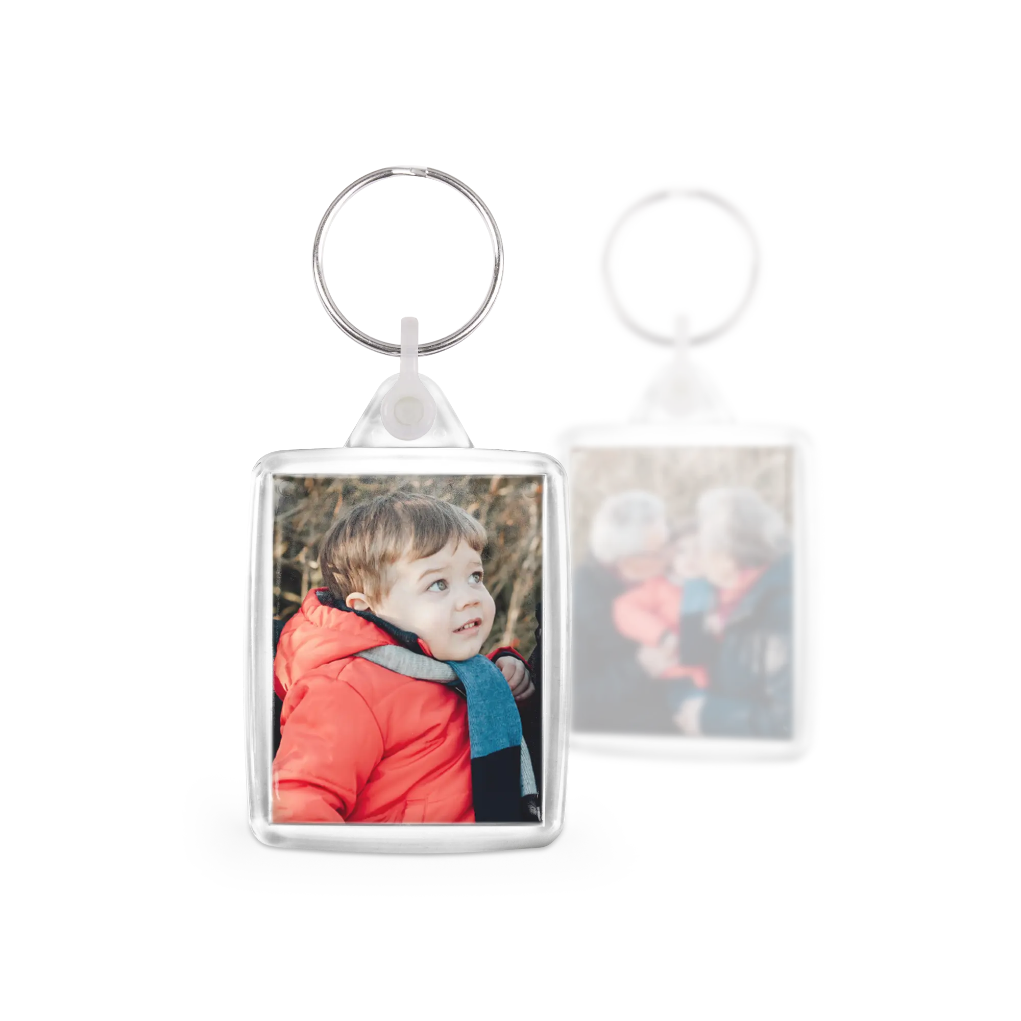 Porte-clés rectangulaires avec photo. Vos photos préférées affichées recto verso sur le porte-clés. Agréable à regarder et pratique aussi !