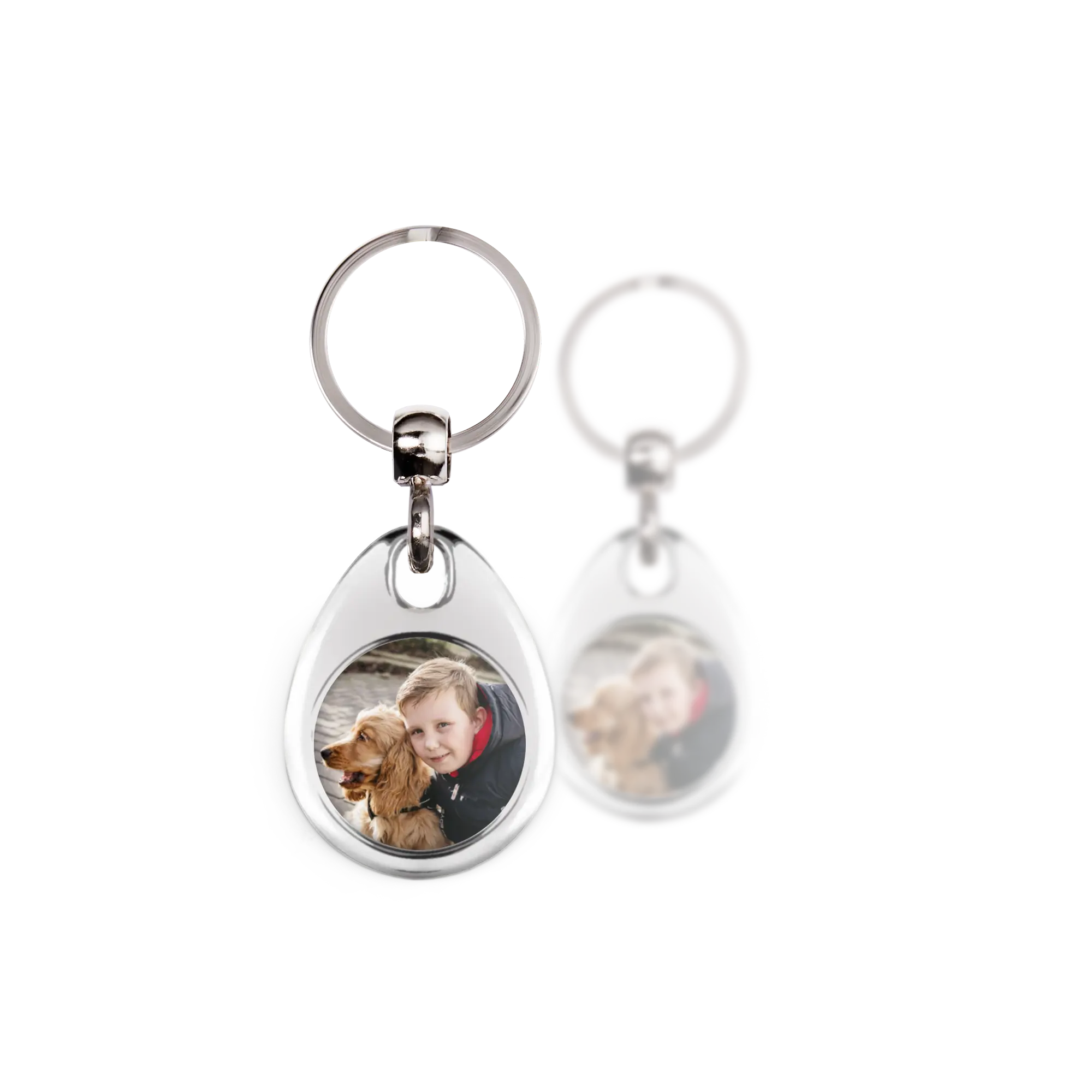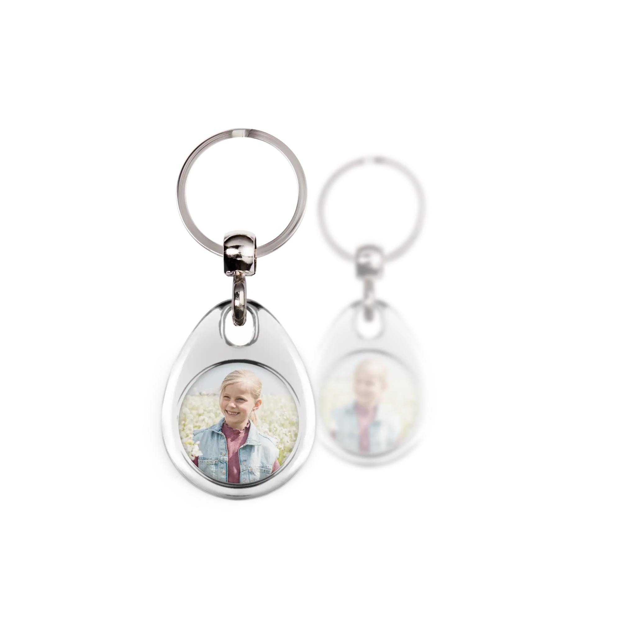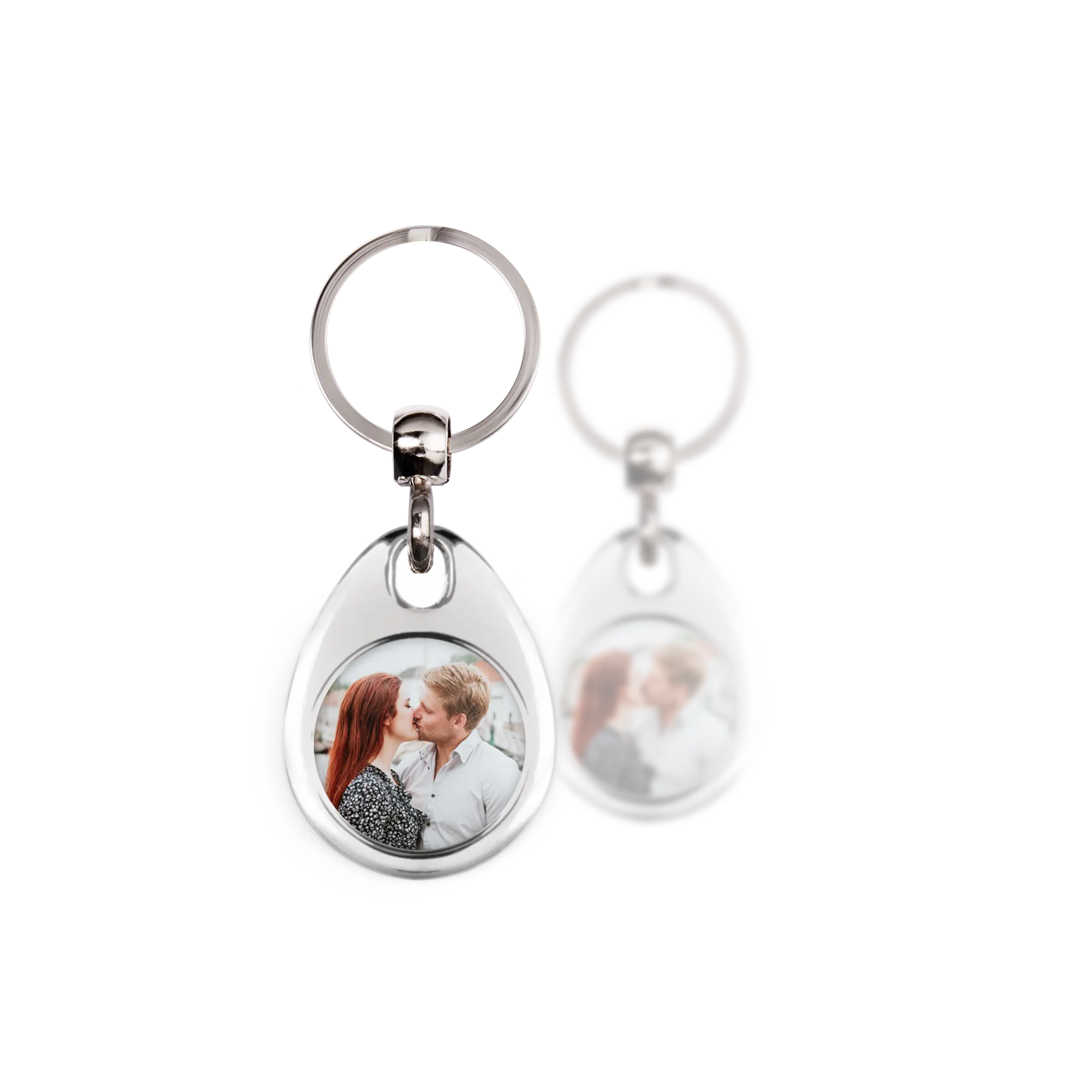 Porte-clés photo rond. Vos deux plus belles photos recto verso. Beau et pratique ! Plus d'informations sur le porte-clés photo recto verso : Forme : rond Matériau : acier inoxydable Personnalisation : photo recto verso sous plexiglas Dimensions : 4,5 x 3,2 x 1,5 cm Dimensions d'impression : 2,5 x 2,5 cm