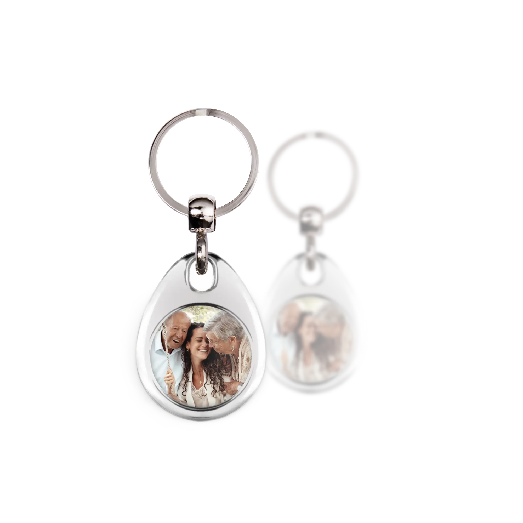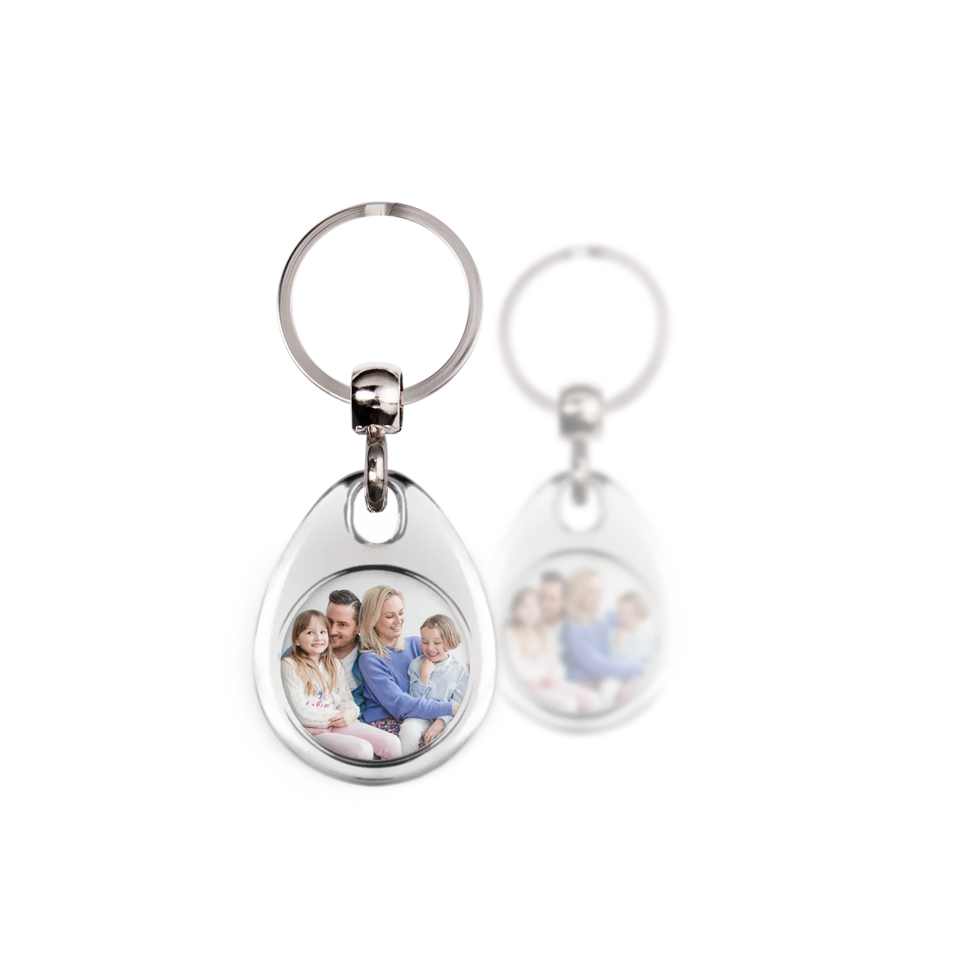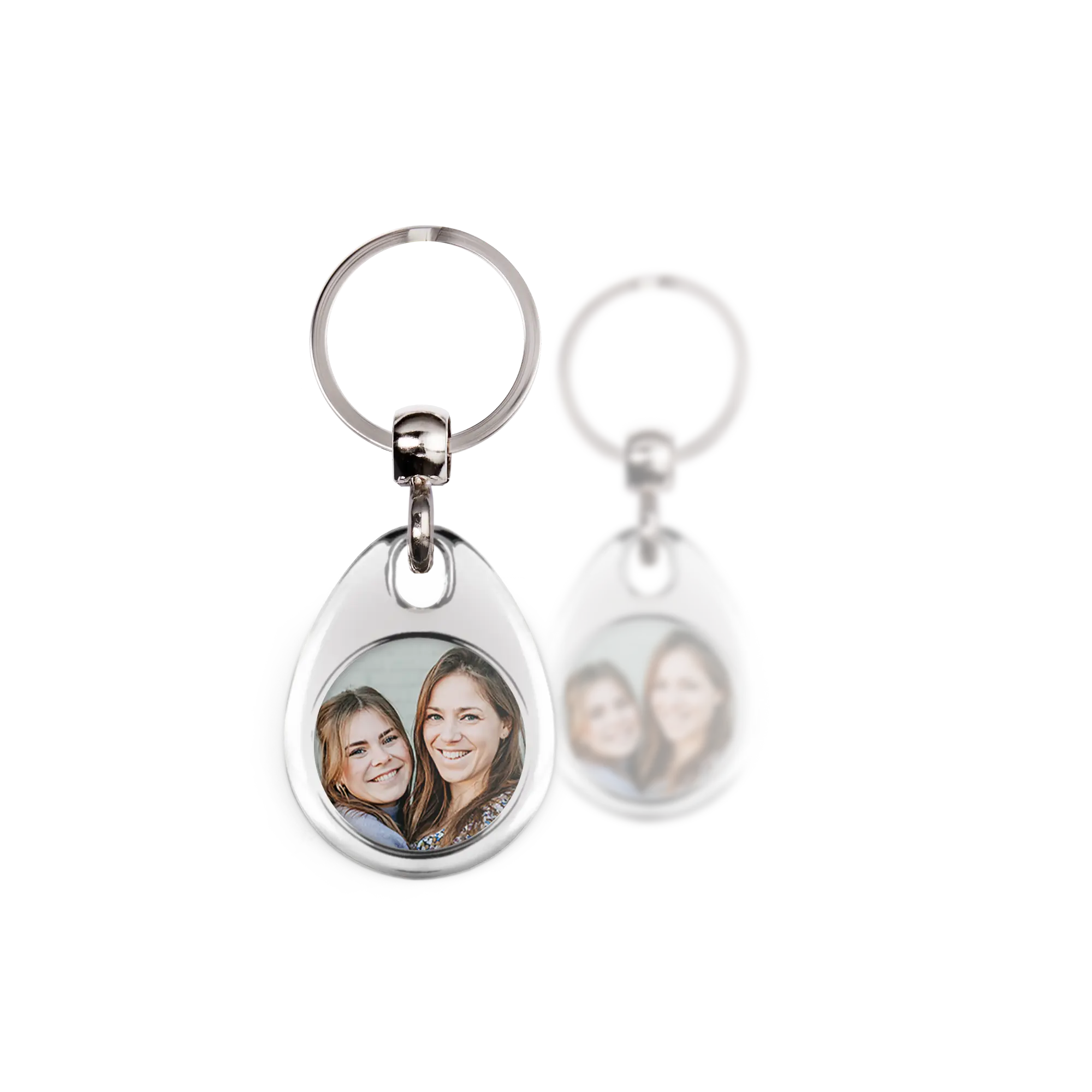 Porte-clés photo rond. Vos deux plus belles photos recto verso. Beau et pratique ! Plus d'informations sur le porte-clés photo recto verso : Forme : rond Matériau : acier inoxydable Personnalisation : photo recto verso sous plexiglas Dimensions : 4,5 x 3,2 x 1,5 cm Dimensions d'impression : 2,5 x 2,5 cm