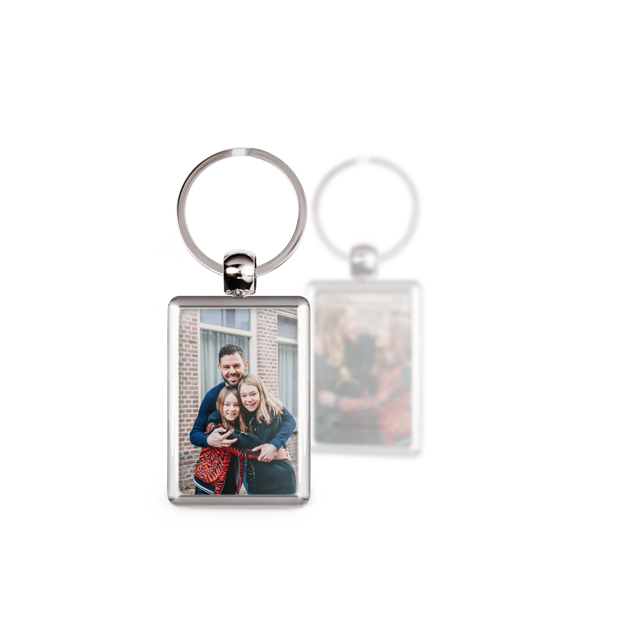 Plus d'informations sur le porte-clés : Forme : rectangulaire Matériau : acier inoxydable Dimensions : 8,3 x 5 cm (anneau inclus) Personnalisation : avec photo ou texte Dimensions de l'impression : 4 x 2,5 cm Nombre de photos : 2 Impression : parfaite et en couleur