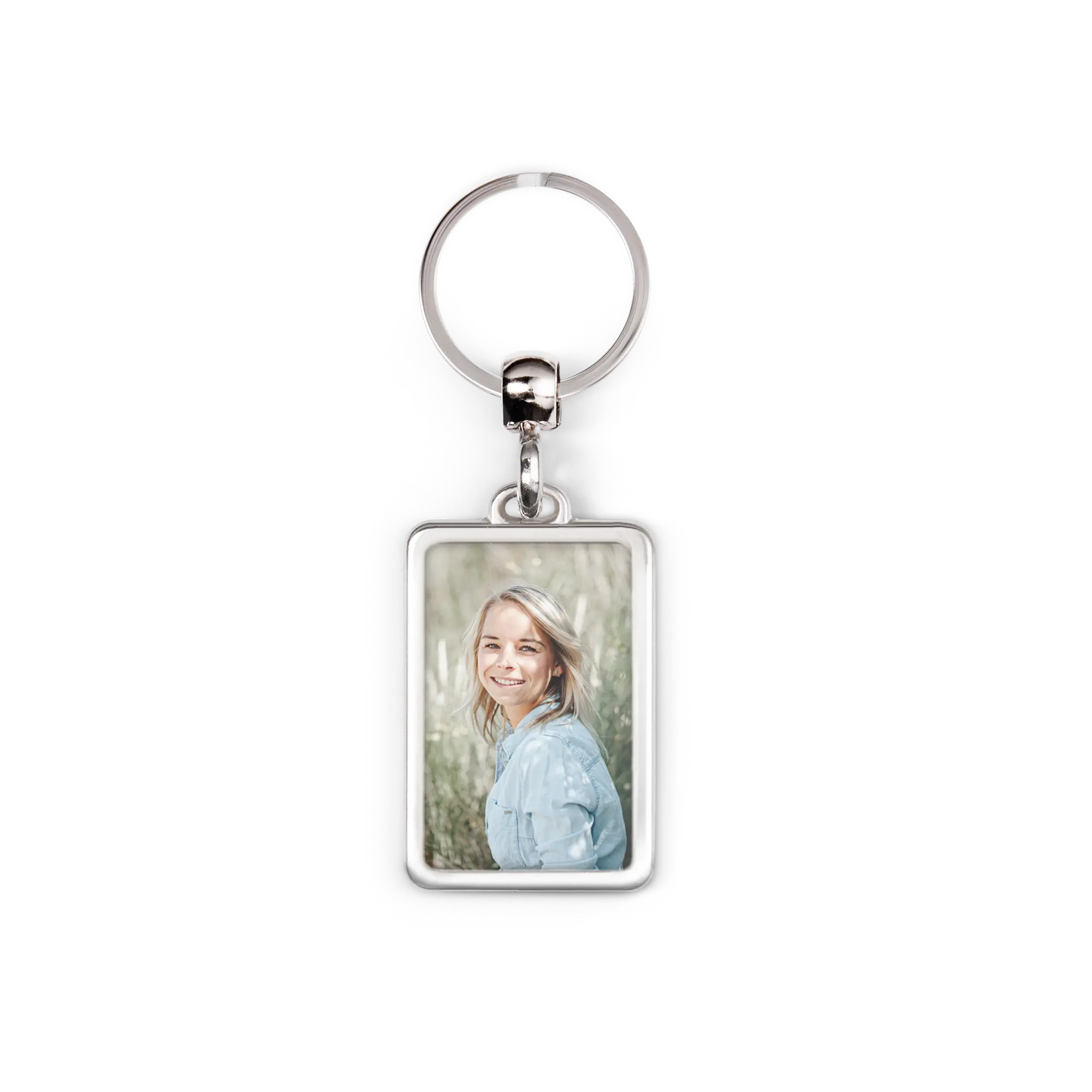 Un porte-clés rectangulaire imprimé avec votre propre photo, logo ou image unique !