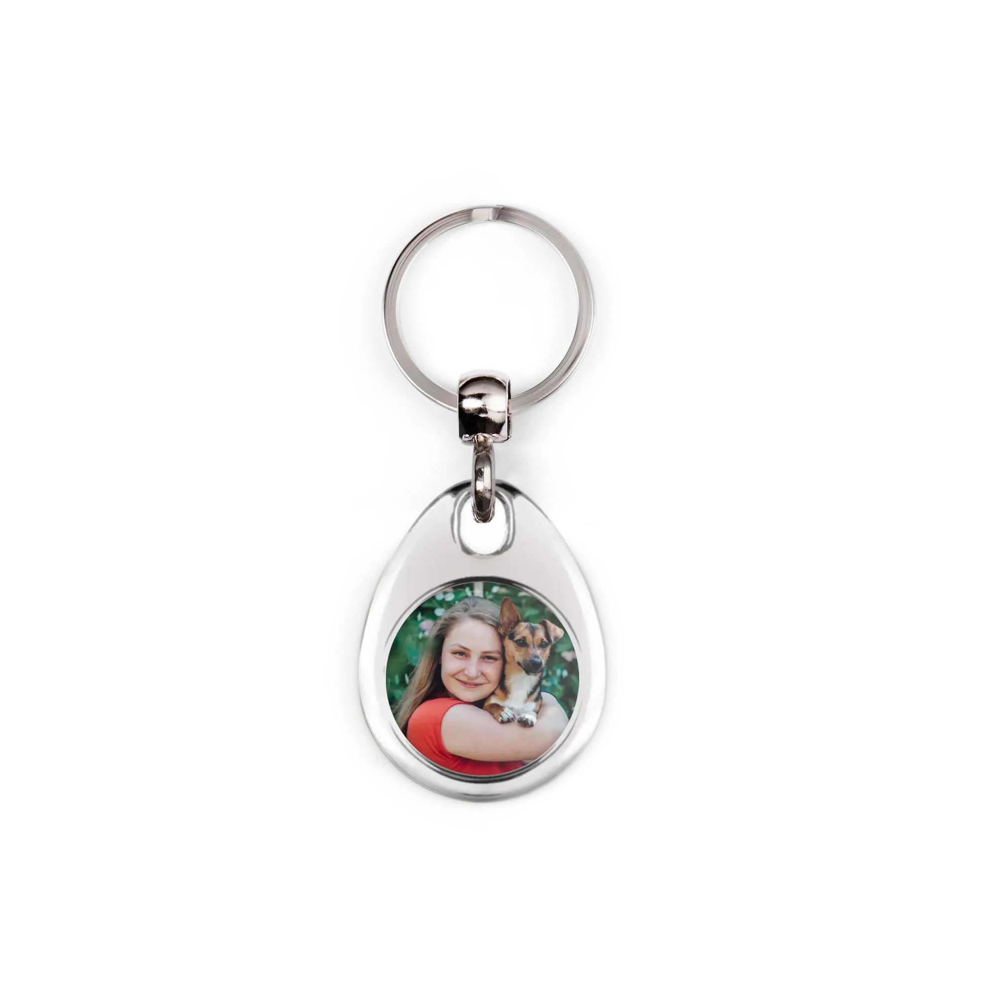 Un porte-clés rond imprimé avec votre propre photo, logo ou image unique !