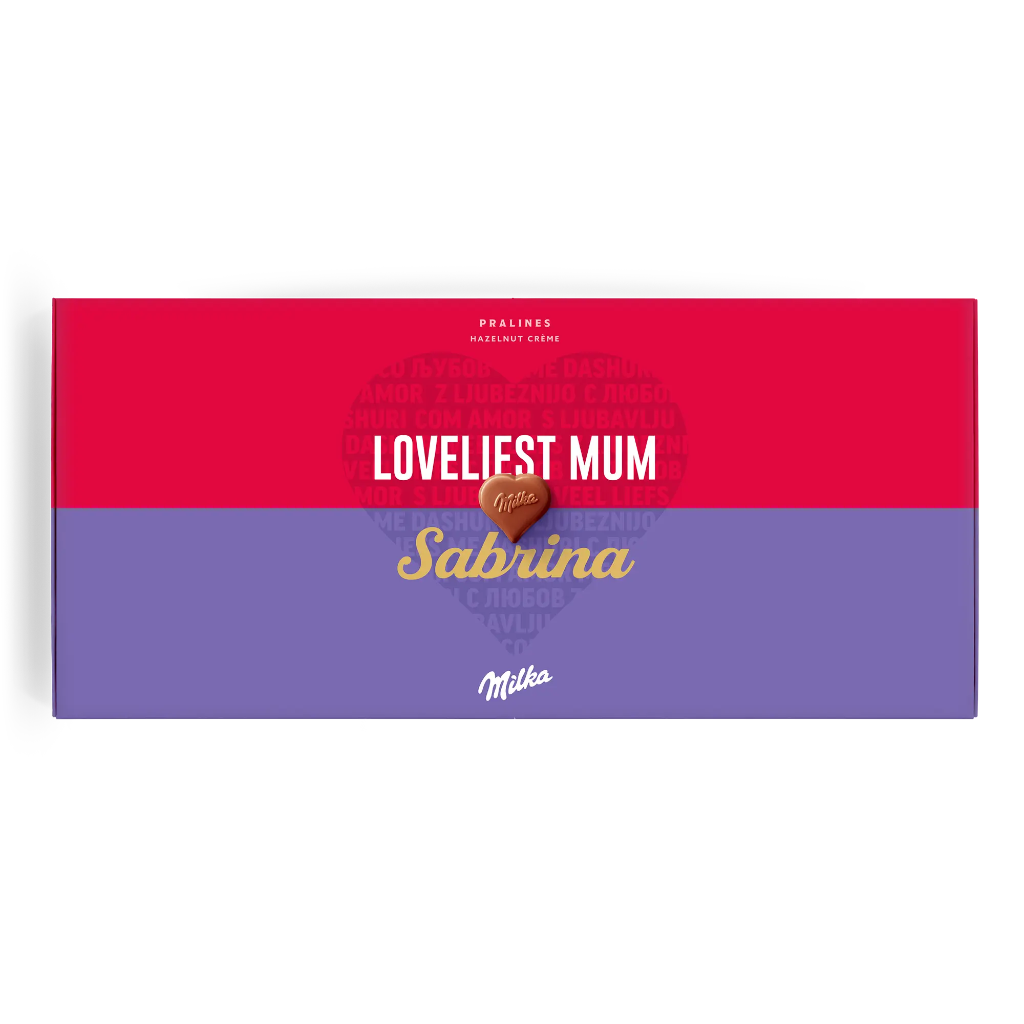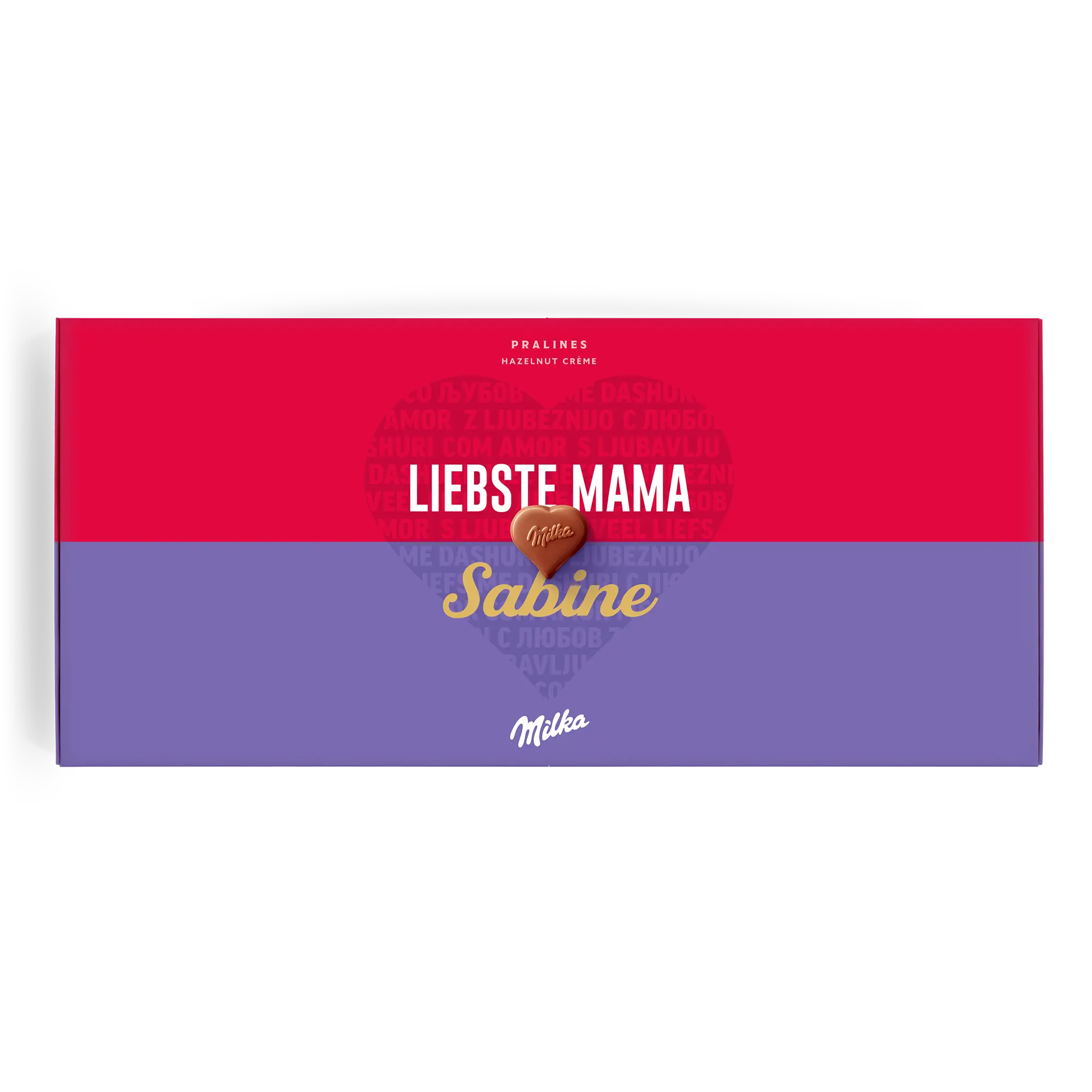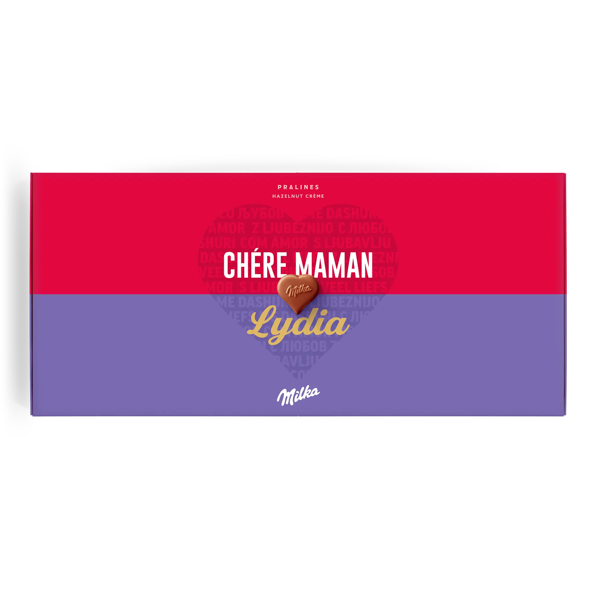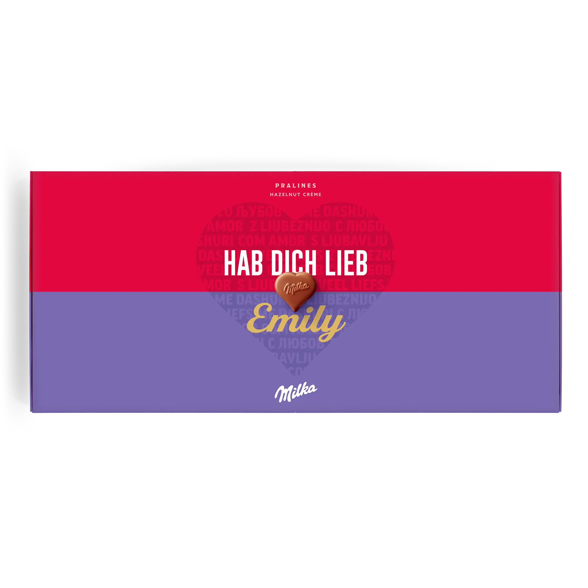 Coffret spécial Dites-le avec Milka pour votre amoureux. De délicieuses pralines avec nom, photo et un message romantique. Surprenez l'être cher !