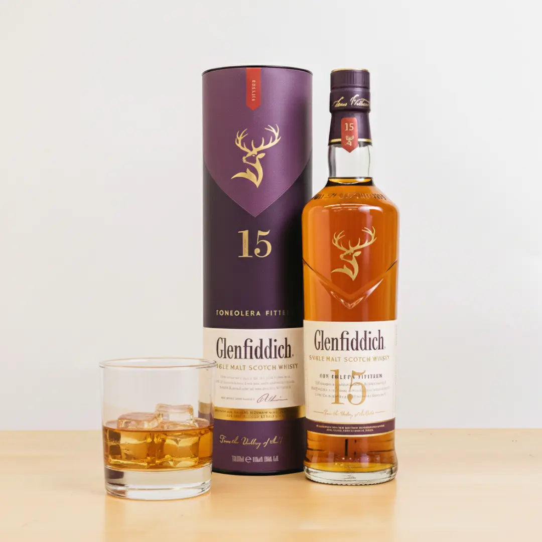 Whisky écossais single malt de 15 ans d'âge, une bouteille distinguée qui représente la plus belle expression de son terroir, offrant une expérience de dégustation riche et complexe.