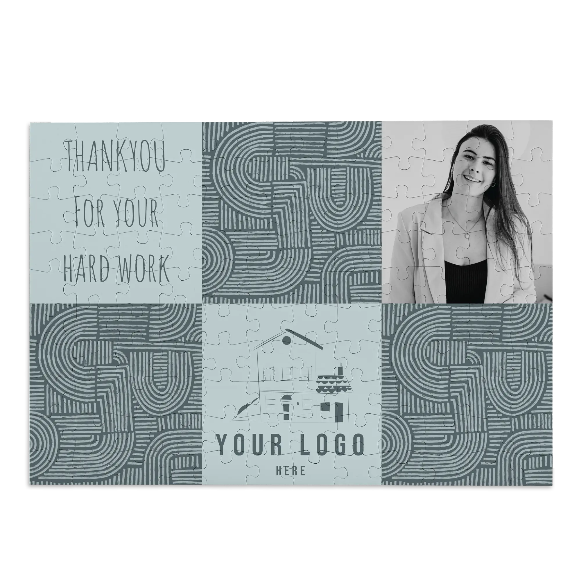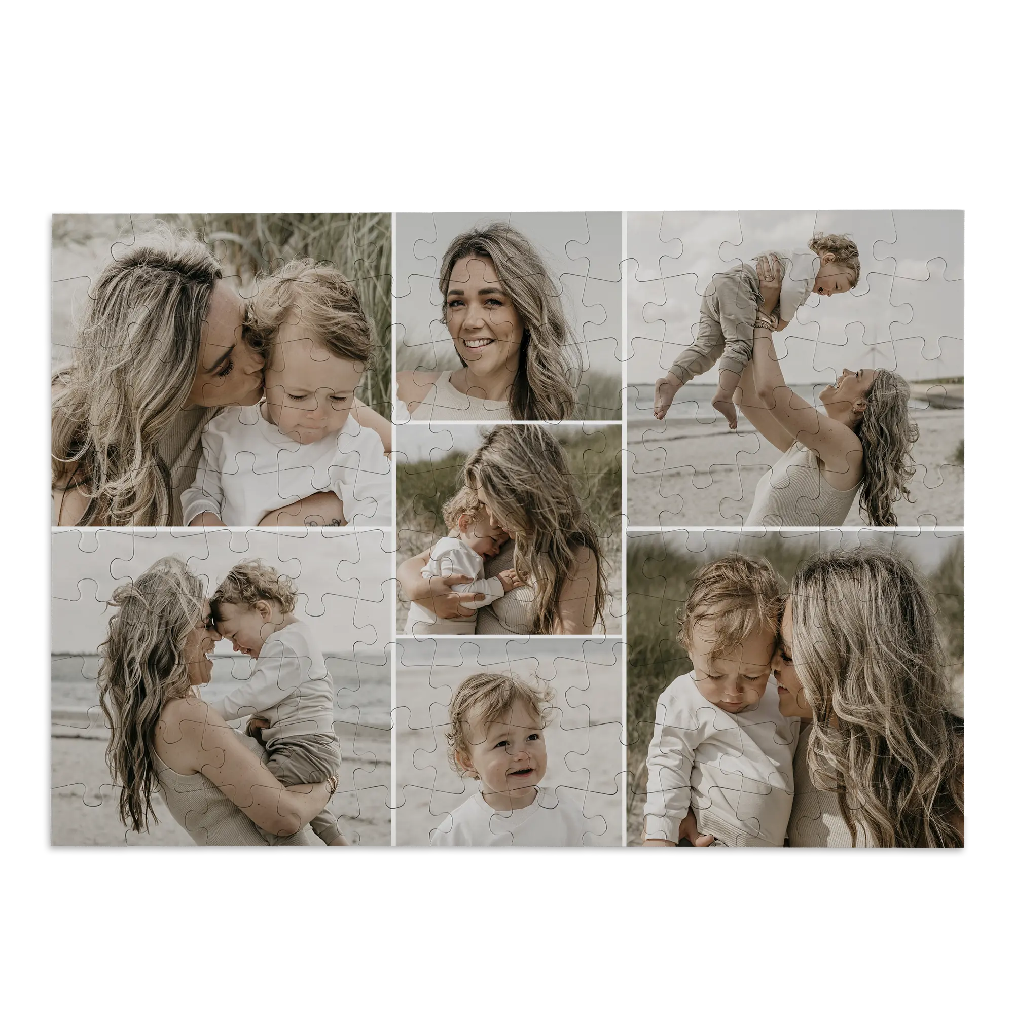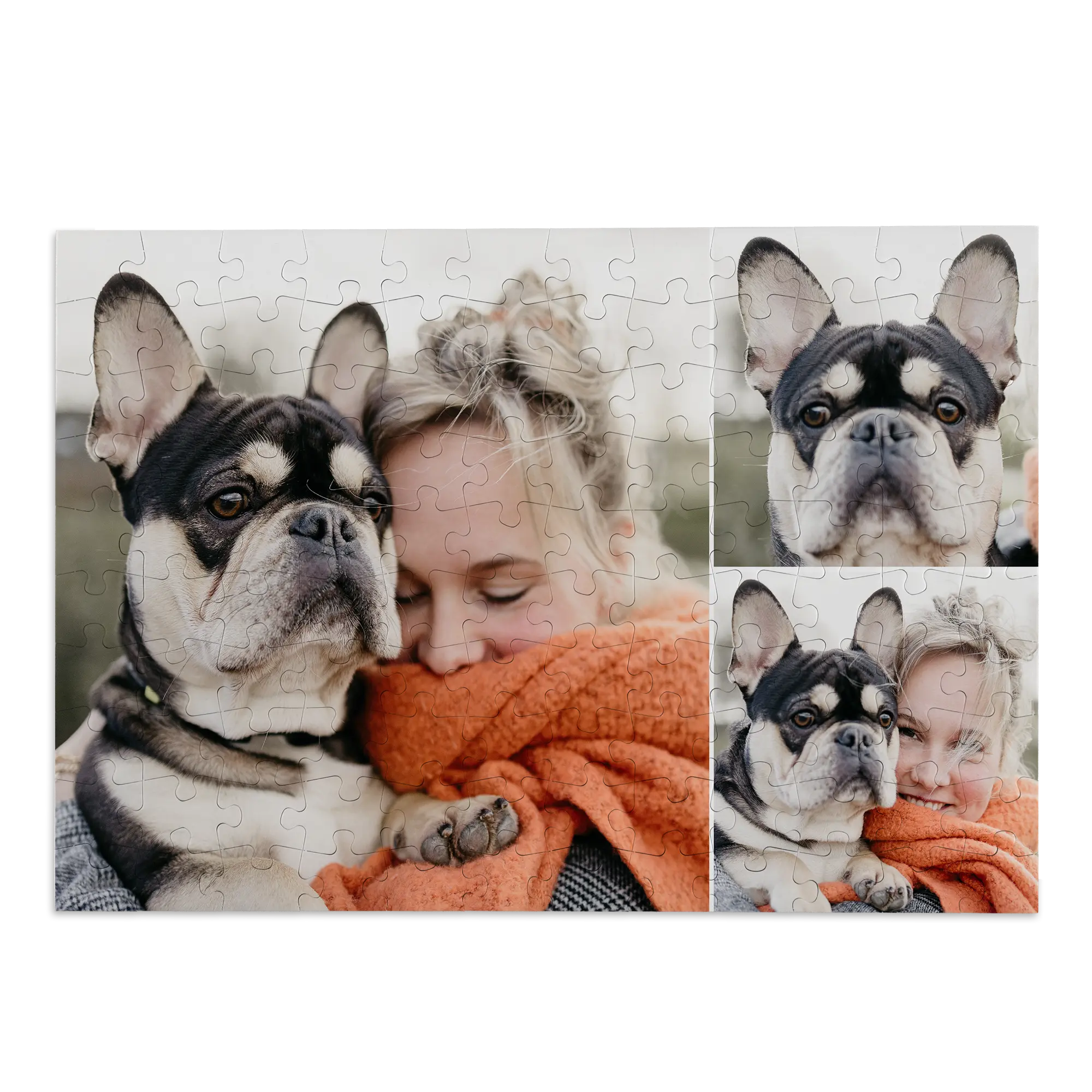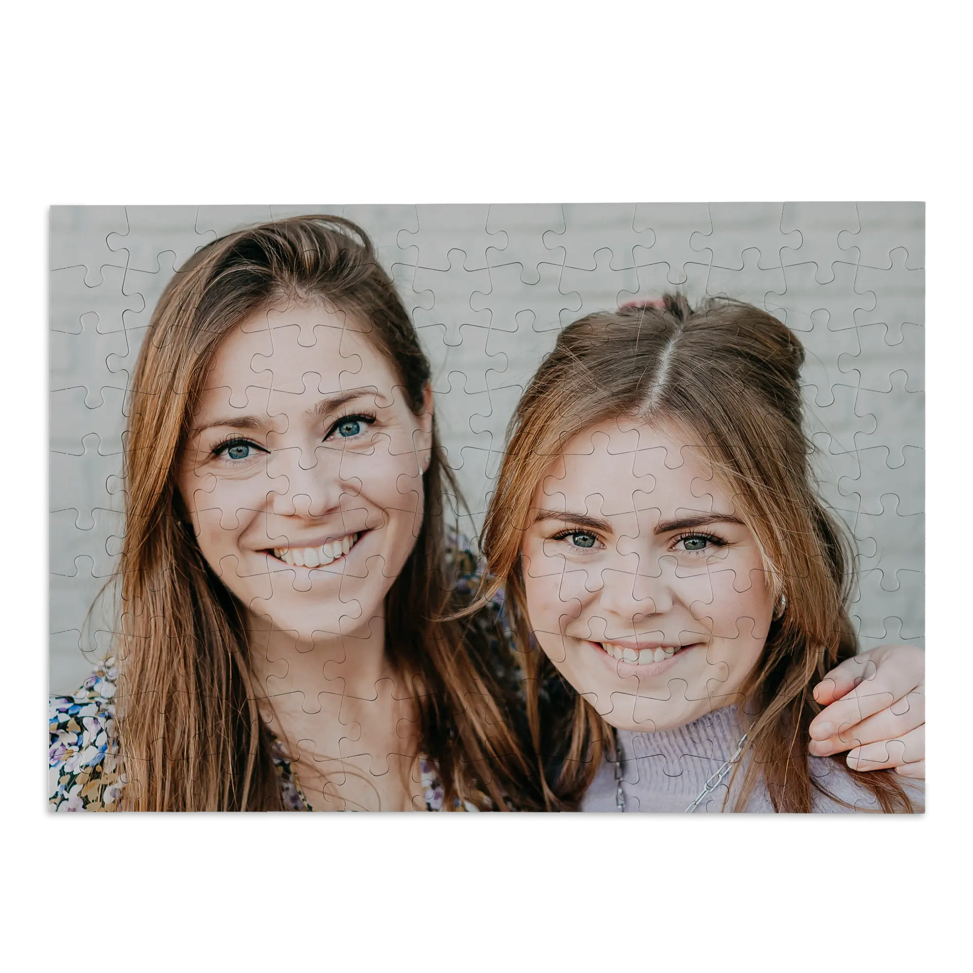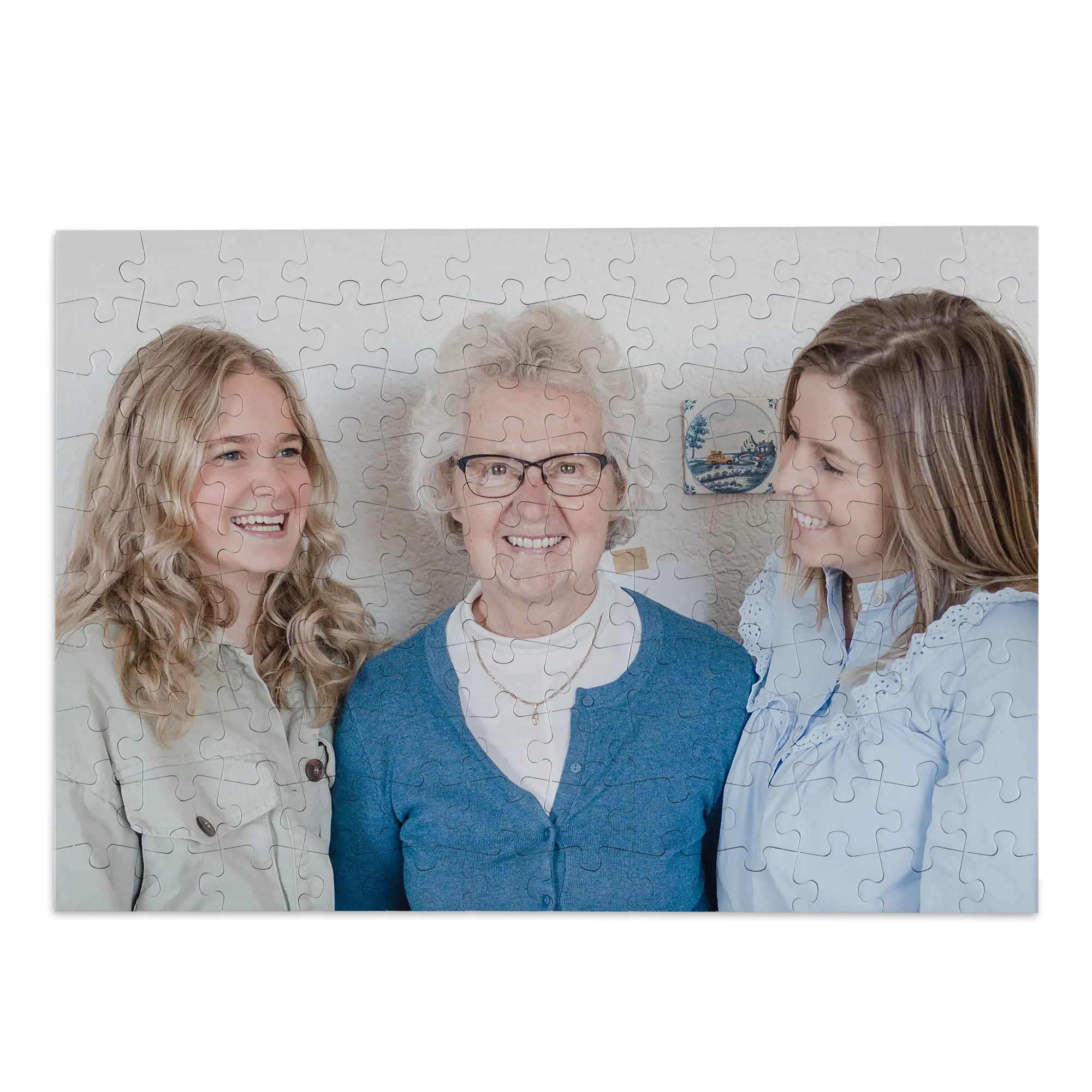 Puzzle personnalisé avec photo(s) et/ou texte de votre choix. Matériau robuste avec finition brillante. Plus d'informations sur le puzzle personnalisé : Nombre de pièces : 120 Matériau : carton robuste avec couche supérieure brillante Dimensions du puzzle : 28 x 19,5 x 0,2 cm Dimensions de la boîte : 24 x 17,5 x 2,5 cm Personnalisation : avec photo et/ou texte Impression : haute qualité et en couleur