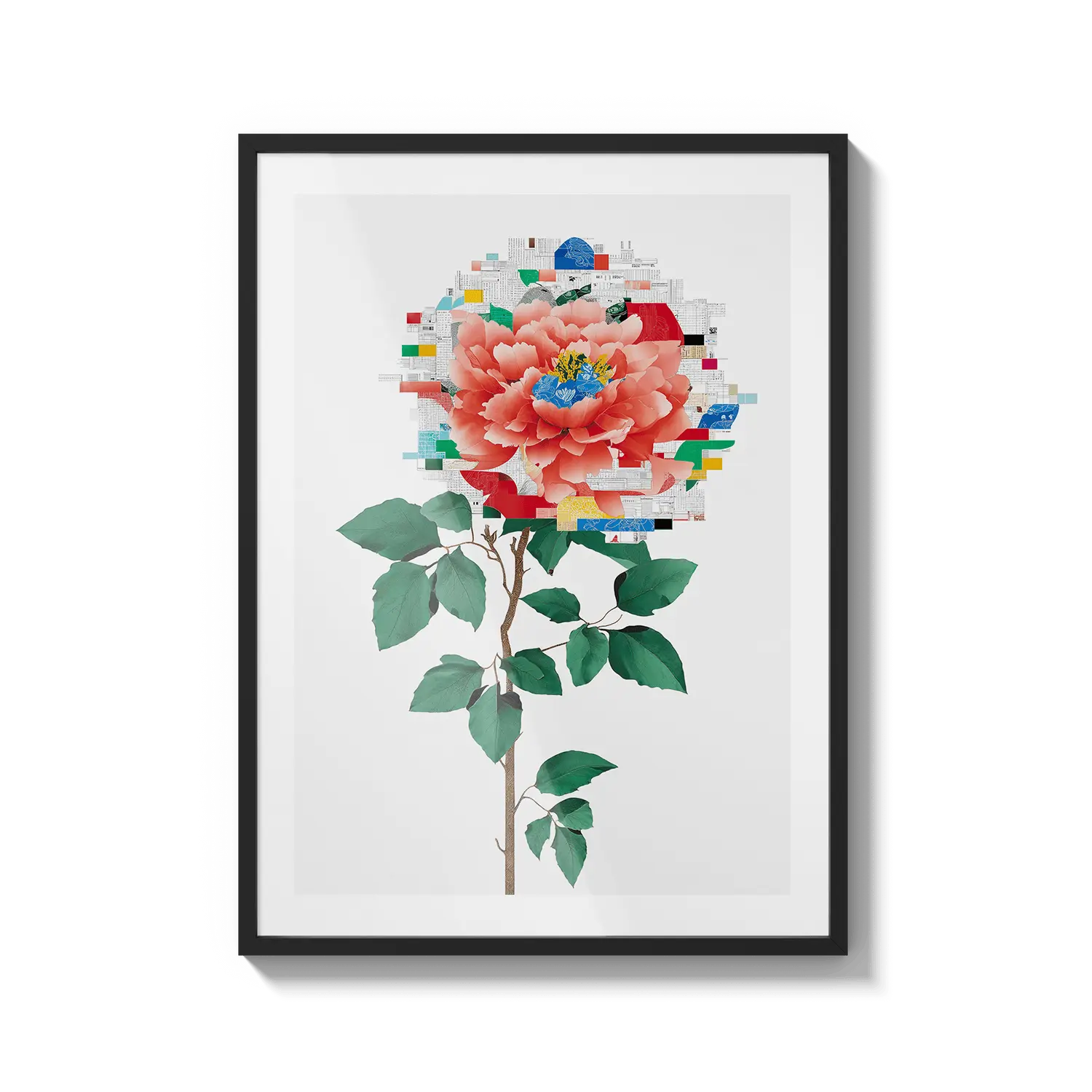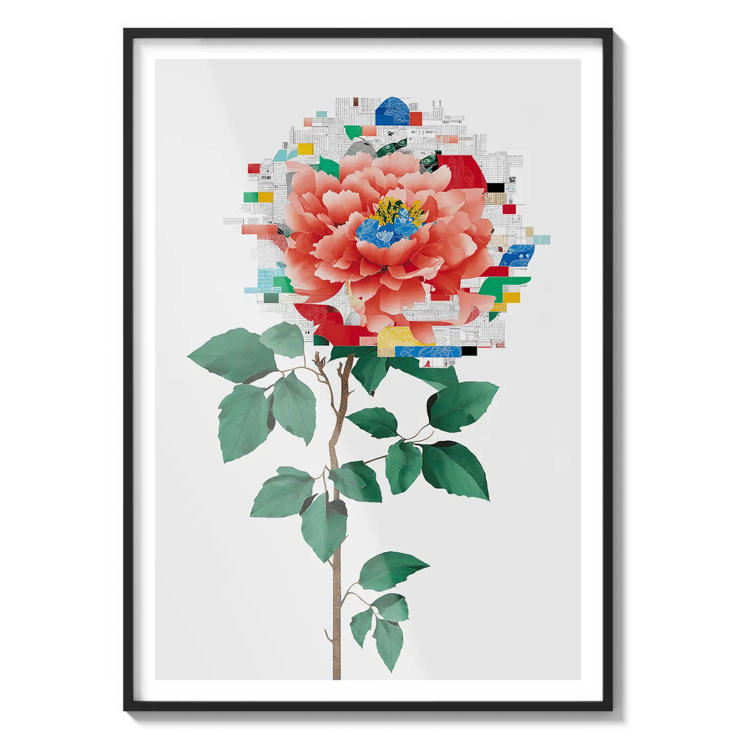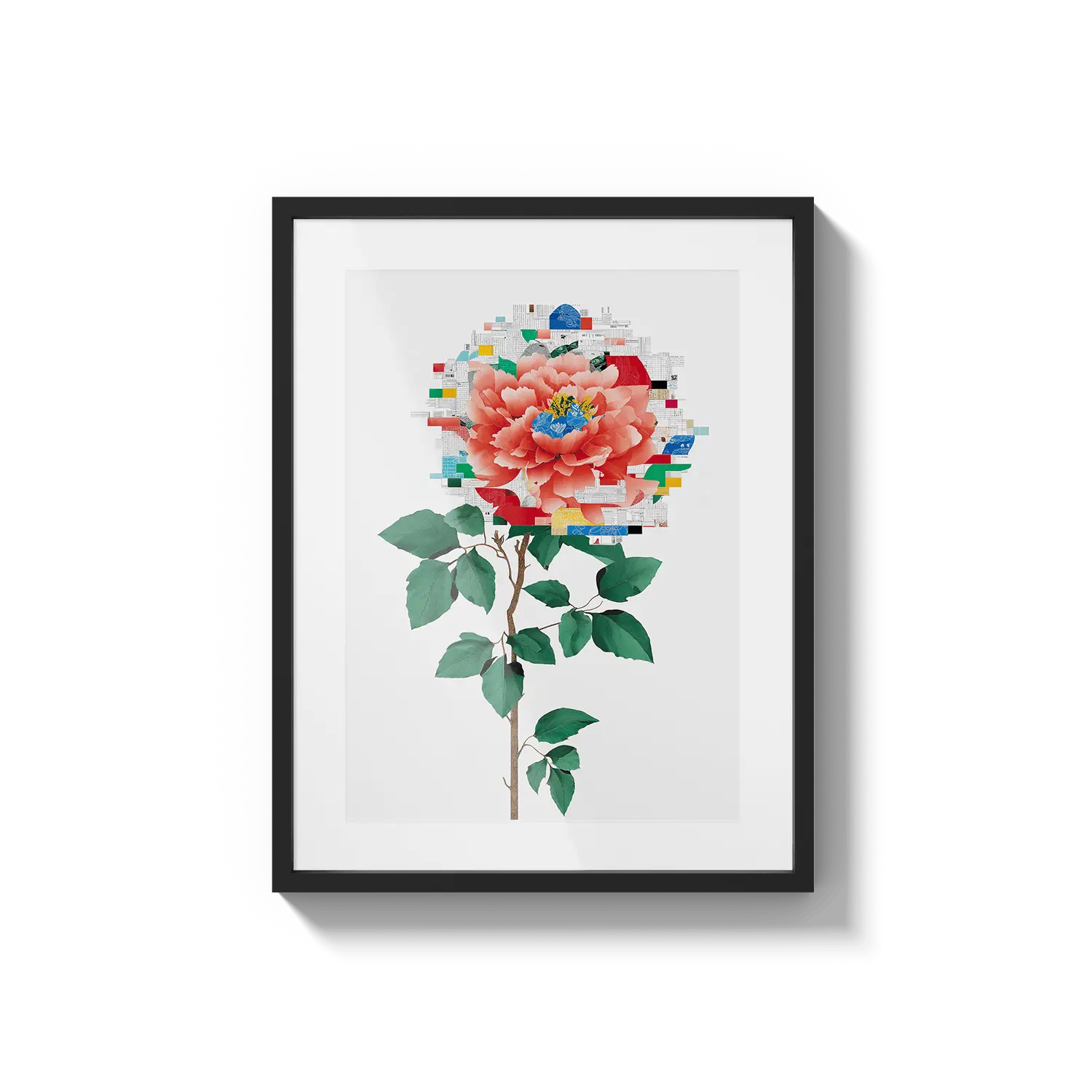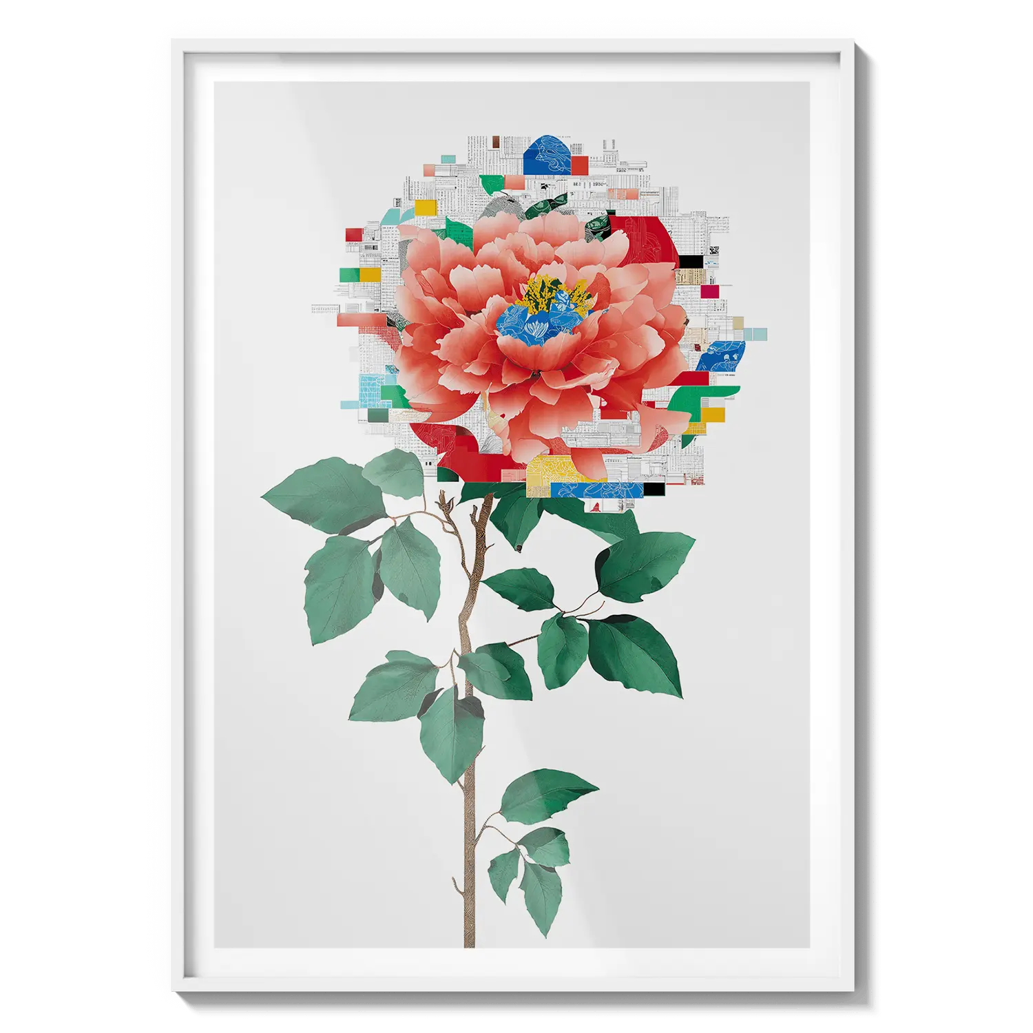 Un collage floral vif mêlant formes et couleurs dans une composition moderne et vivante. Un geste joyeux pour quelqu'un qui aime l'art audacieux.