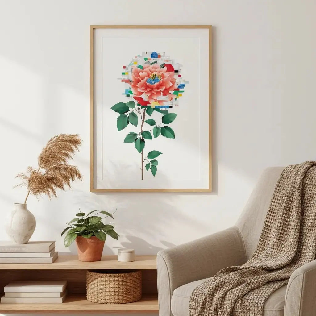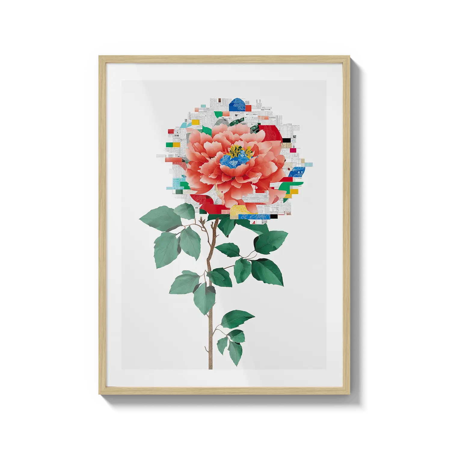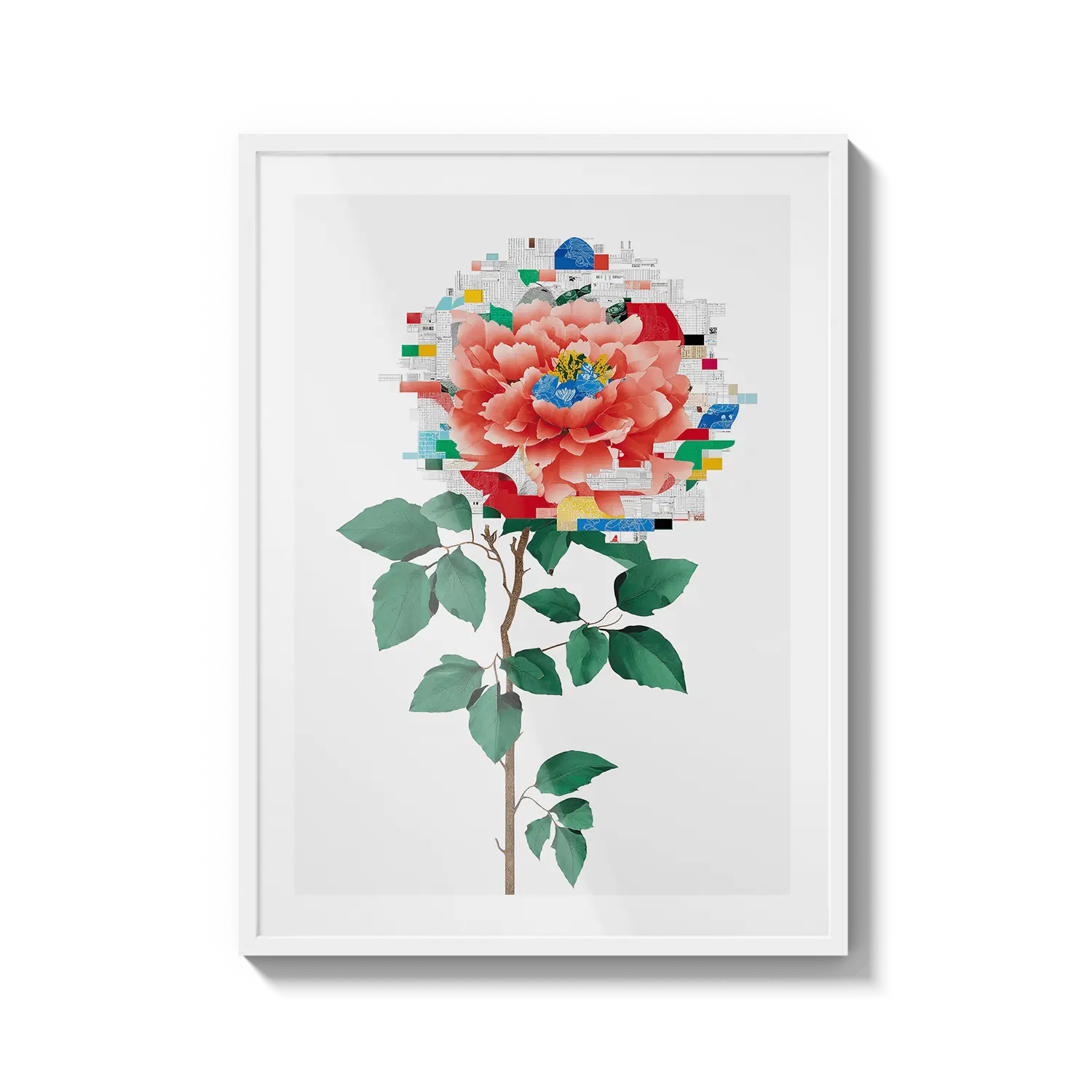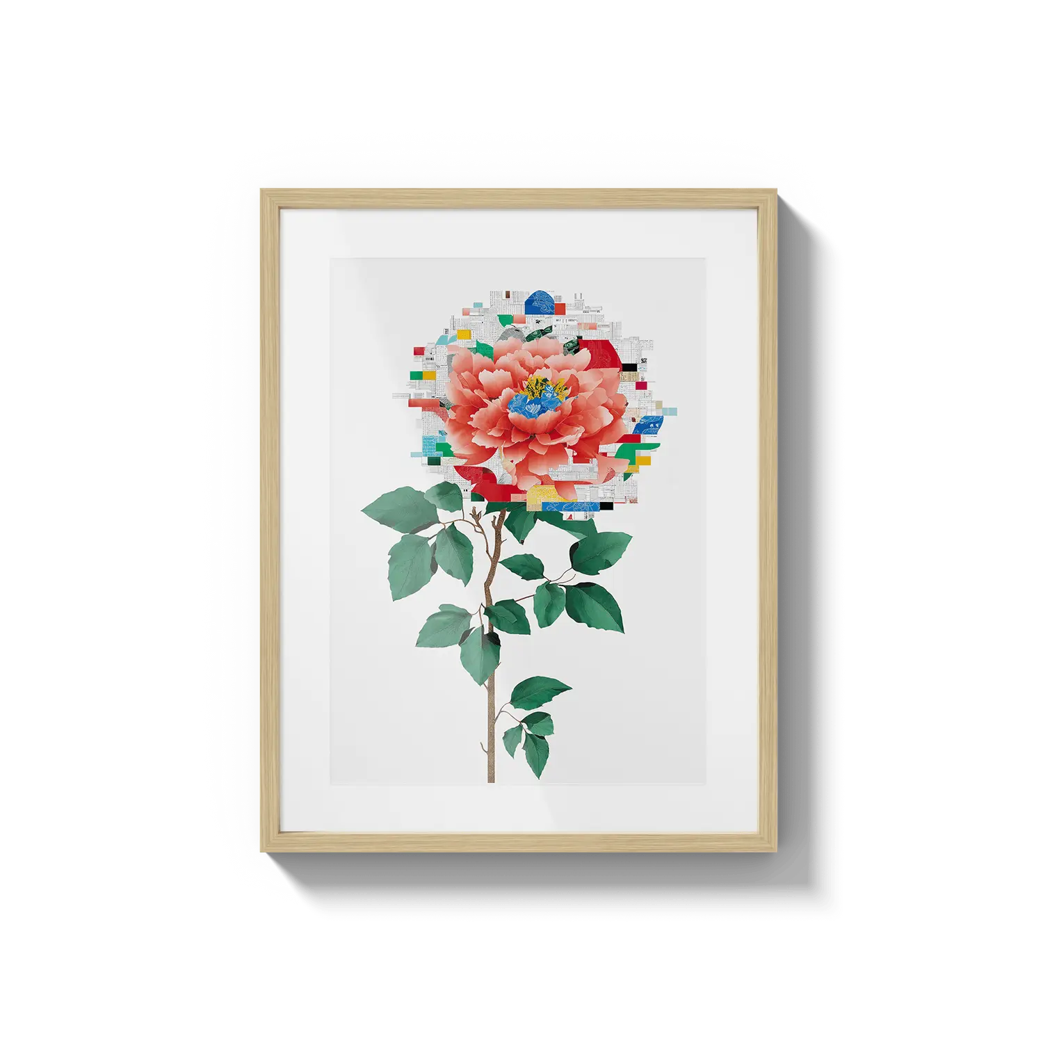Un collage floral vif mêlant formes et couleurs dans une composition moderne et vivante. Un geste joyeux pour quelqu'un qui aime l'art audacieux.