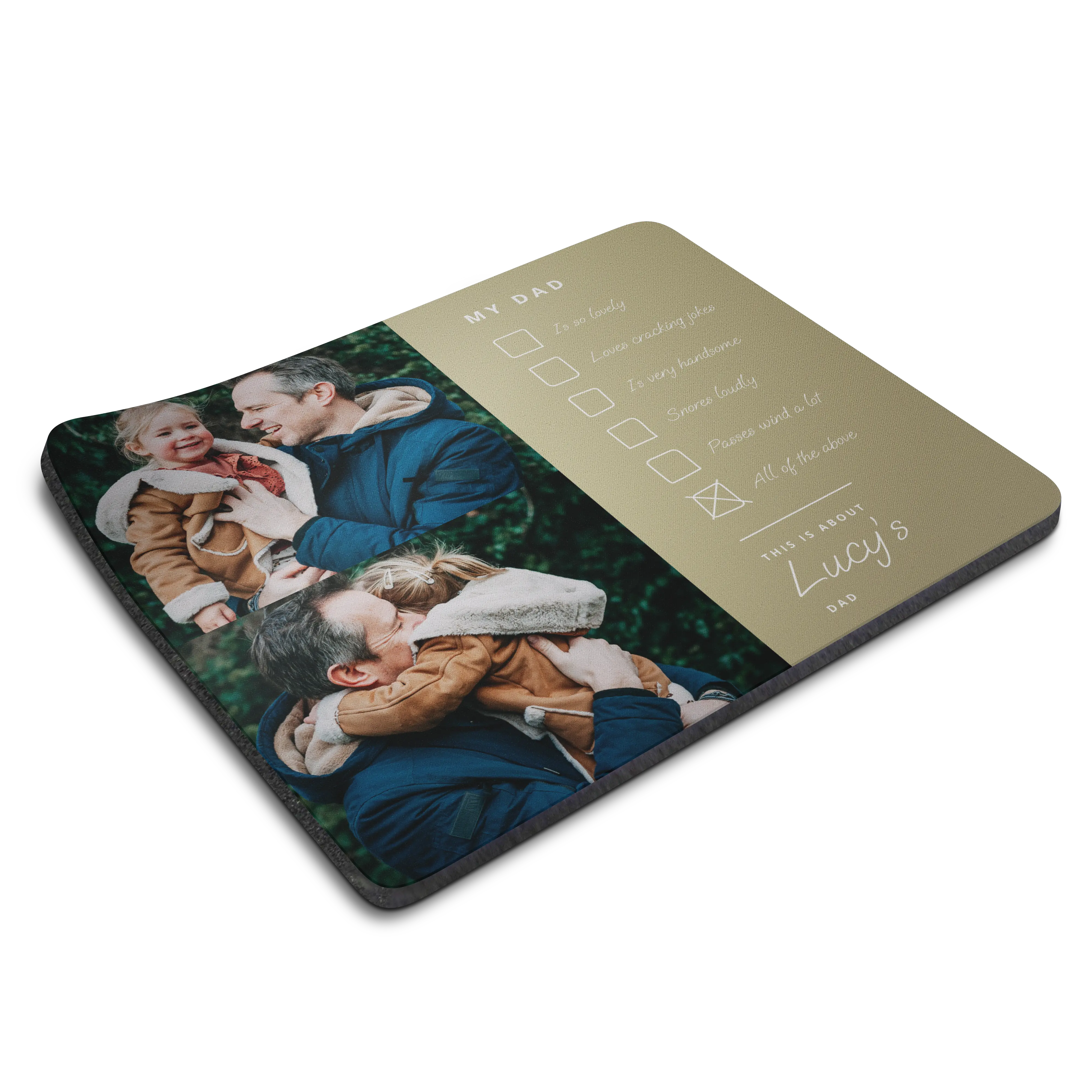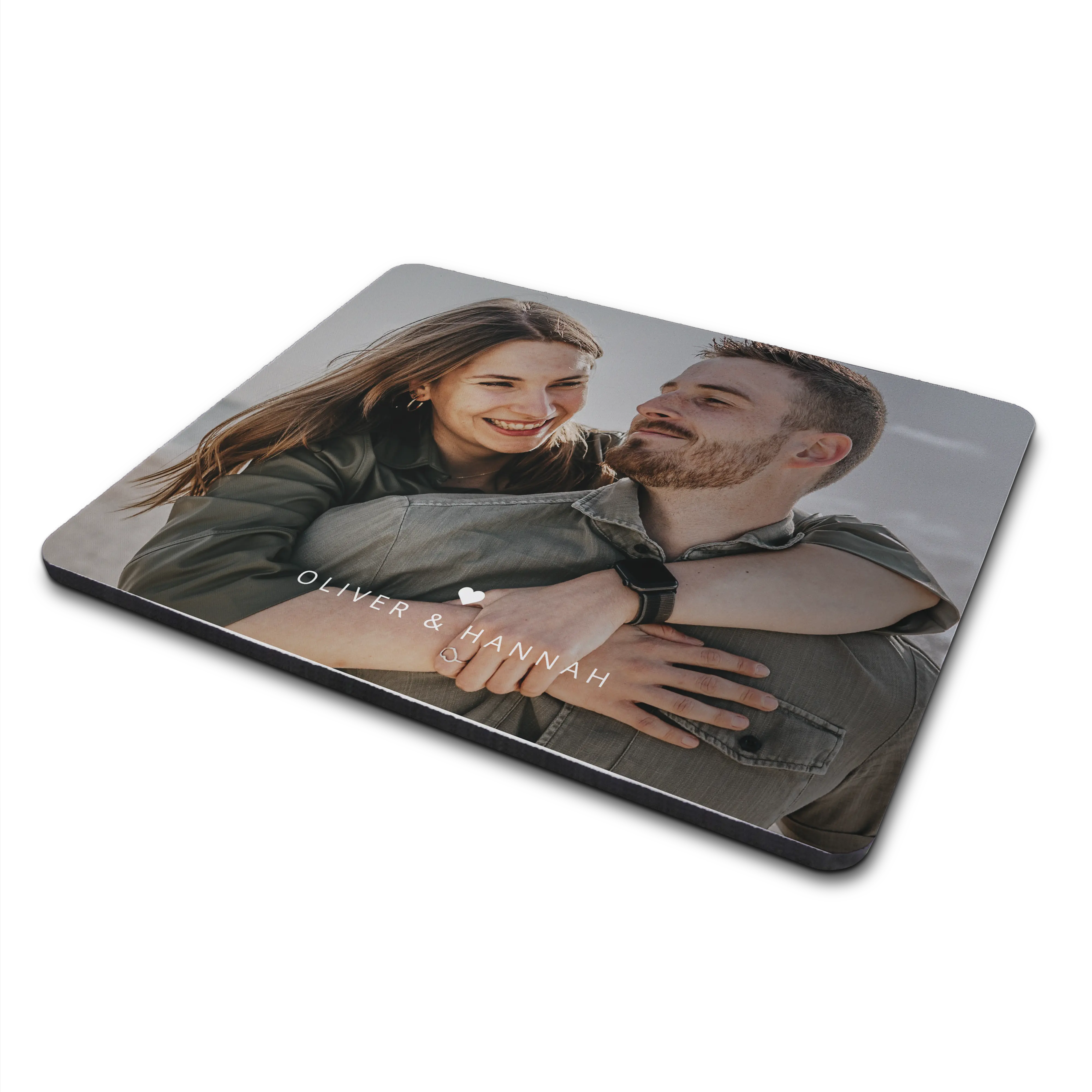 Forme : rectangleDimensions : 23 x 19 x 0,5 cmPersonnalisation : avec photo et/ou texteImpression : image parfaite et en couleurMatériau : le tapis de souris est en caoutchouc noir et possède une couche blanche de polyester sur le dessusExtra : avec base antidérapante