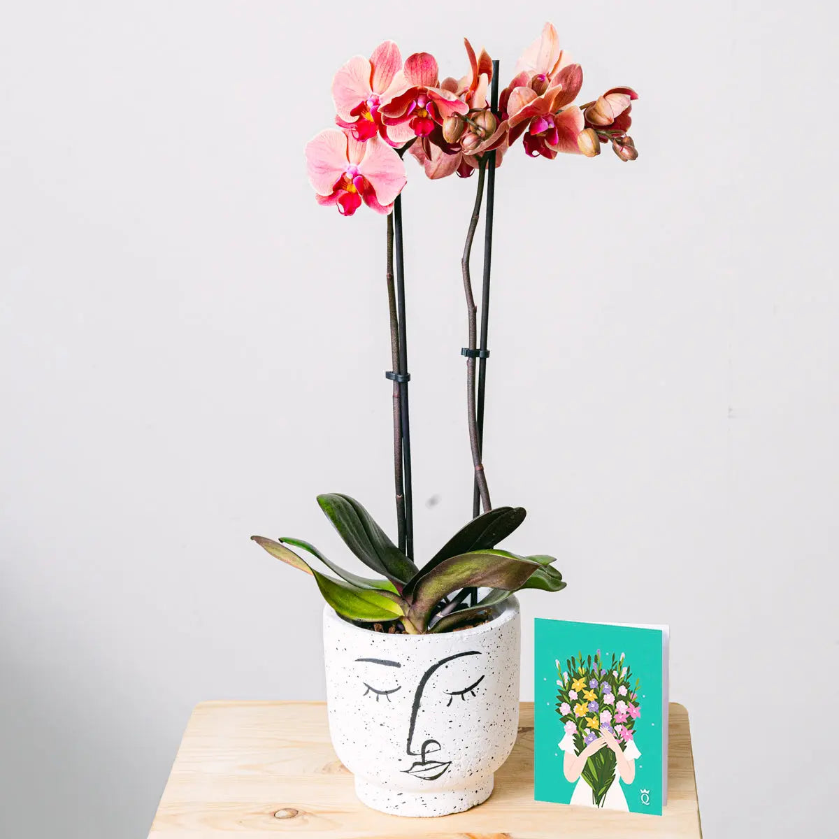 Orchidée Phalaenopsis, Pot décoratif, Carte message.