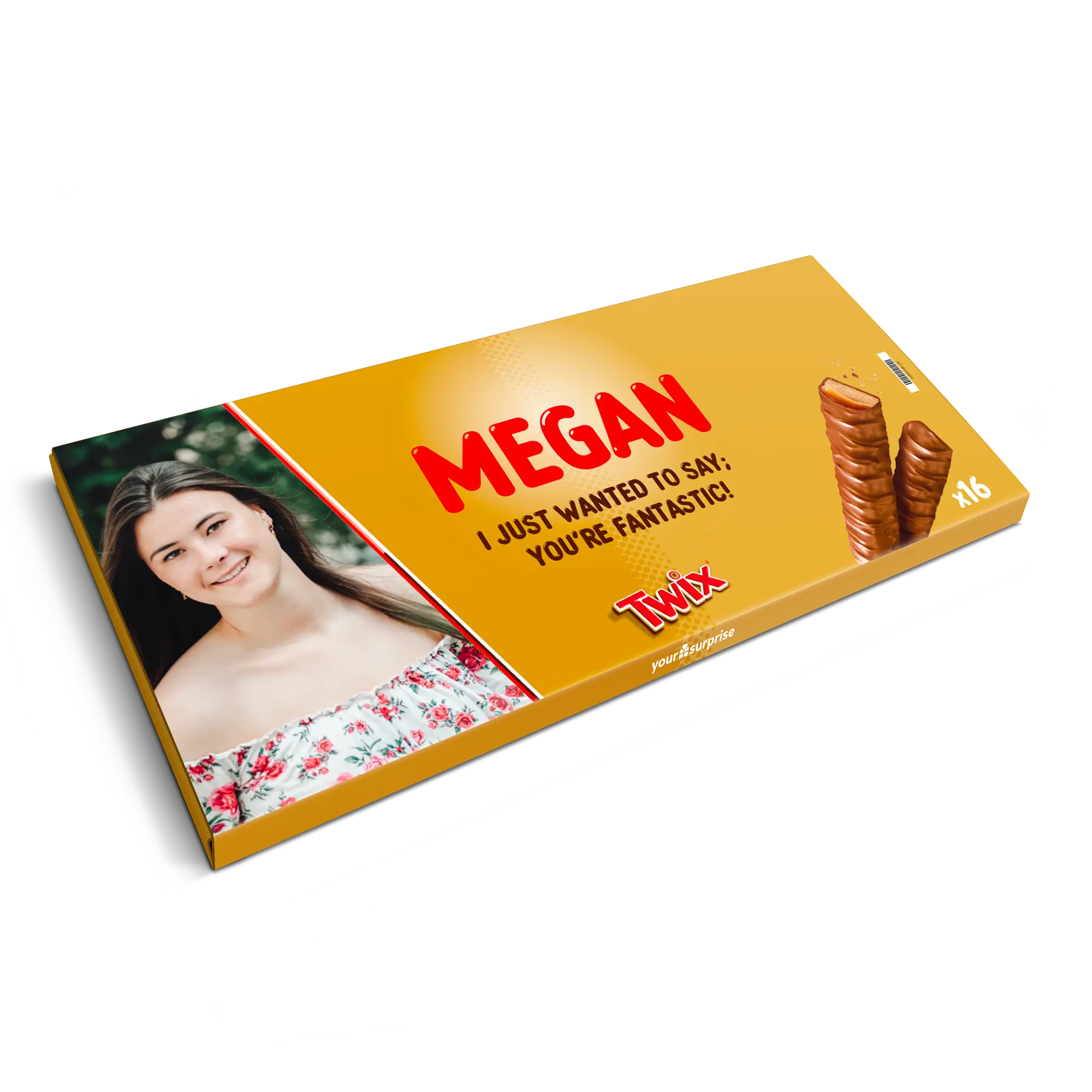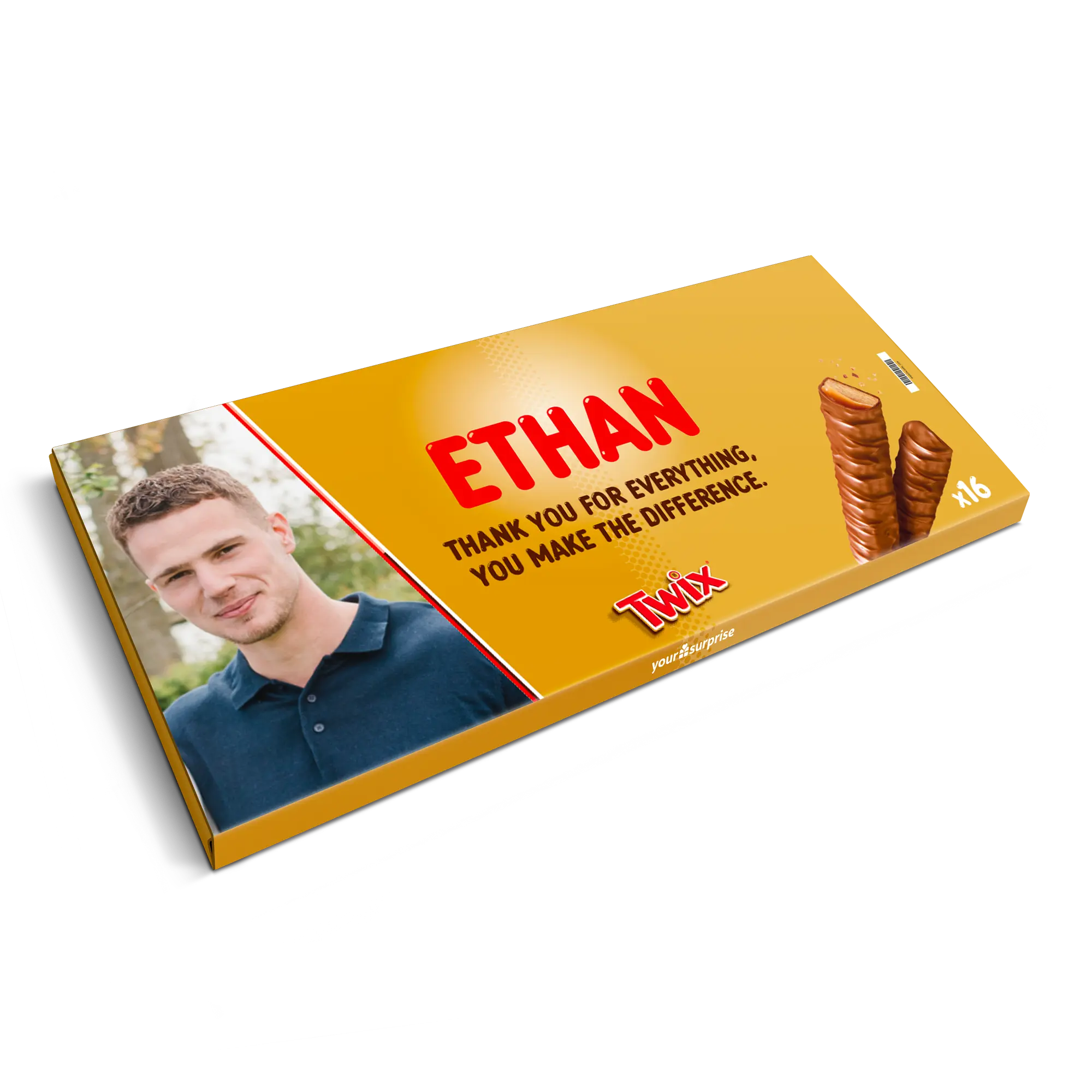 Surprenez un fanatique de chocolat avec un Twix géant personnalisé juste pour lui/elle. Super amusant et personnel pour chaque occasion