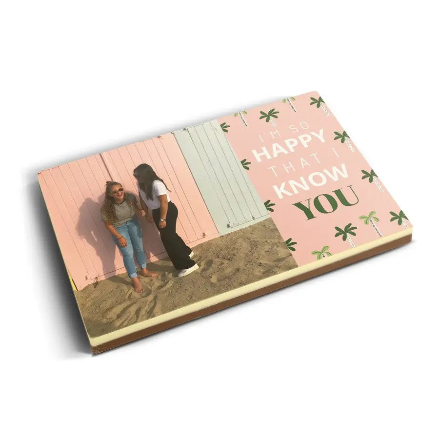 Votre plus belle photo sur chocolat ! 240 grammes de délicieux chocolat Callebaut imprimé avec photo. Le cadeau chocolaté le plus amusant !