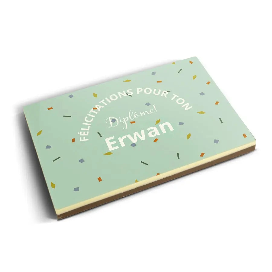 [fort]Compléments :[/fort] Chocolat premium délicieux, impression alimentaire en couleurs vives, message textuel personnalisable, fond de design élégant.