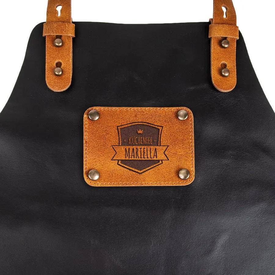 - Supplément : le cuir est un matériau naturel. Par conséquent, votre cadeau peut différer légèrement des photos présentées sur le site web. Le tablier possède deux poches sur le devant. Il peut être nettoyé avec un chiffon humide.