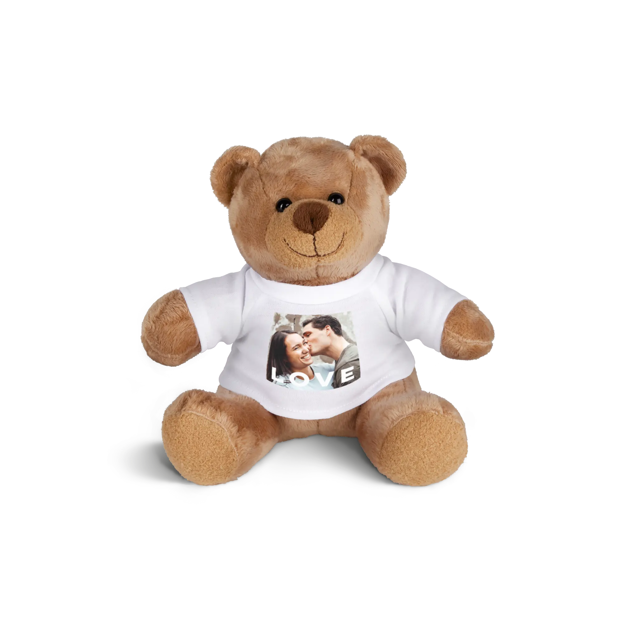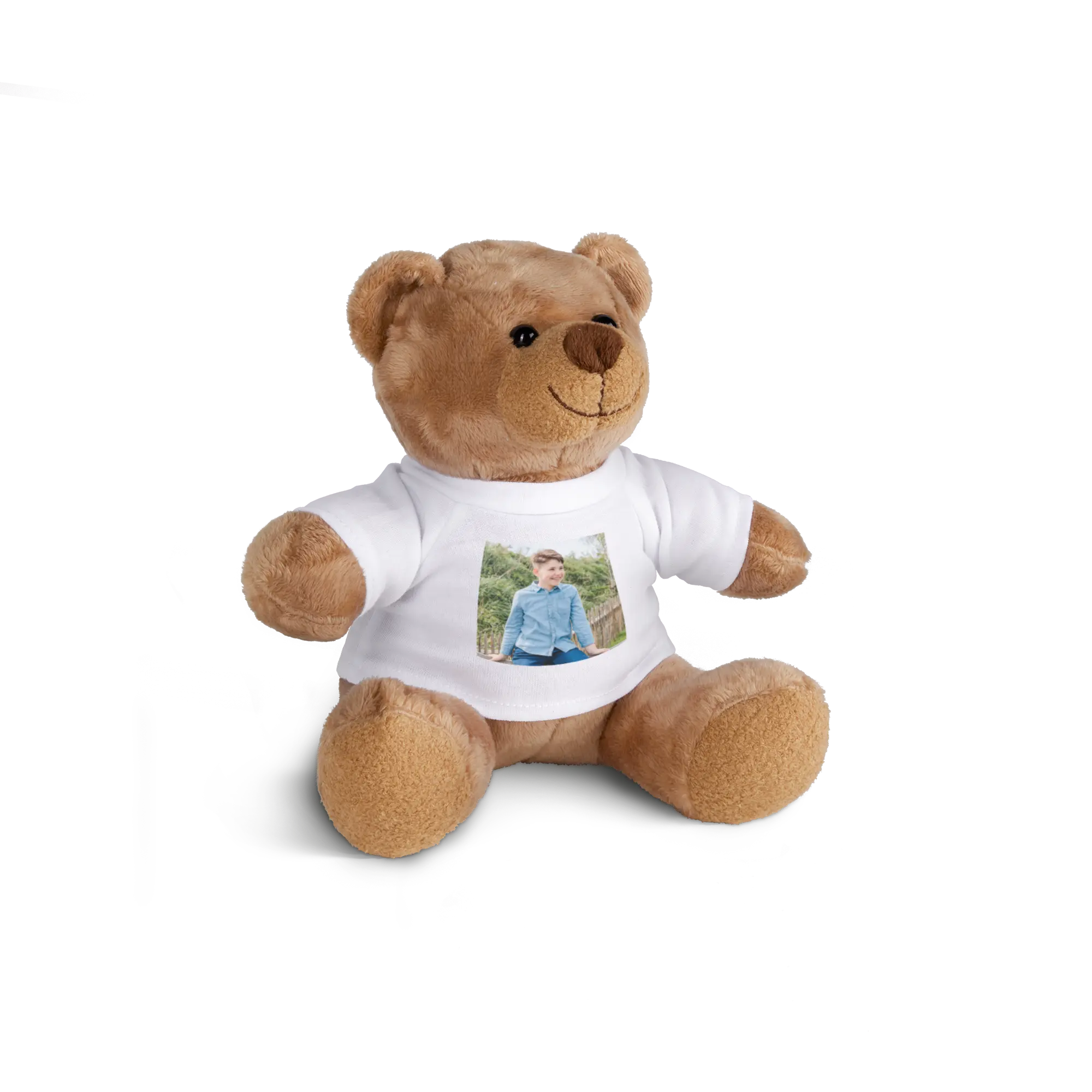 Benjamin Bear est un ours en peluche câlin portant un t-shirt personnalisé avec votre propre photo et texte !