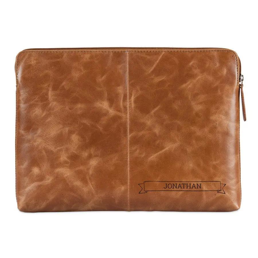 Protégez votre ordinateur portable avec une housse en cuir de luxe. Unique et personnalisée avec votre nom ou un texte gravé. Un cuir de la plus haute qualité !