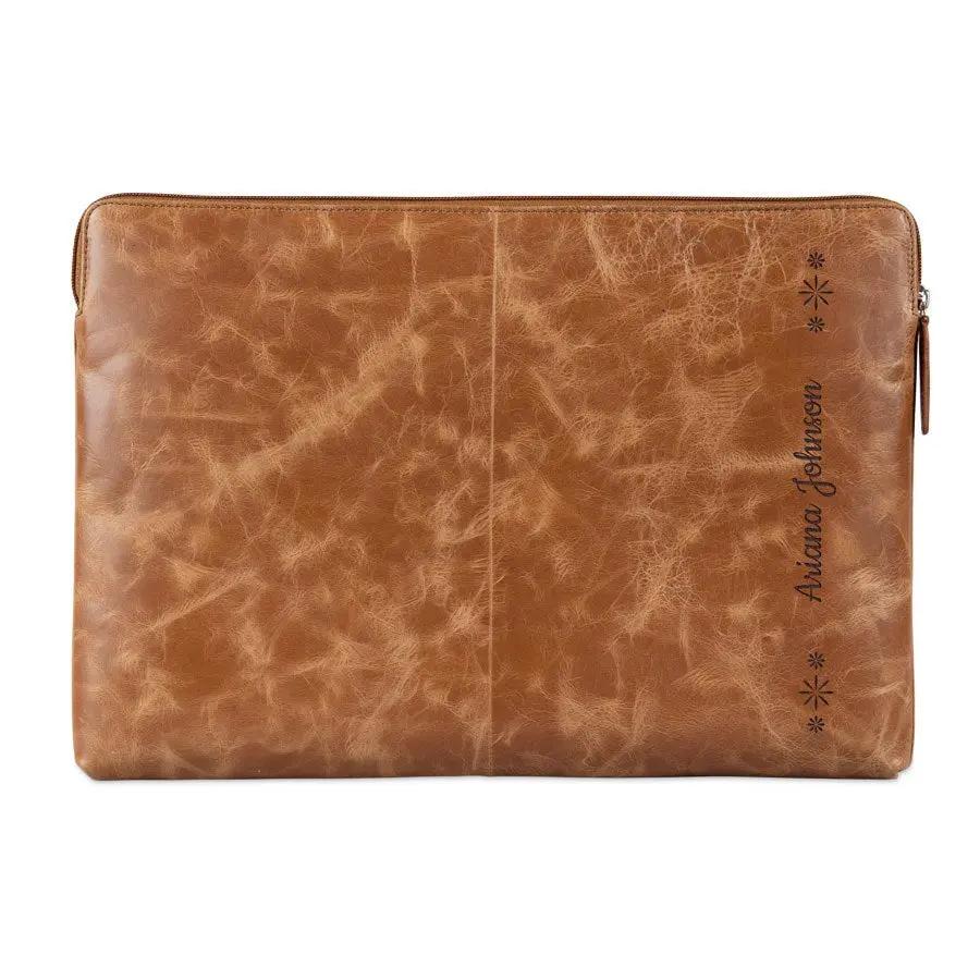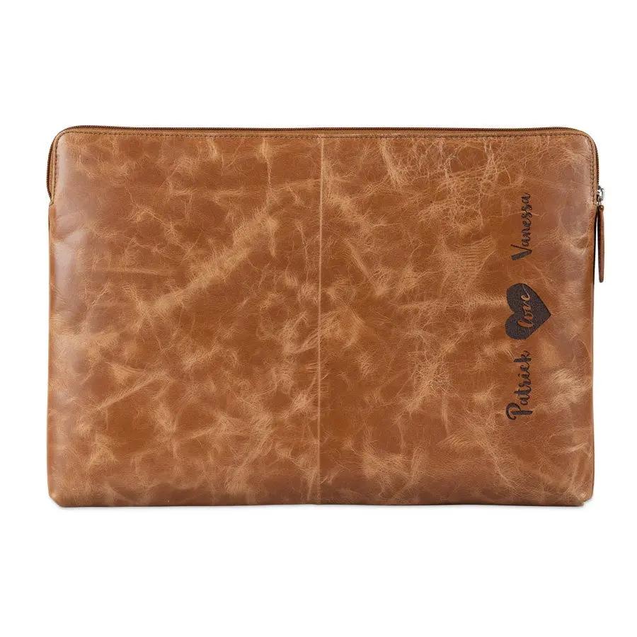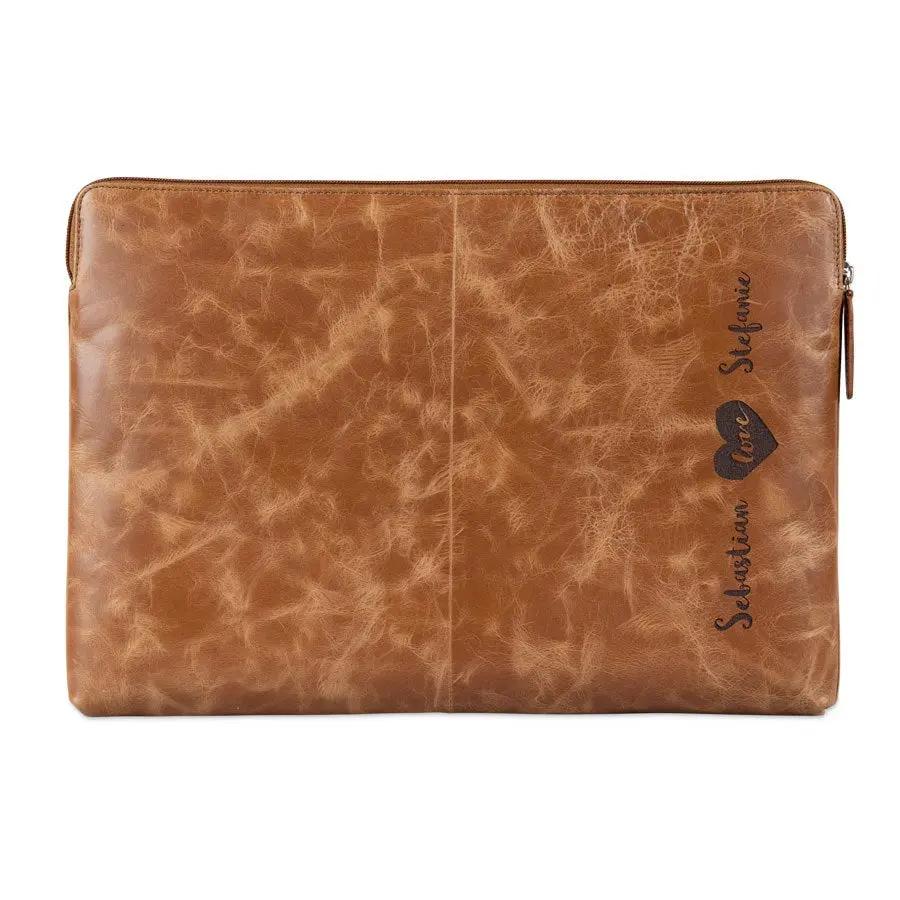 Protégez votre ordinateur portable avec une housse en cuir de luxe. Unique et personnalisée avec votre nom ou un texte gravé. Un cuir de la plus haute qualité !